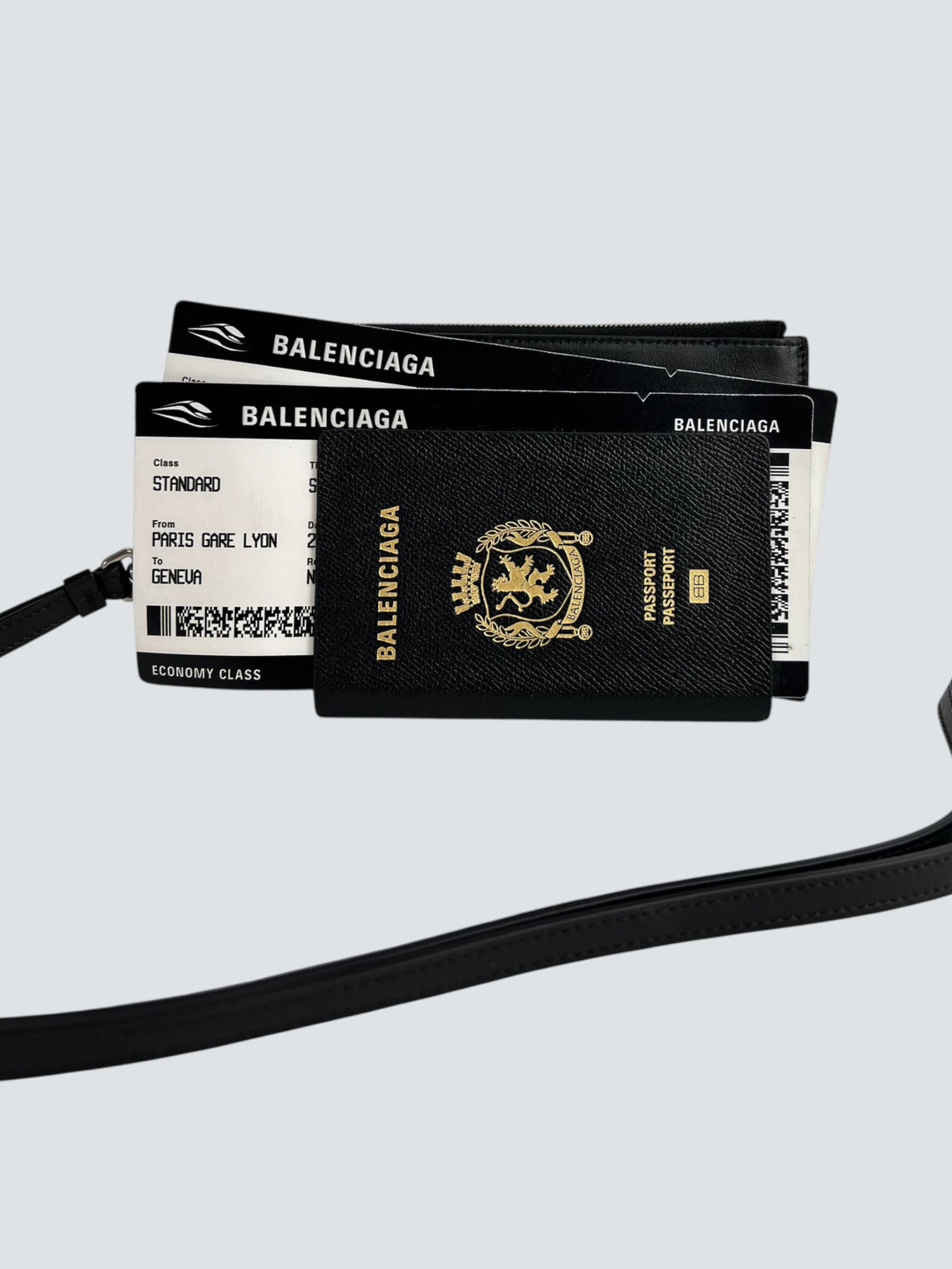 Balenciaga Black Leather Passport / Phone Holder