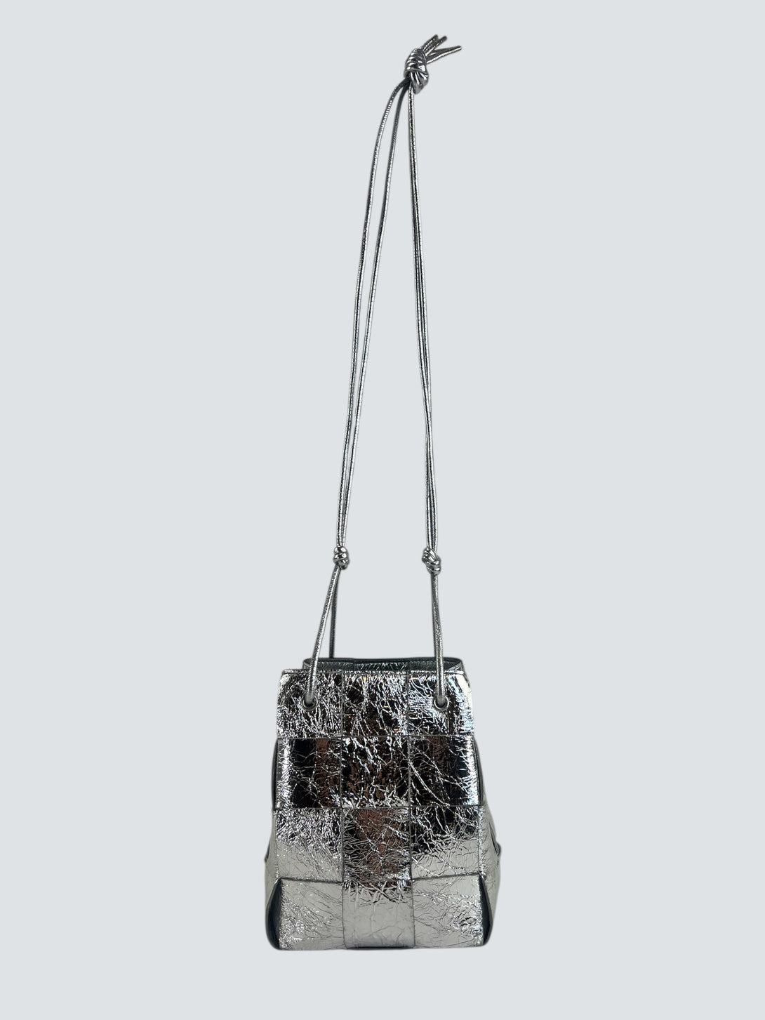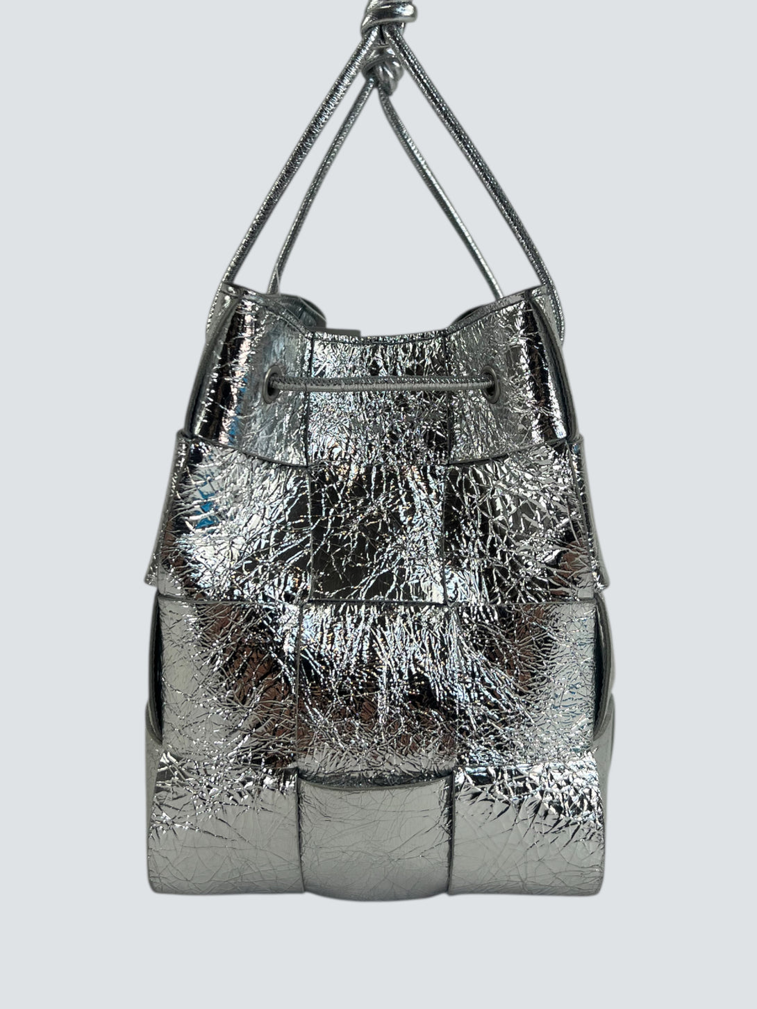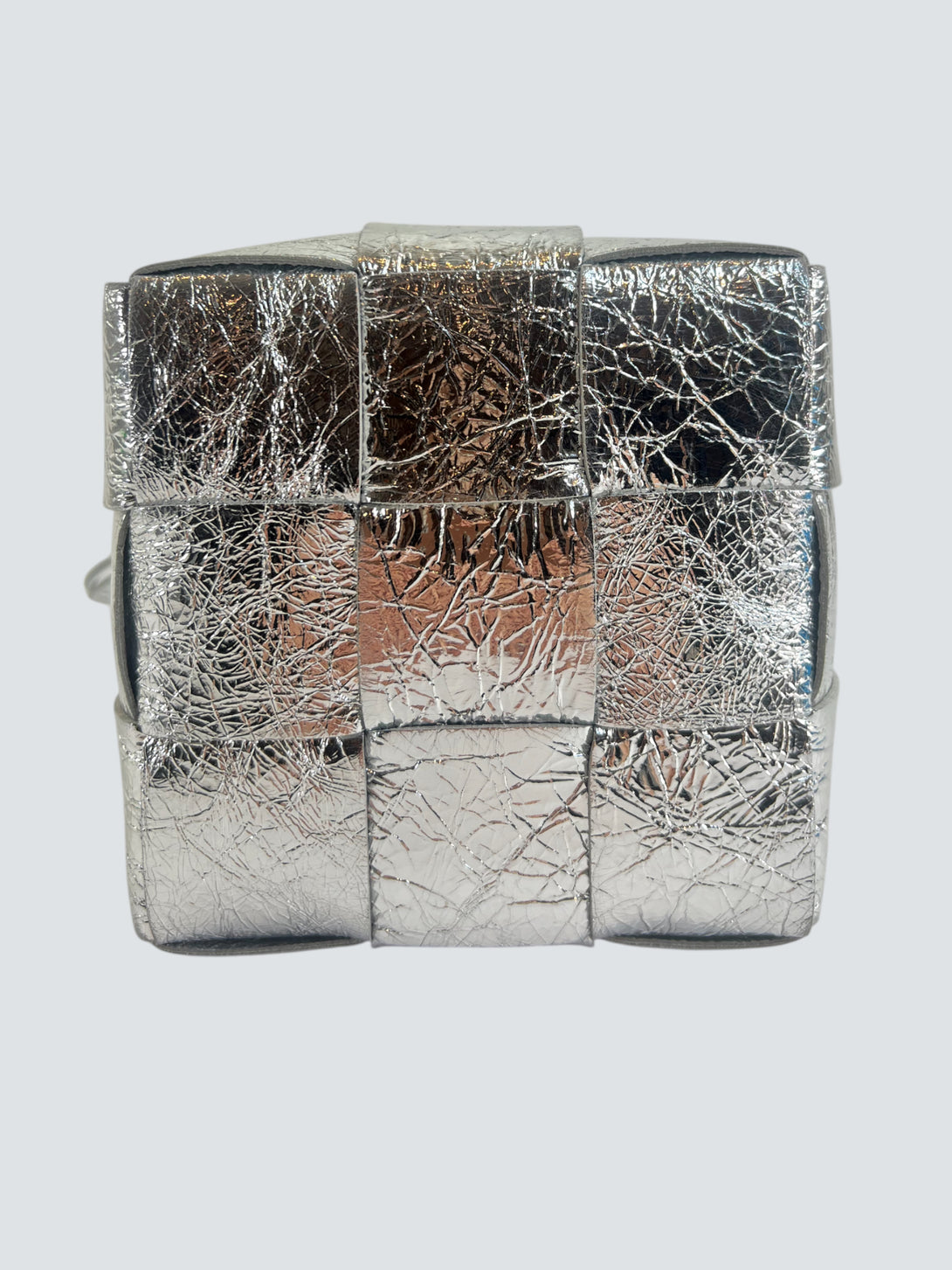 Bottega Veneta Silver Leather Cassette Mini Bucket Bag