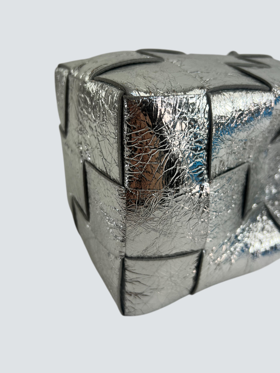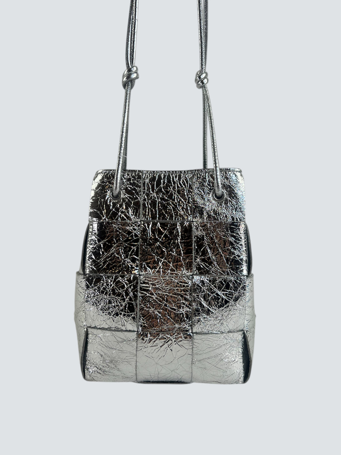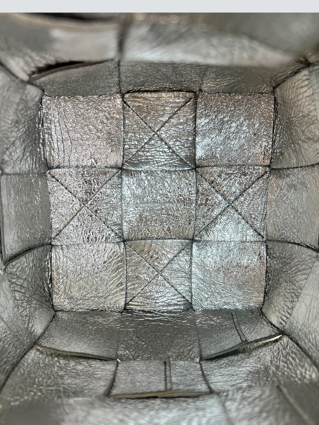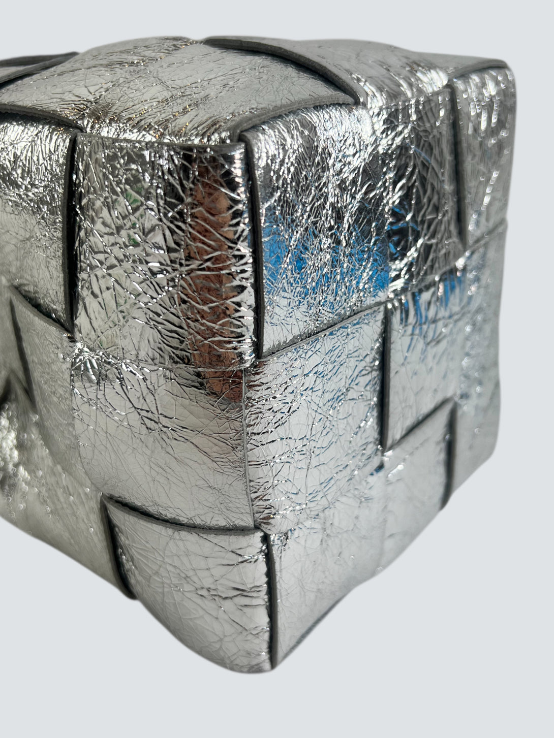 Bottega Veneta Silver Leather Cassette Mini Bucket Bag