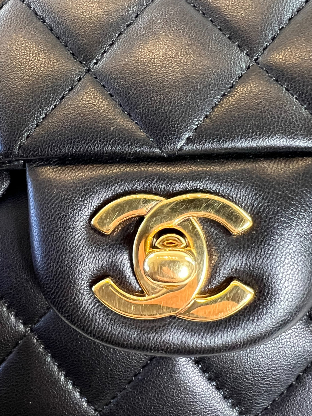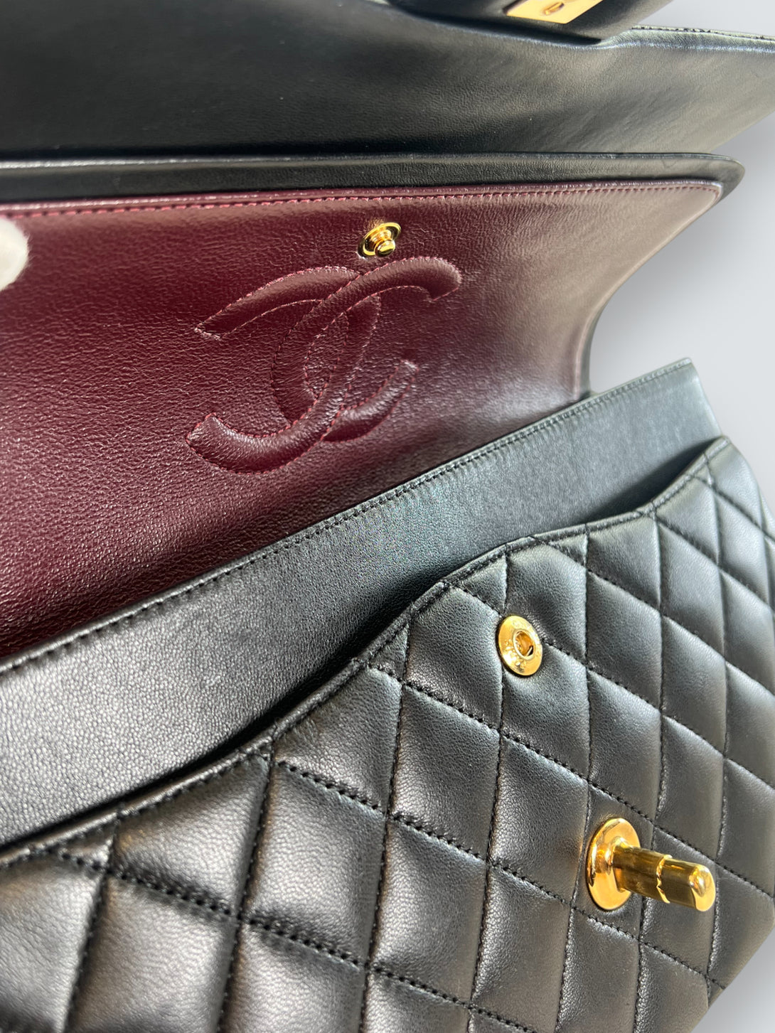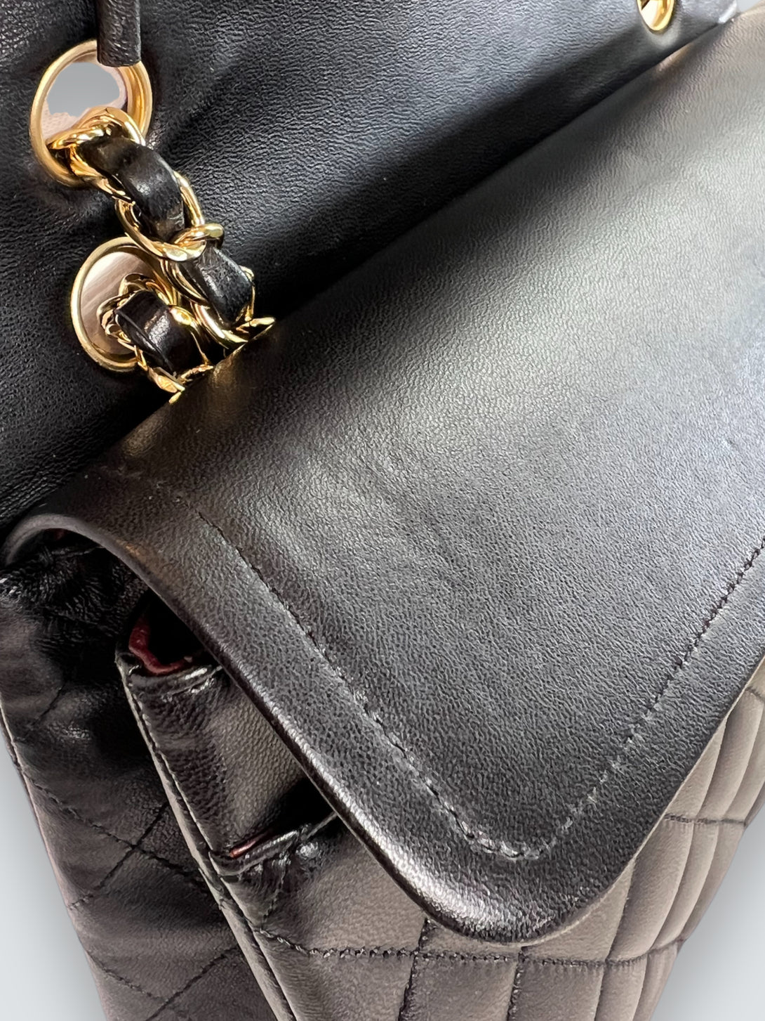 Chanel Black Lambskin Leather Medium Double Flap