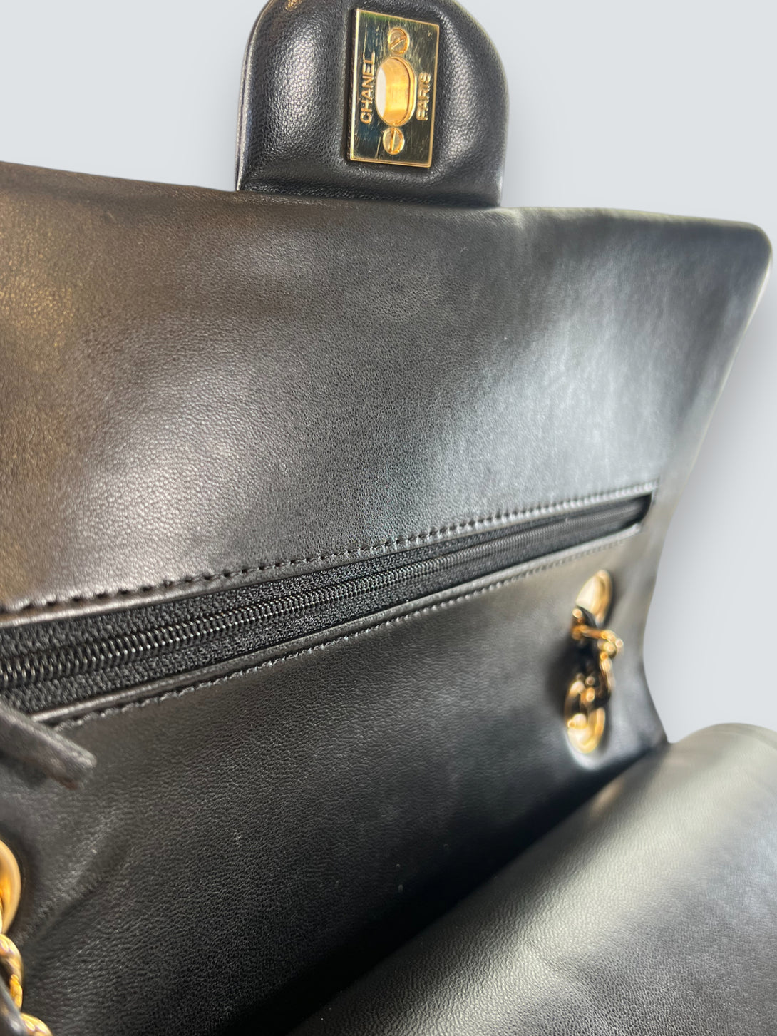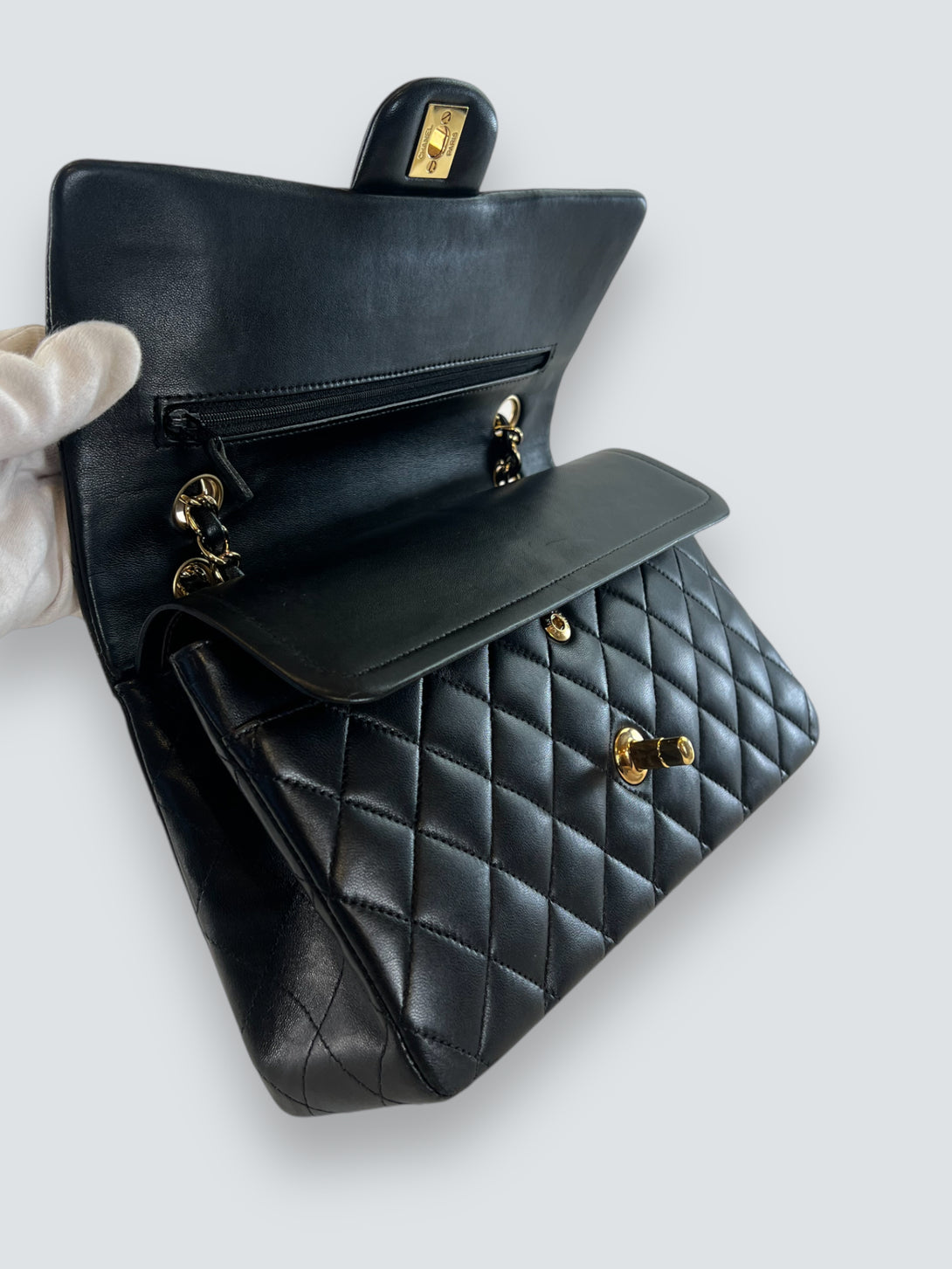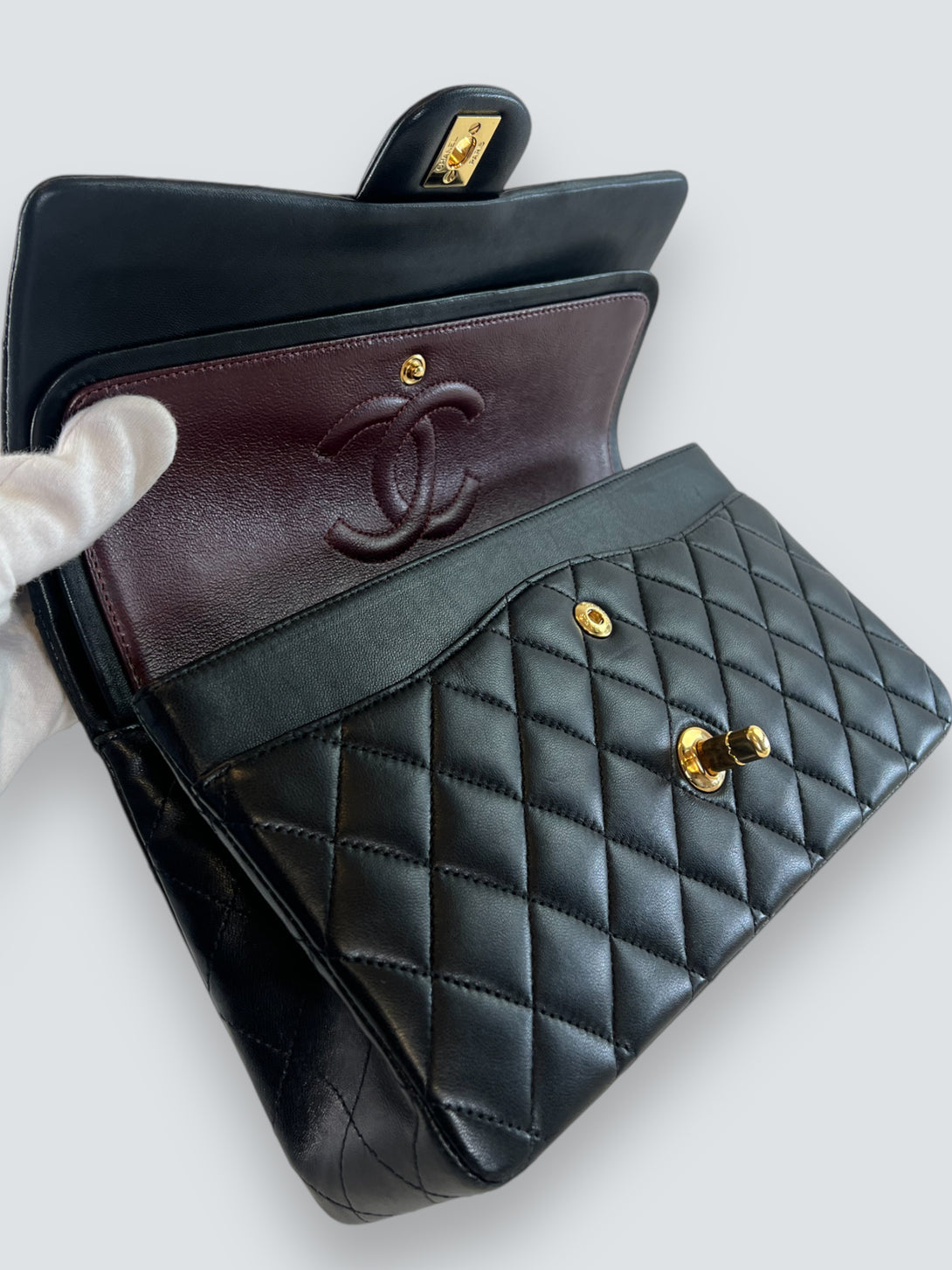 Chanel Black Lambskin Leather Medium Double Flap