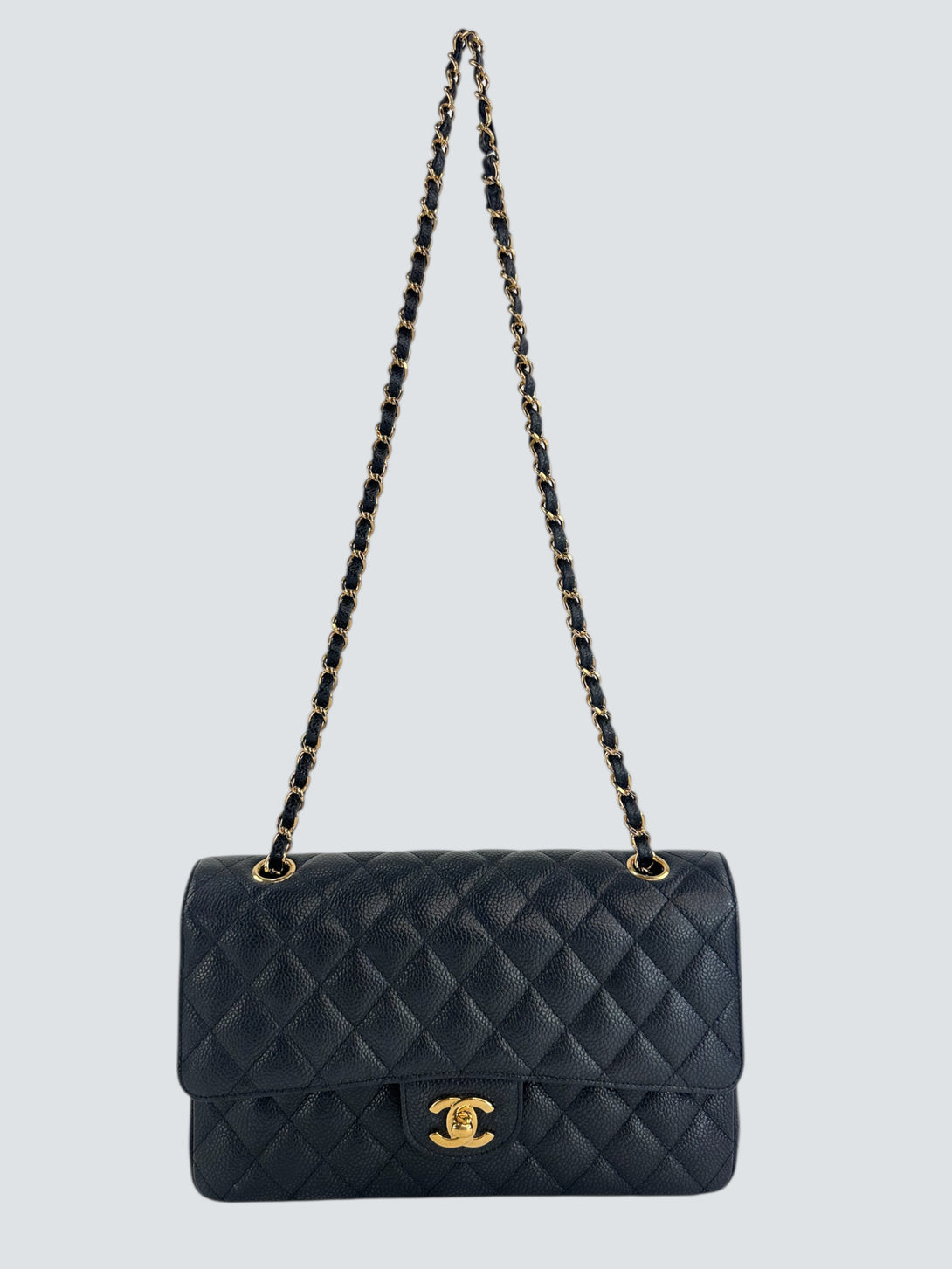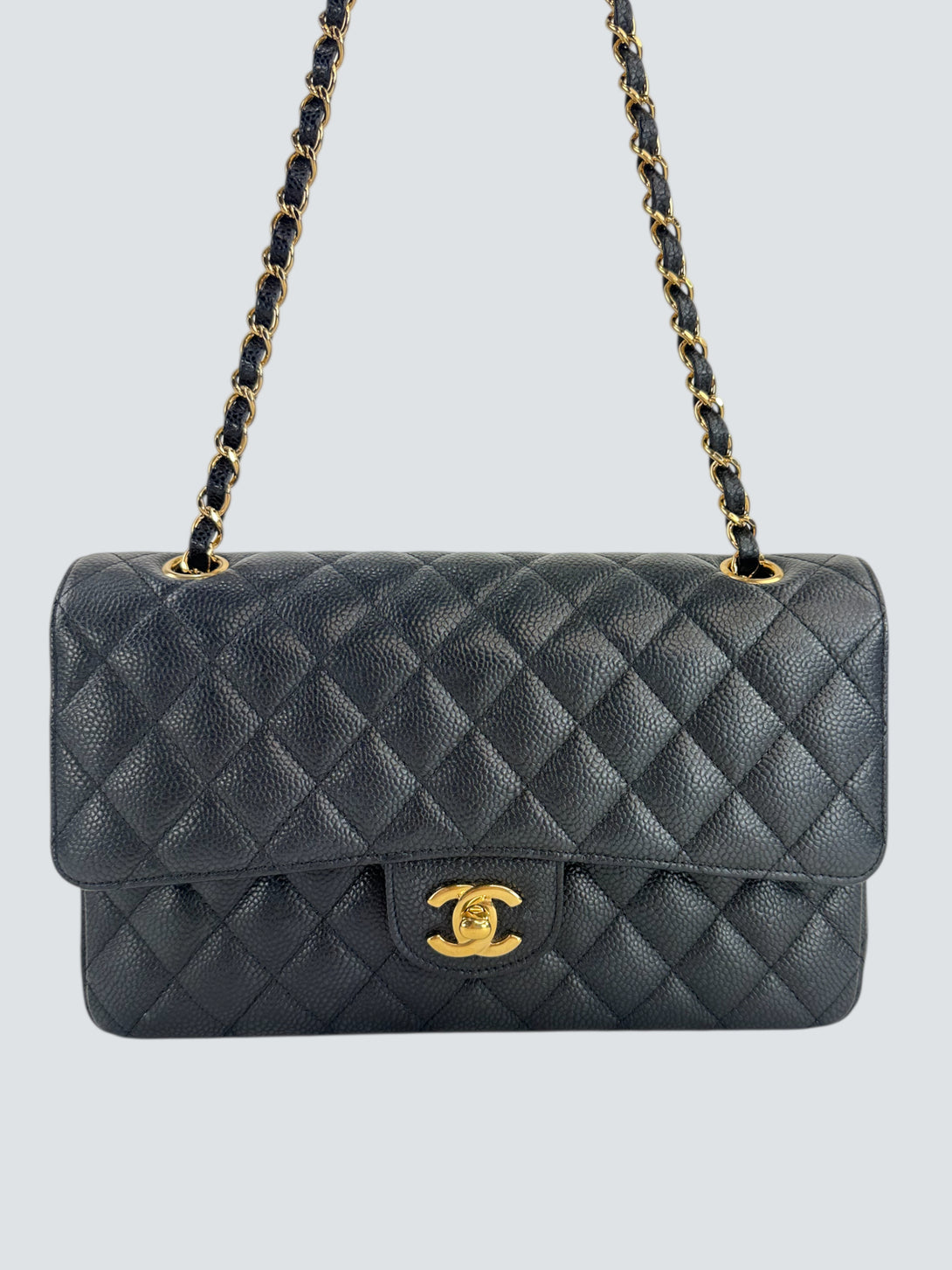Chanel Black Caviar Leather Medium Double Flap with Gold Hardware