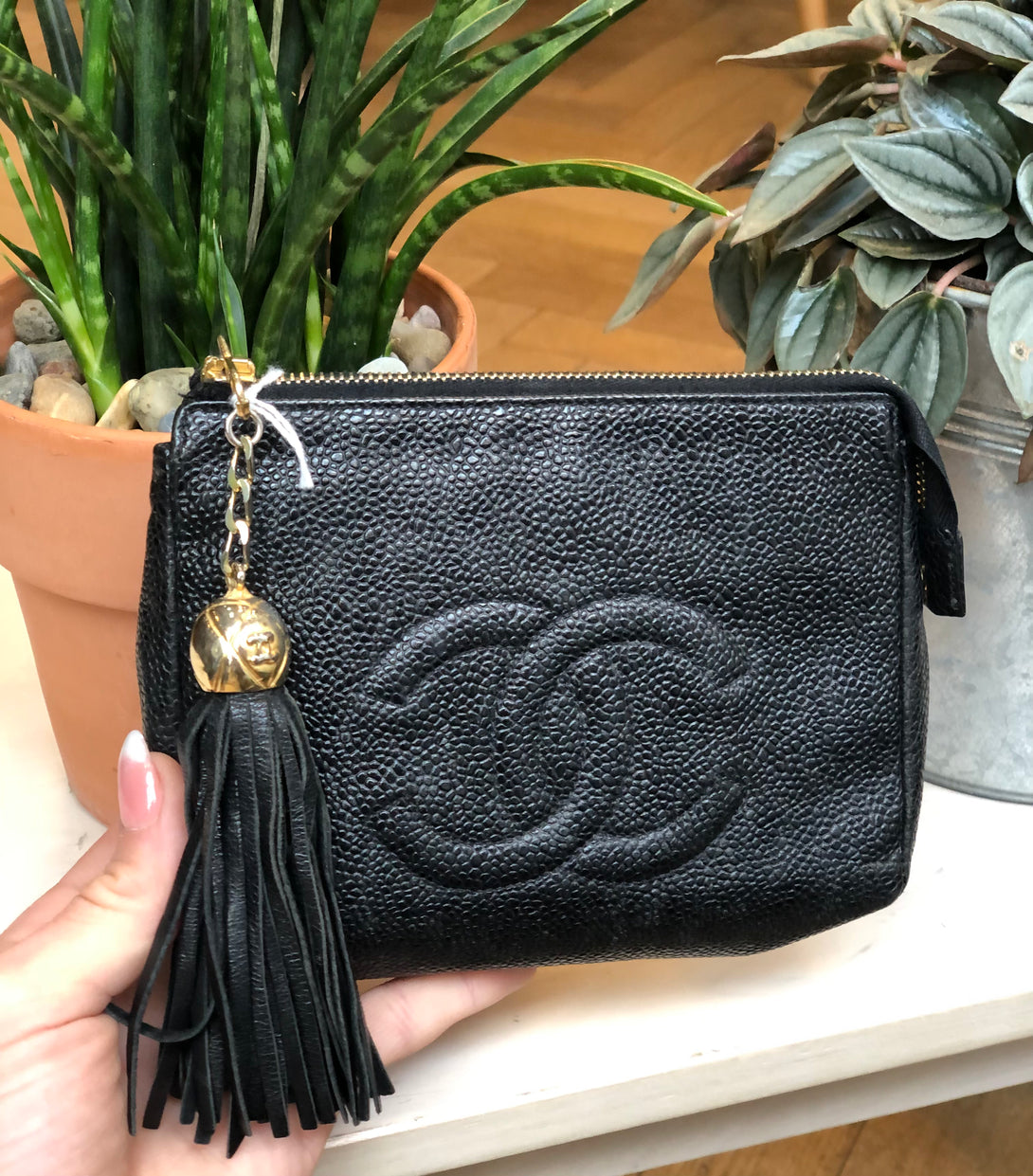 Chanel Black Caviar Leather Pouch with Tassel Detail
