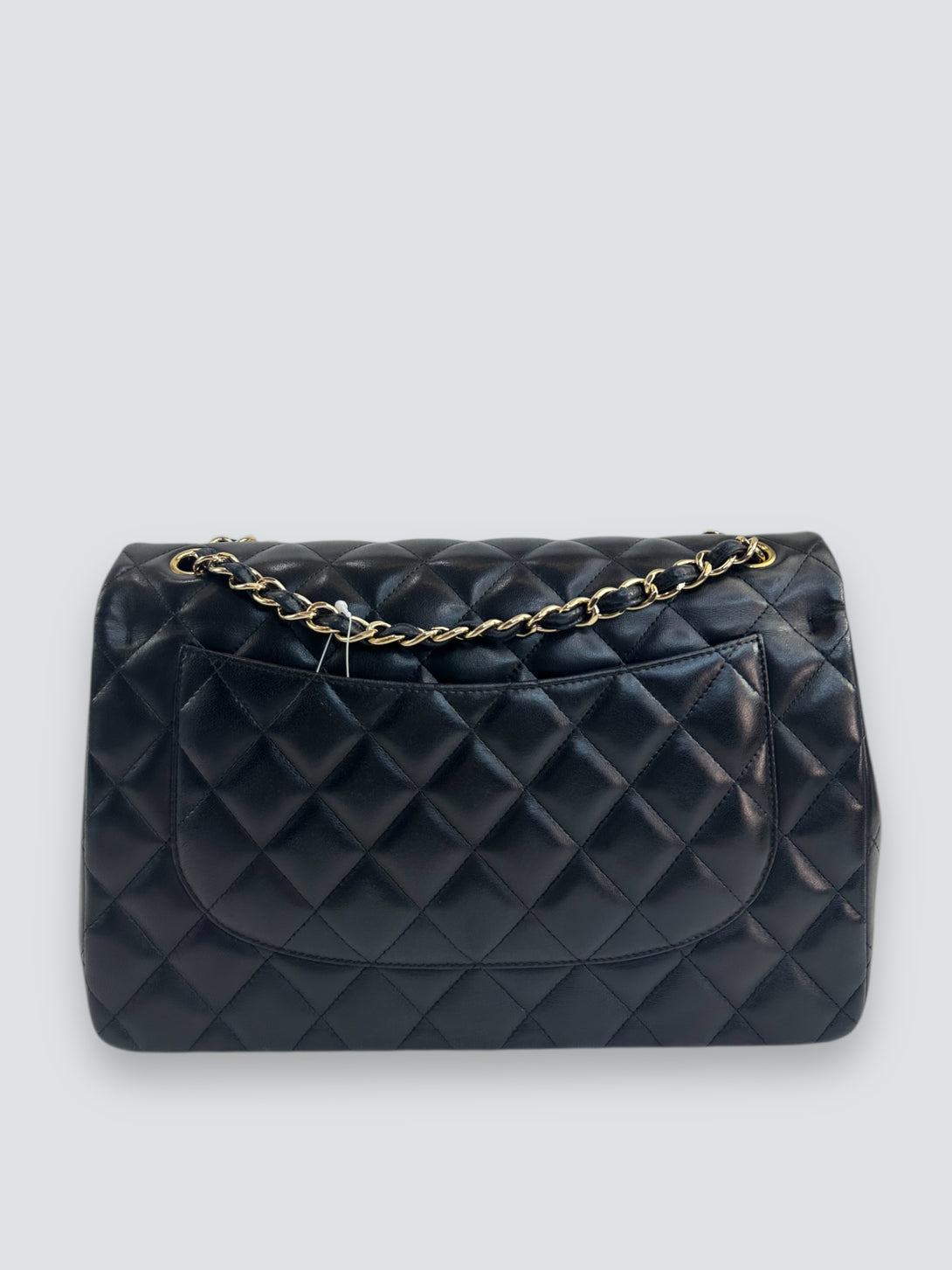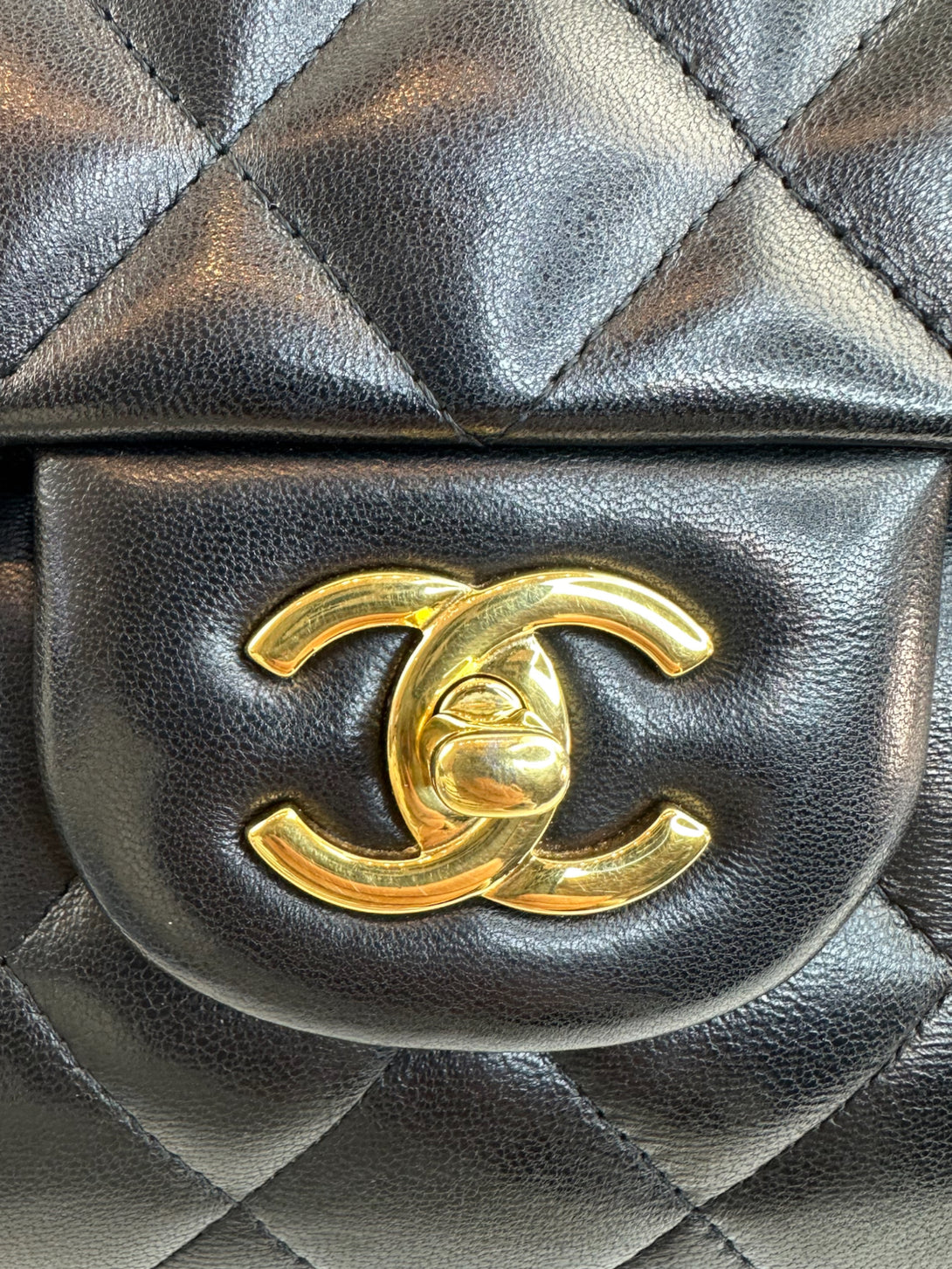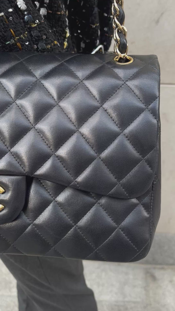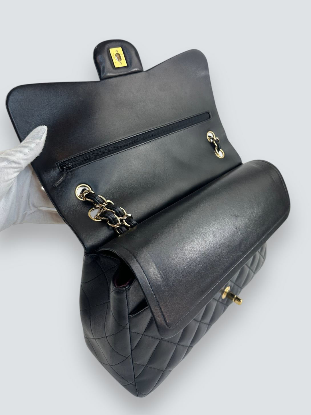 Chanel Black Lambskin Leather Jumbo Double Flap