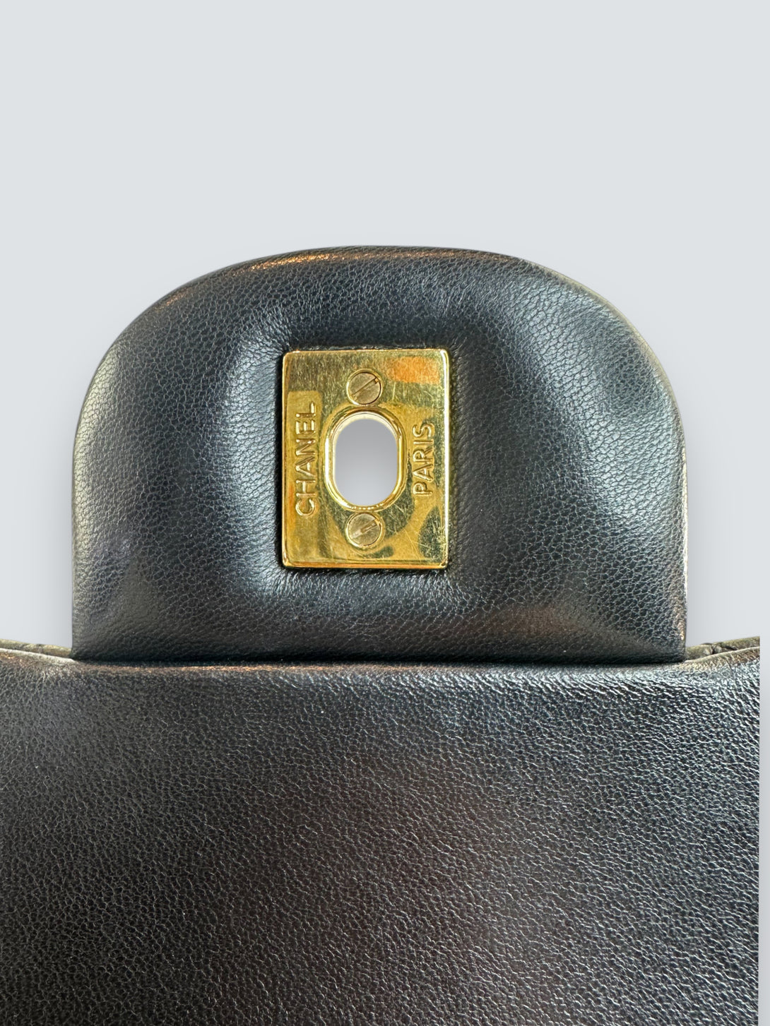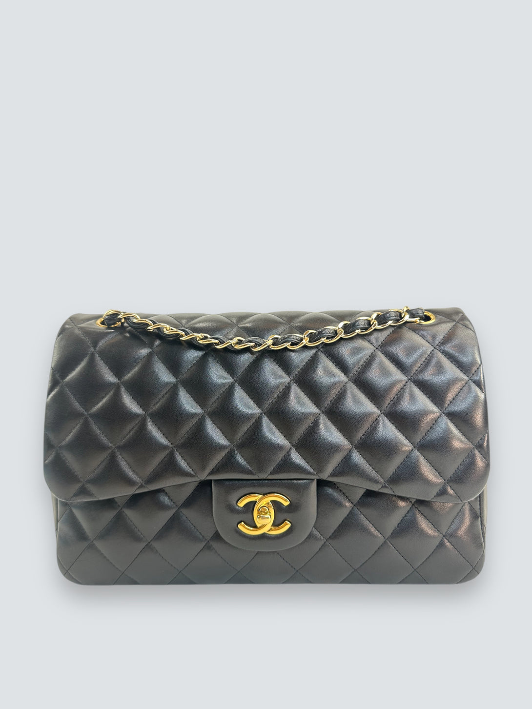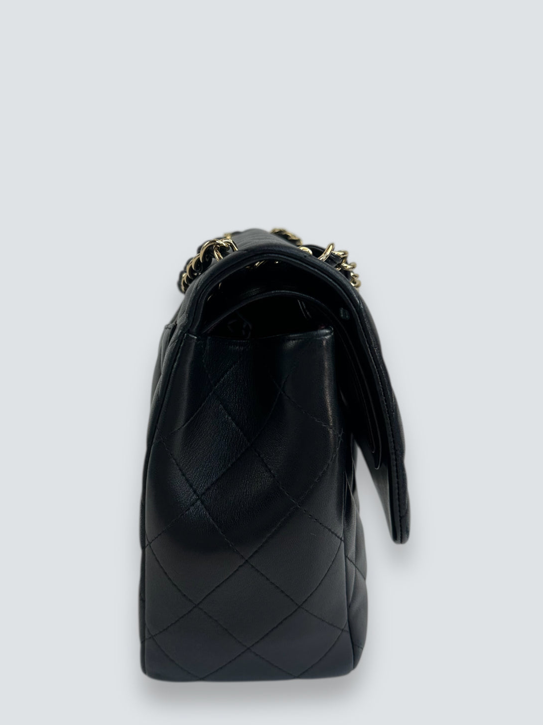 Chanel Black Lambskin Leather Jumbo Double Flap