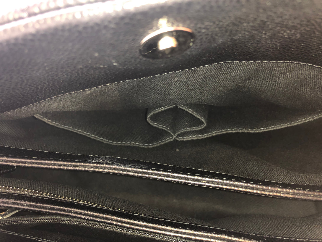 Good: Items show more prominent wear such as noticeable discoloration, stains and snags to fabric. May have worn corners and handles, tarnishing to hardware and creasing to leather. Pen or make up marks may be visible in the interior of the bag.