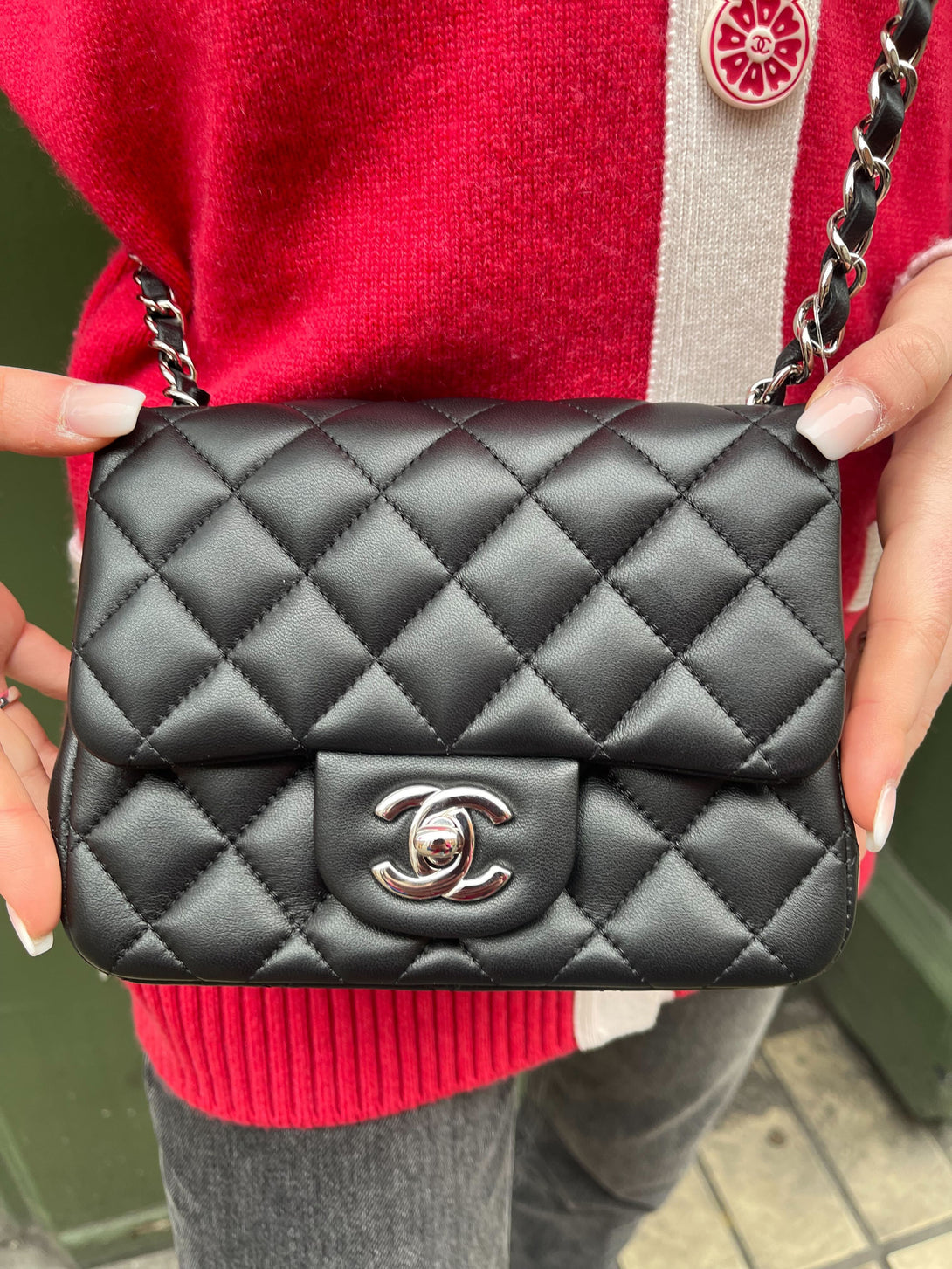 Part payment - Chanel Black Quilted Lambskin Leather "Mini Square" Single Flap