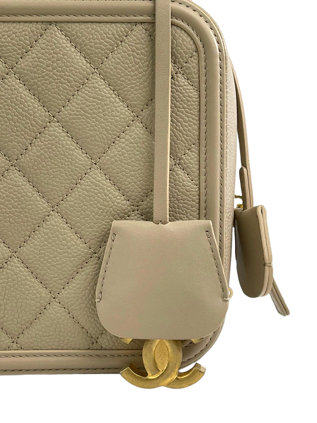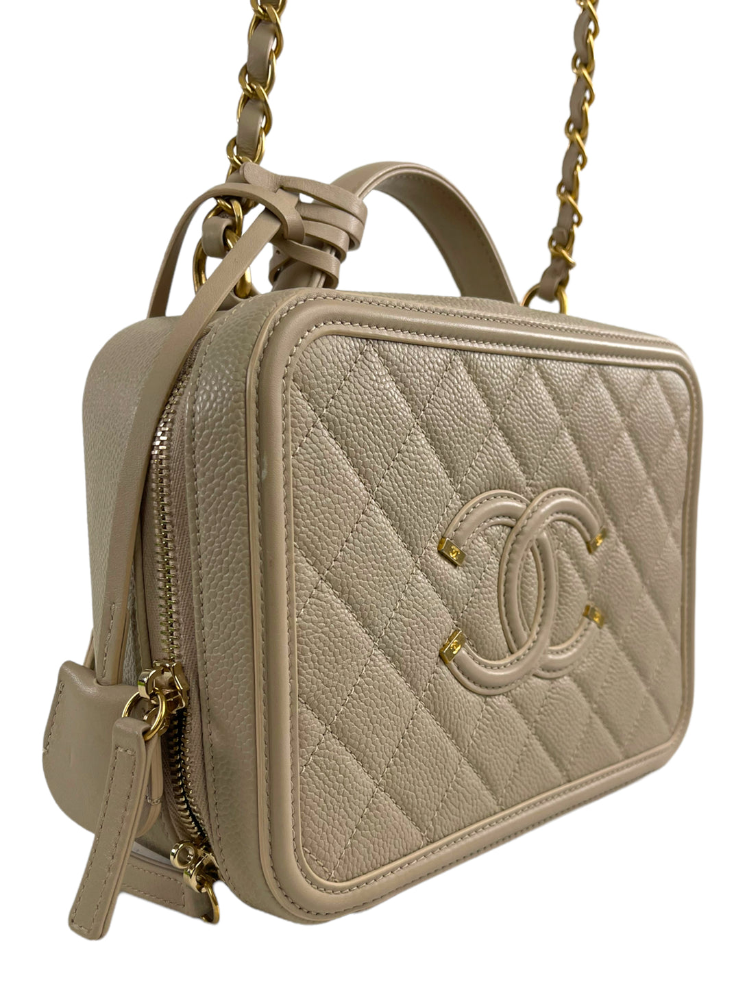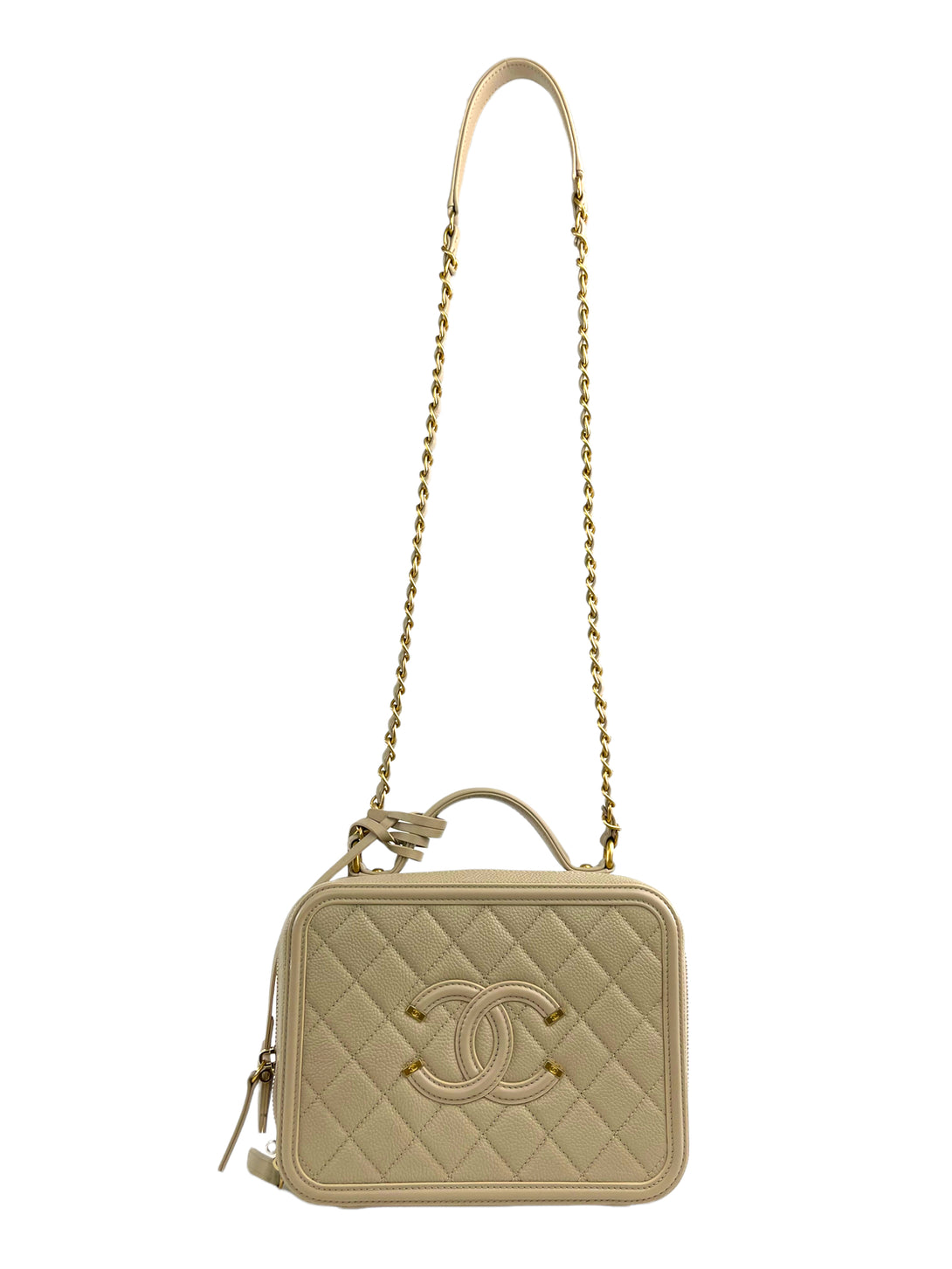 Chanel Cream Caviar Leather Filigree Vanity Crossbody