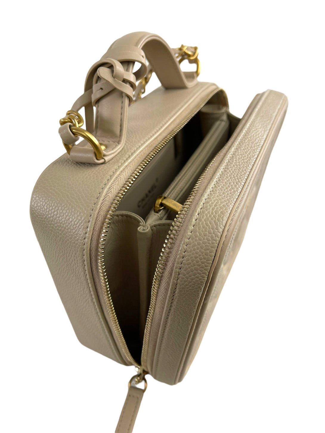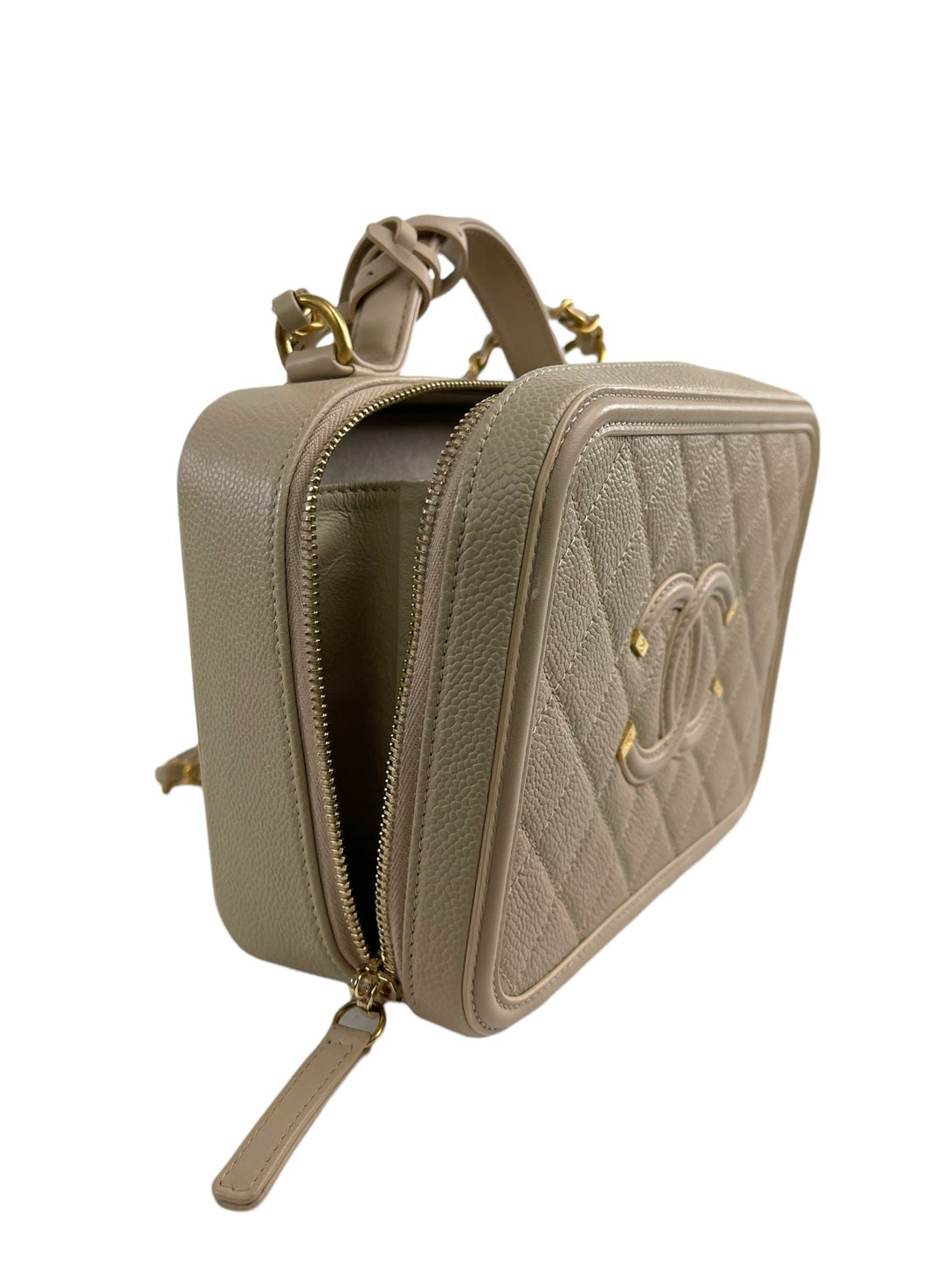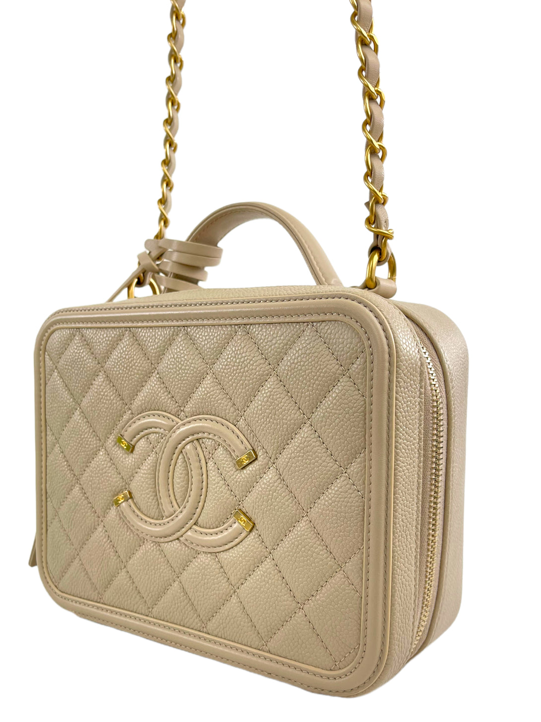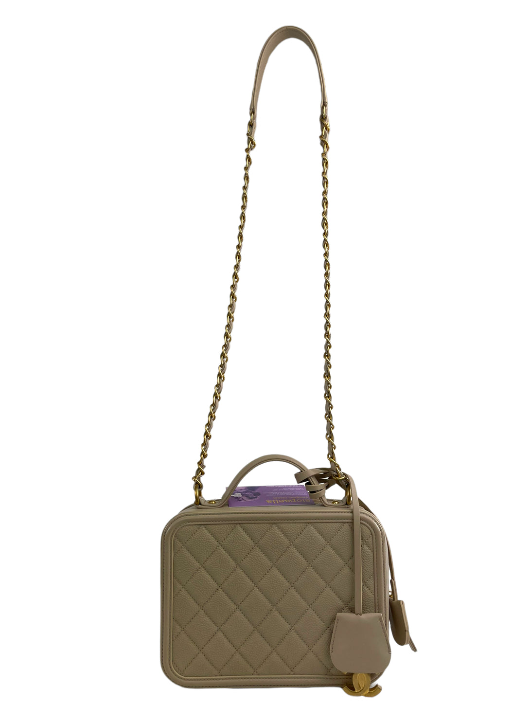 Chanel Cream Caviar Leather Filigree Vanity Crossbody