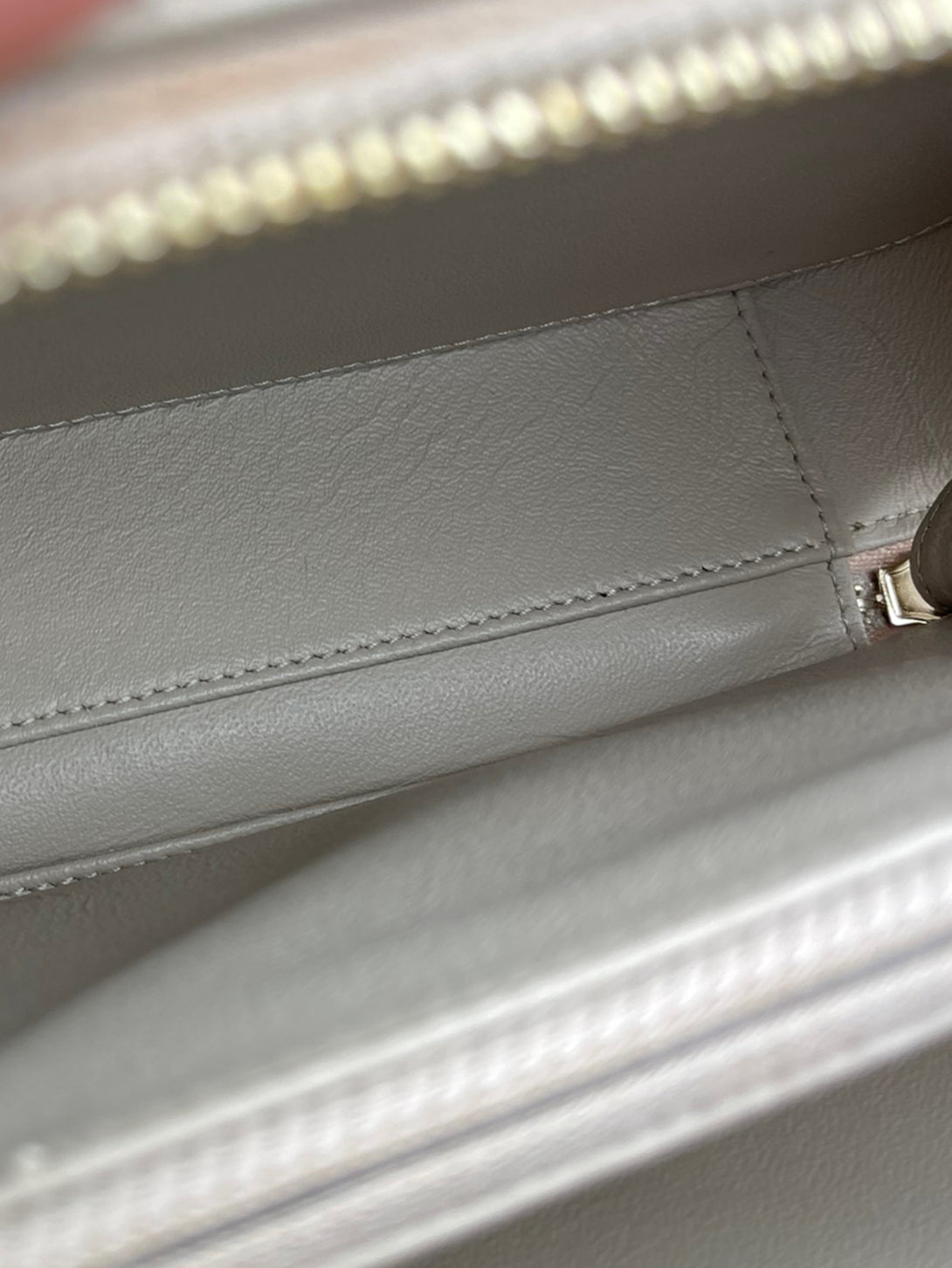Fair: Very prominent wear, may have holes on corners, severe scuffs, piping of bag showing and pen marks to exterior. Interior may have pen or make up marks.