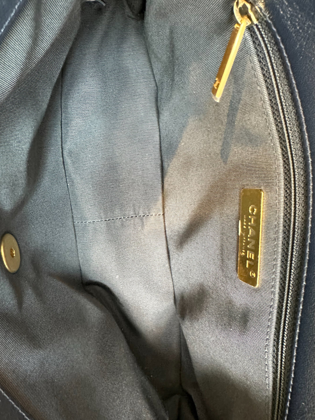 Good: Items show more prominent wear such as noticeable discoloration, stains and snags to fabric. May have worn corners and handles, tarnishing to hardware and creasing to leather. Pen or make up marks may be visible in the interior of the bag.