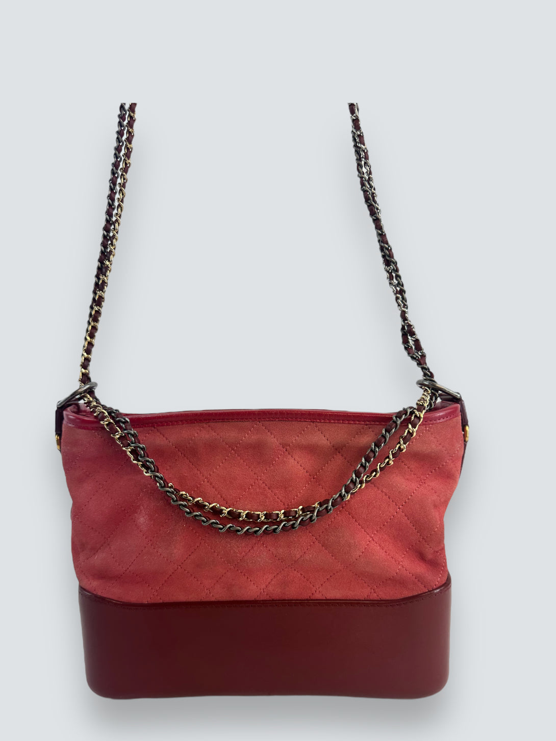 Chanel Red Leather & Suede Gabrielle Crossbody