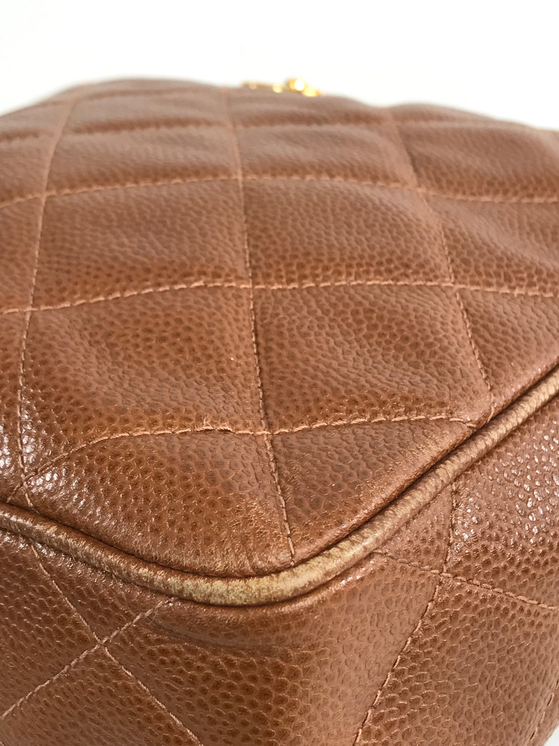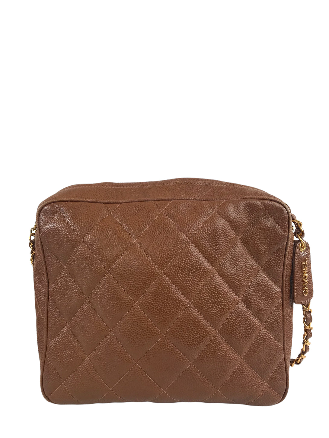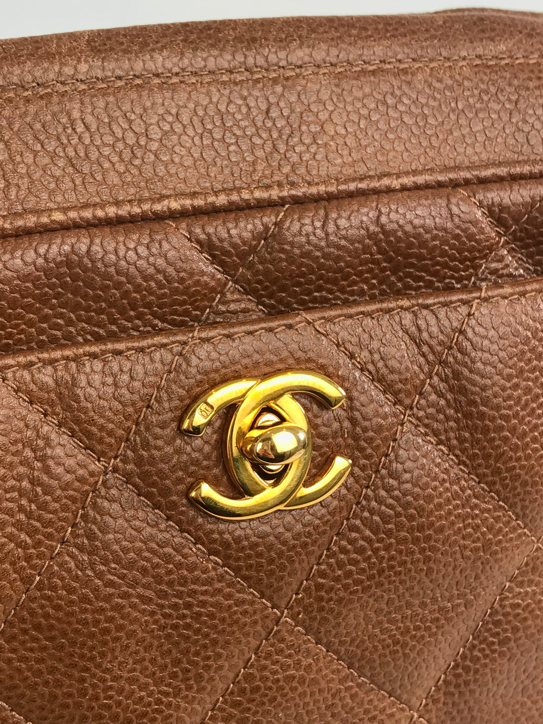 Chanel Tan Caviar Leather Vintage Camera Bag