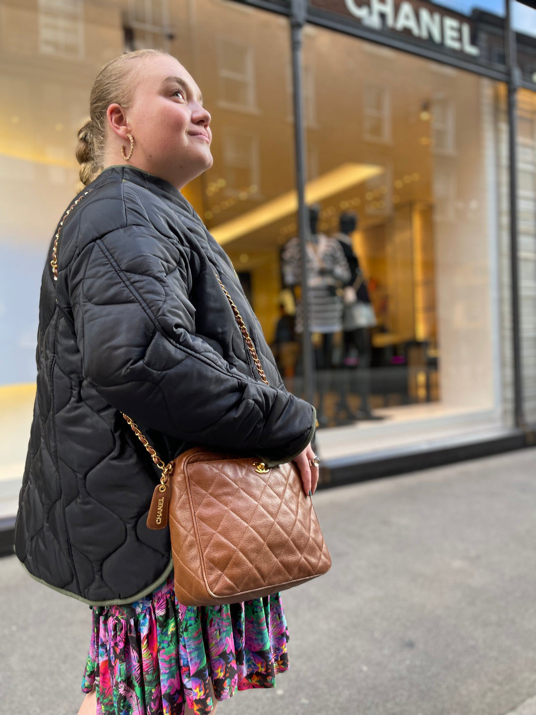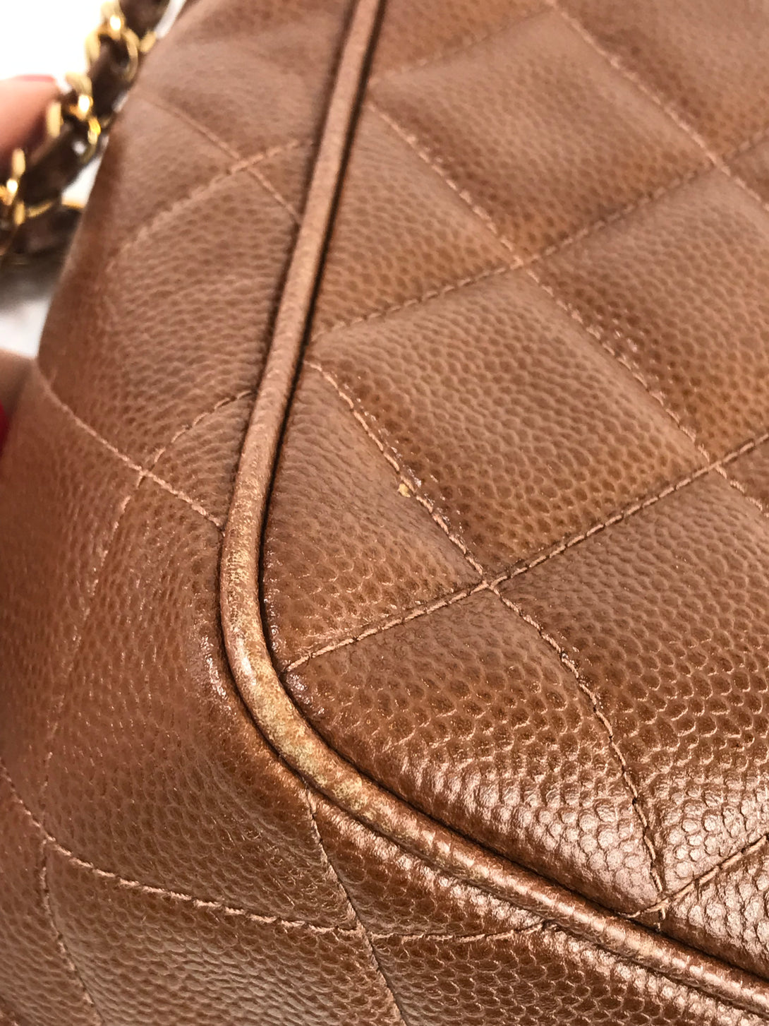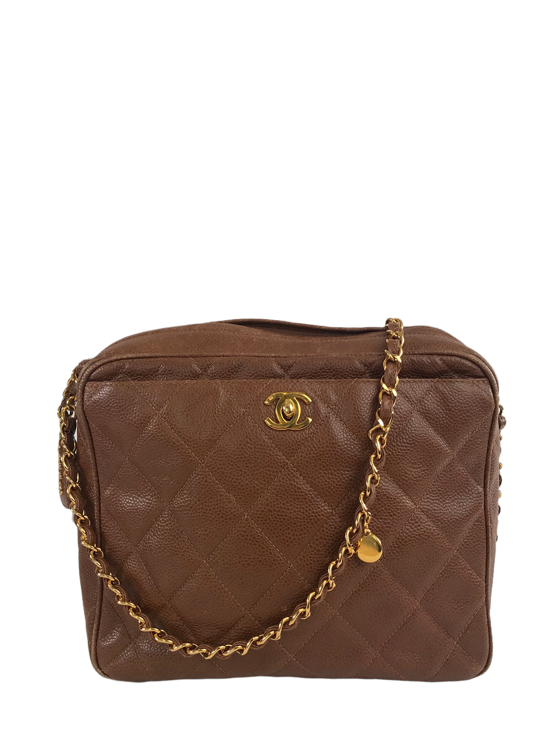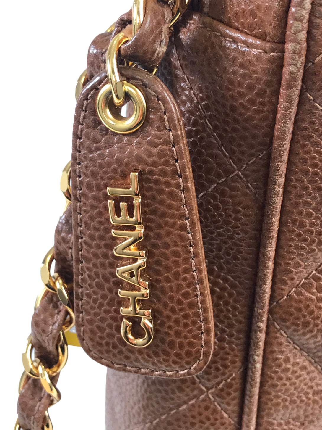 Chanel Tan Caviar Leather Vintage Camera Bag