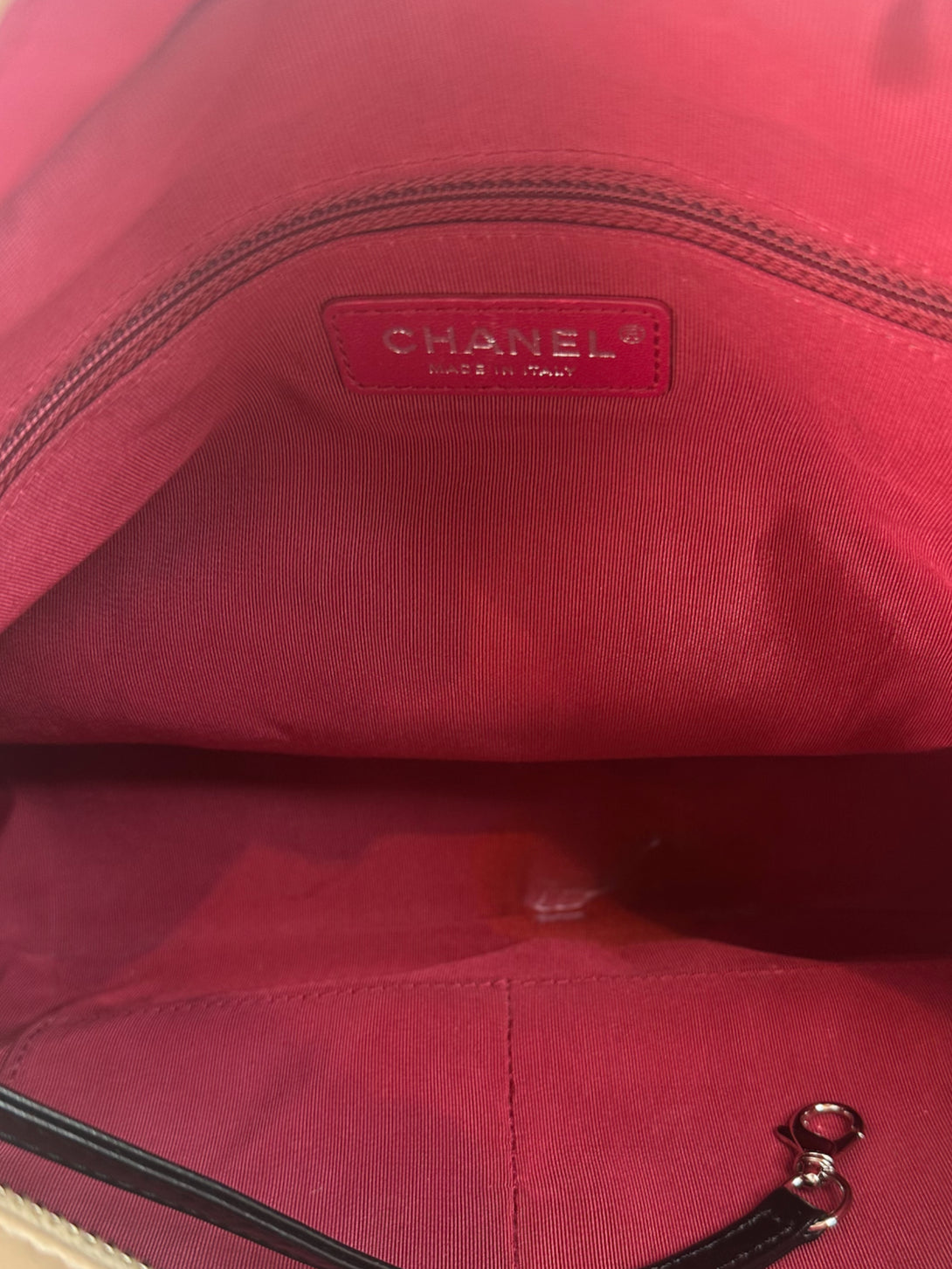 Good: Items show more prominent wear such as noticeable discoloration, stains and snags to fabric. May have worn corners and handles, tarnishing to hardware and creasing to leather. Pen or make up marks may be visible in the interior of the bag.