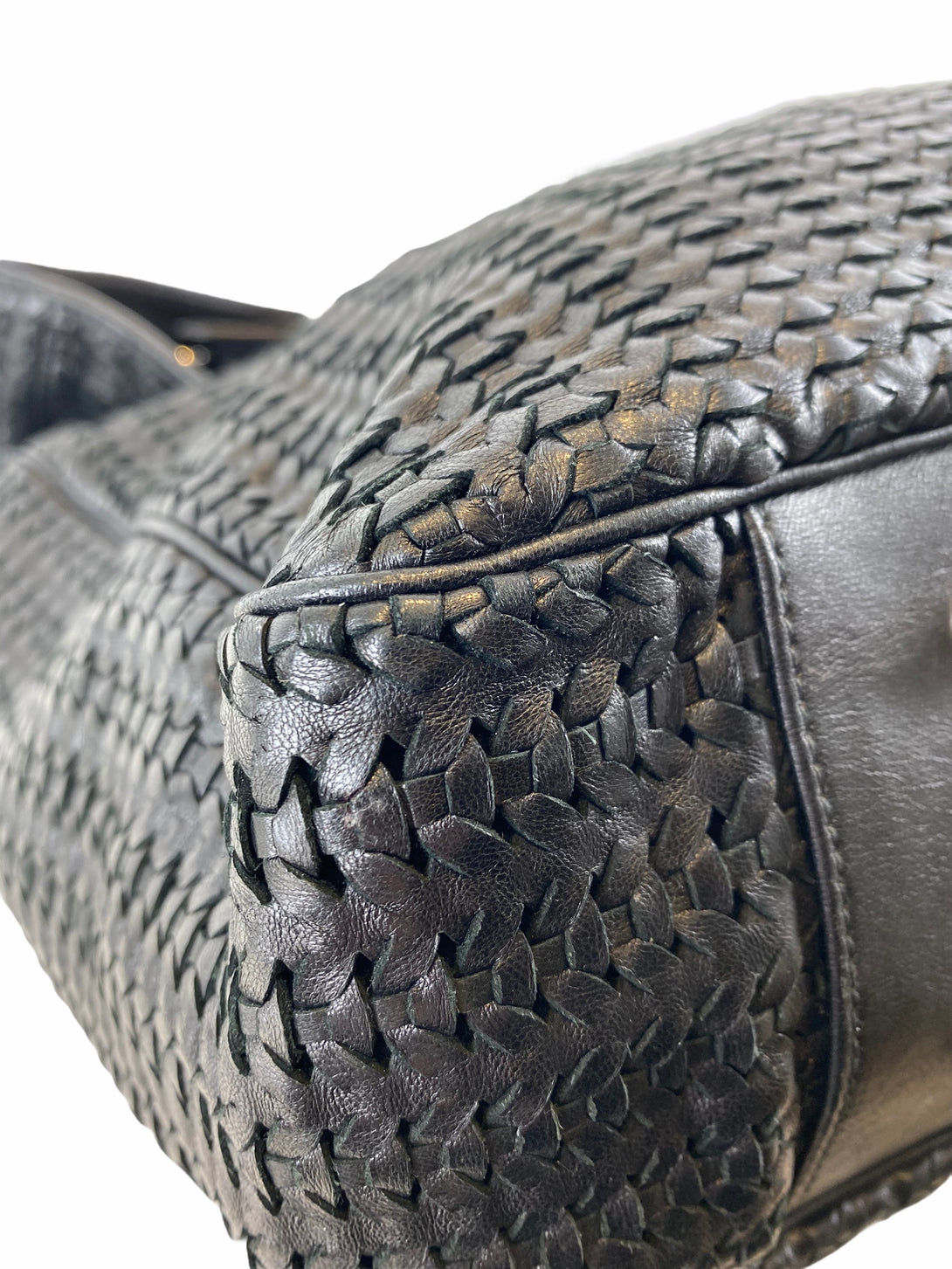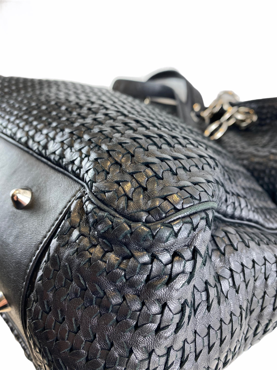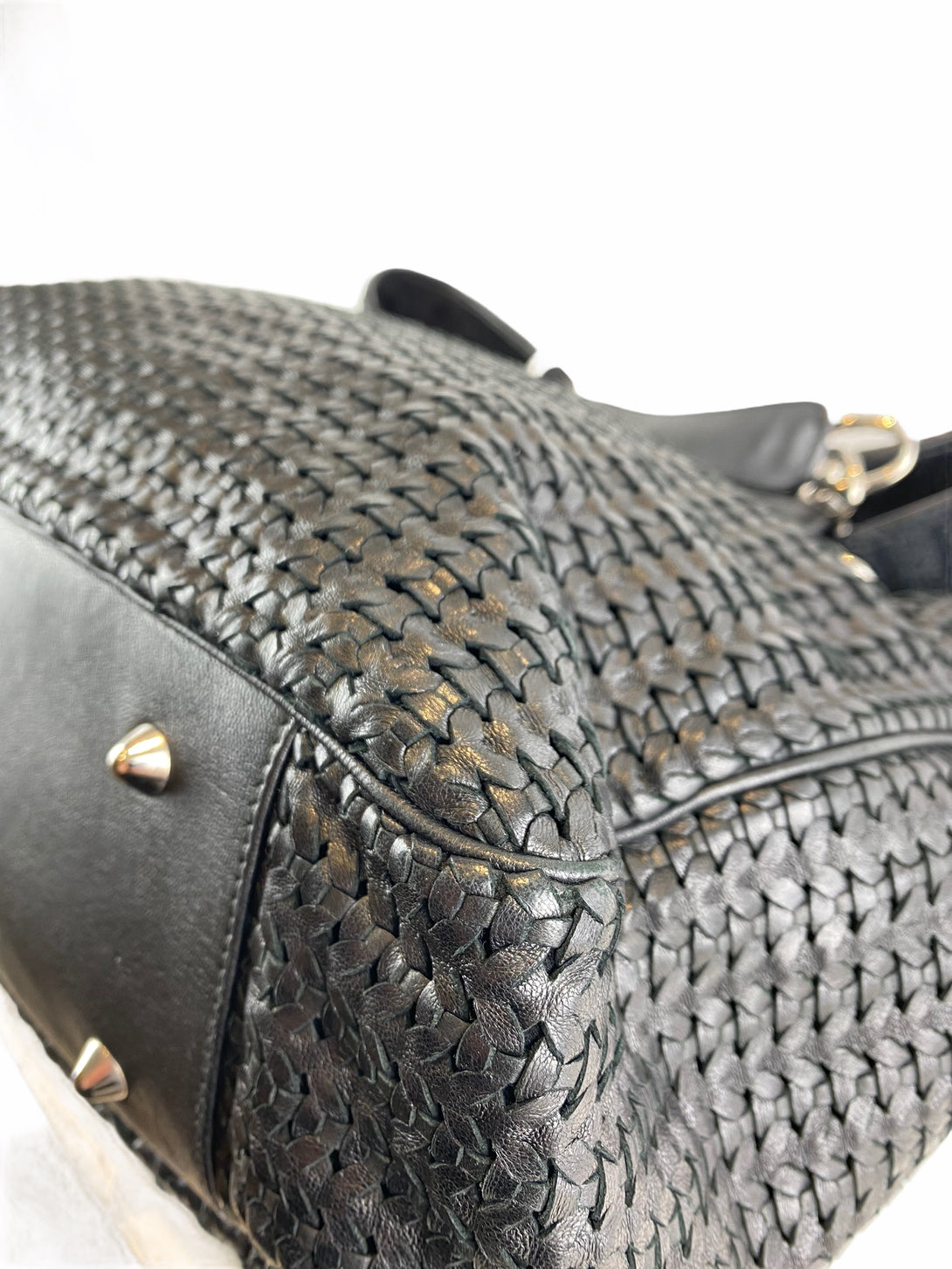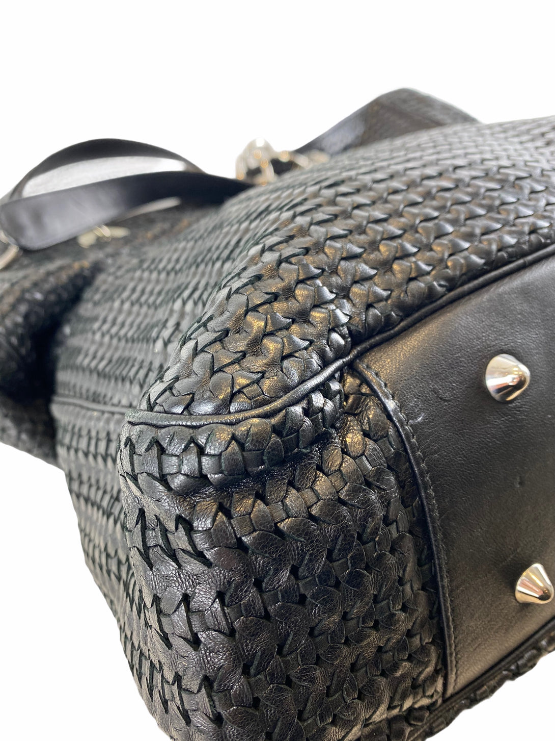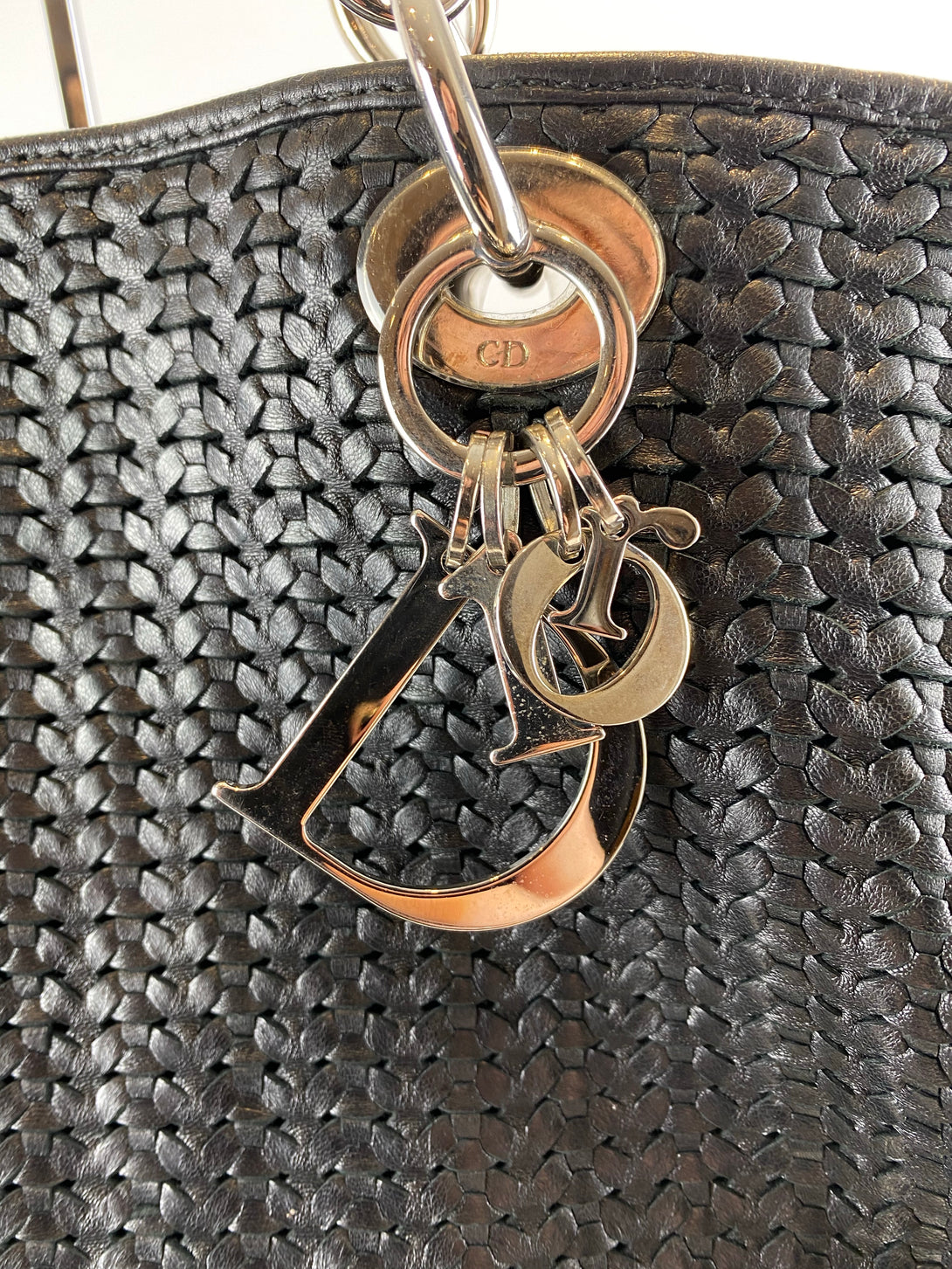 Christian Dior Black Woven Leather "Lady Dior" Shopper Tote