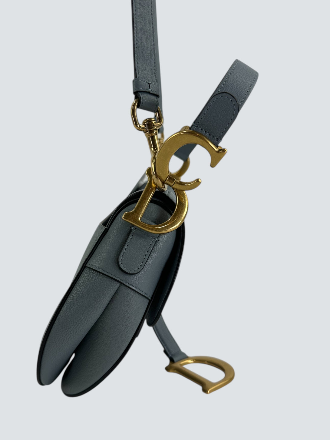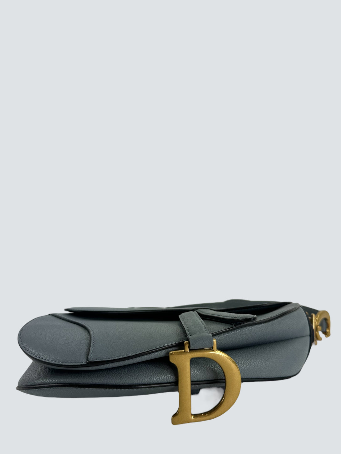 Christian Dior Duck Egg Blue Leather Saddle Bag