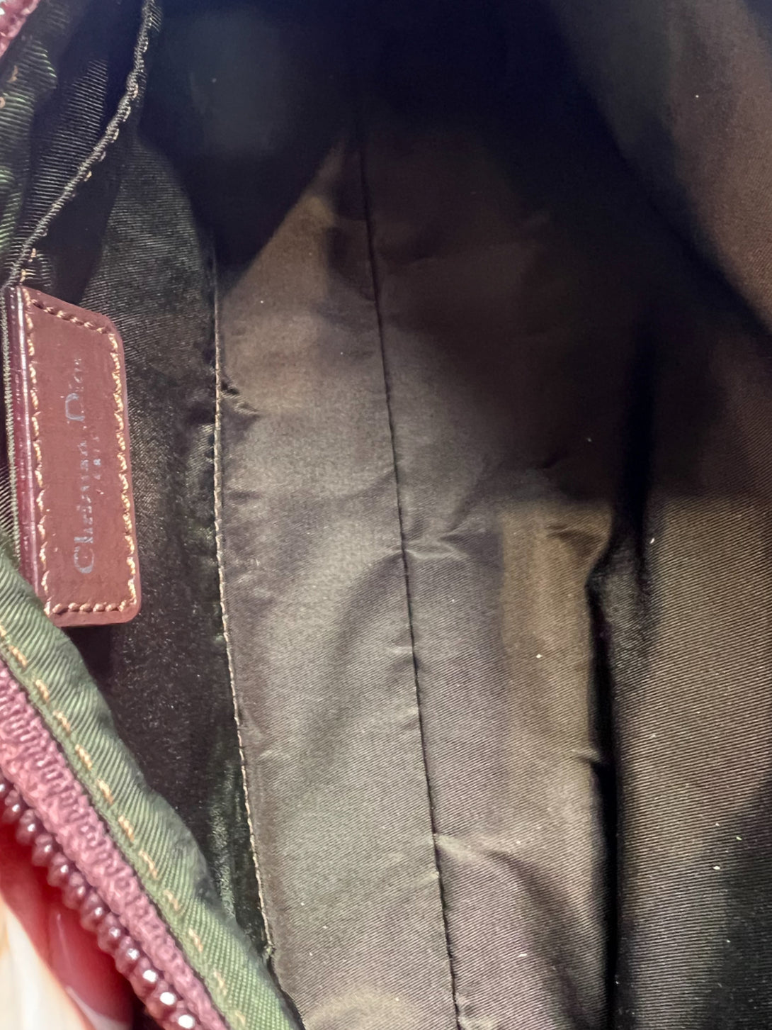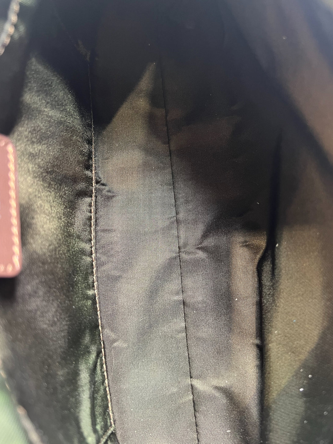 Good: Items show more prominent wear such as noticeable discoloration, stains and snags to fabric. May have worn corners and handles, tarnishing to hardware and creasing to leather. Pen or make up marks may be visible in the interior of the bag.