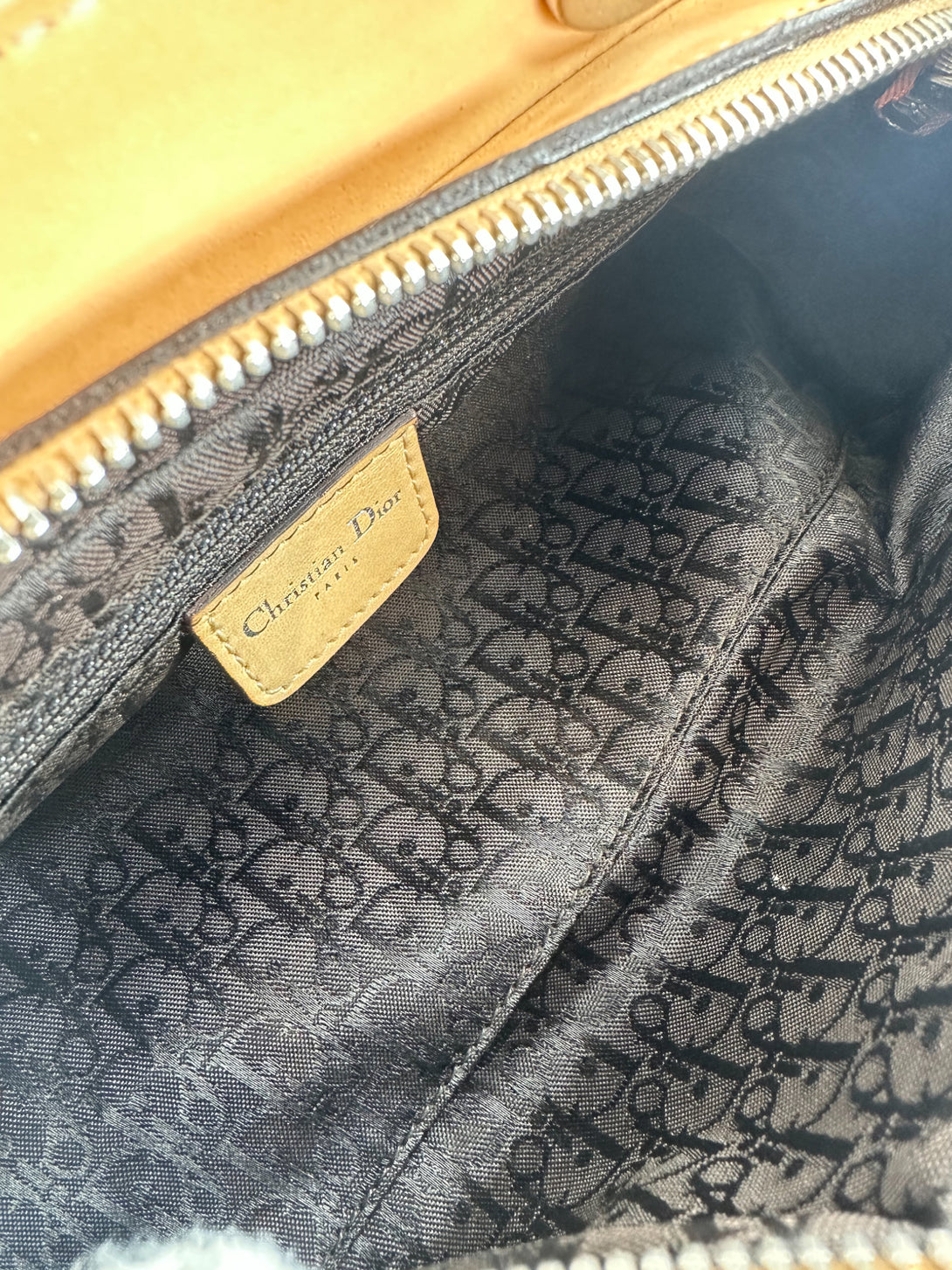 Good: Items show more prominent wear such as noticeable discoloration, stains and snags to fabric. May have worn corners and handles, tarnishing to hardware and creasing to leather. Pen or make up marks may be visible in the interior of the bag.