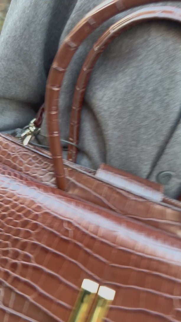 Demellier Burgundy Brown Croc Embossed Leather Tote