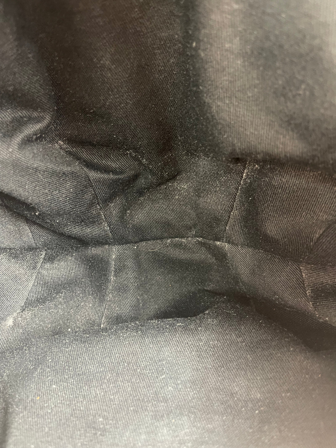 Good: Items show more prominent wear such as noticeable discoloration, stains and snags to fabric. May have worn corners and handles, tarnishing to hardware and creasing to leather. Pen or make up marks may be visible in the interior of the bag.