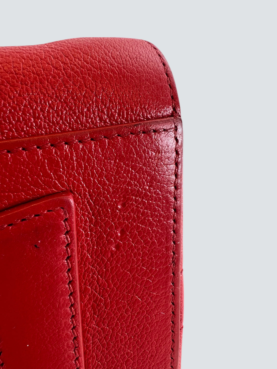 Good: Items show more prominent wear such as noticeable discoloration, stains and snags to fabric. May have worn corners and handles, tarnishing to hardware and creasing to leather. Pen or make up marks may be visible in the interior of the bag.