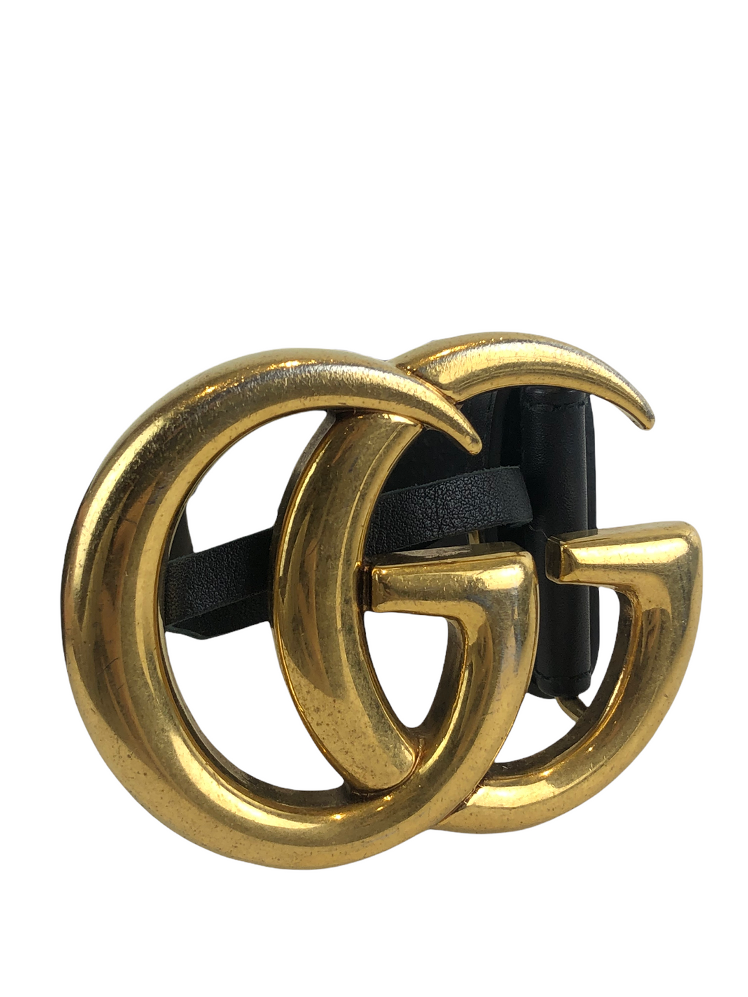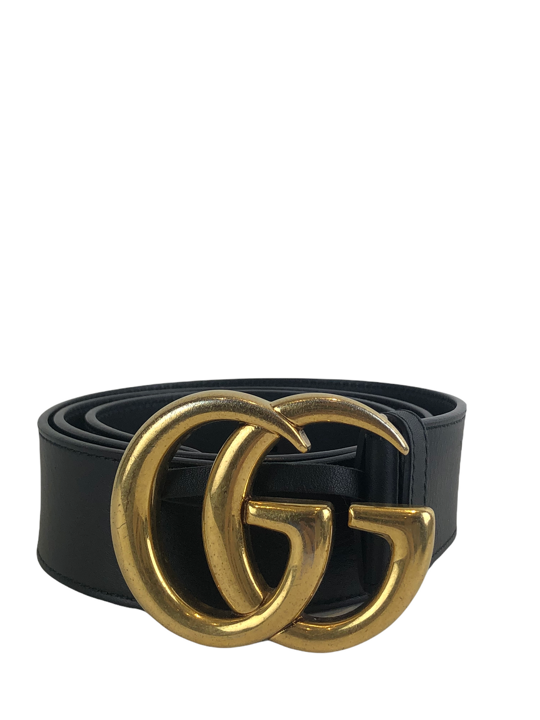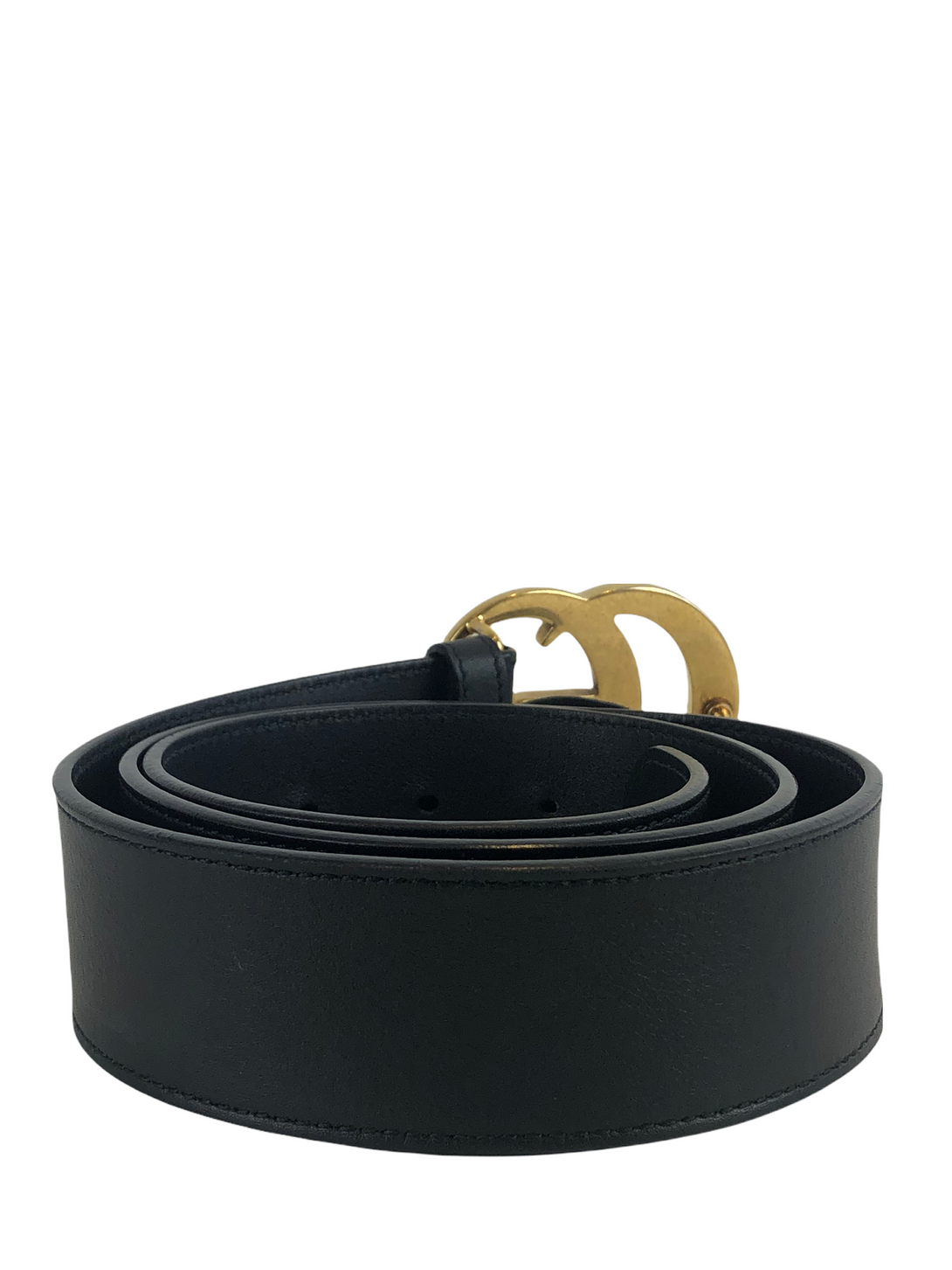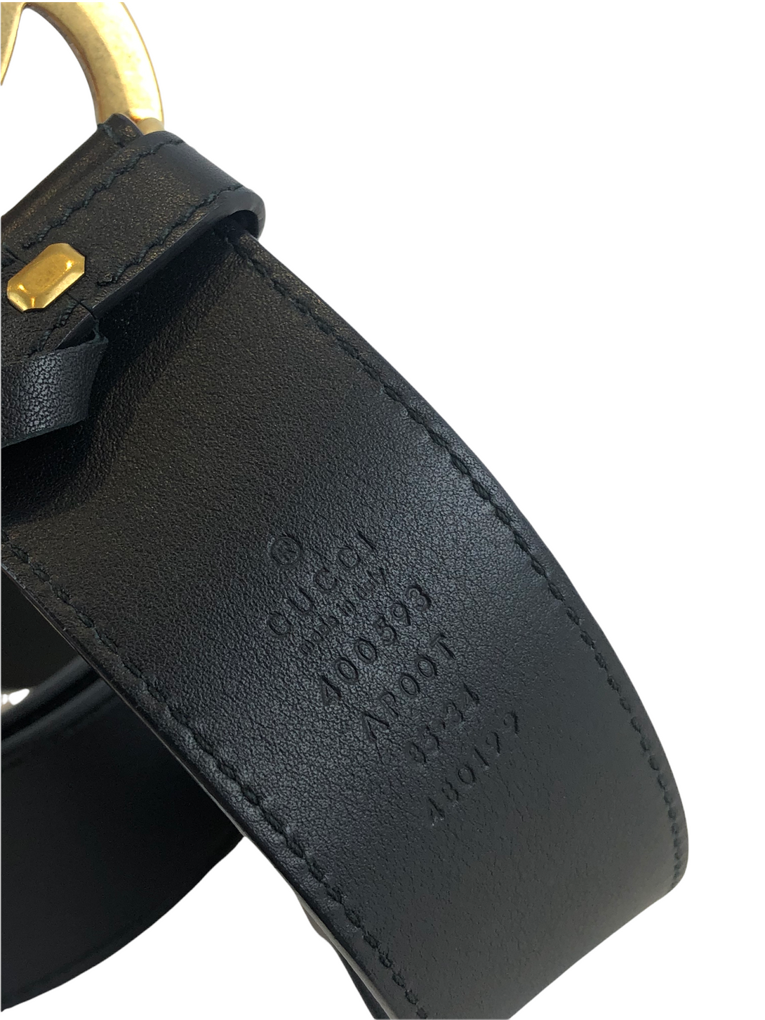 Gucci GG Goldtone Black Leather Belt - UP TO 34" WAIST