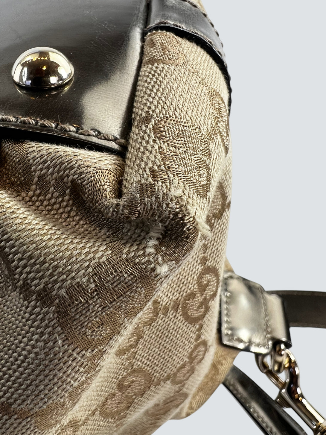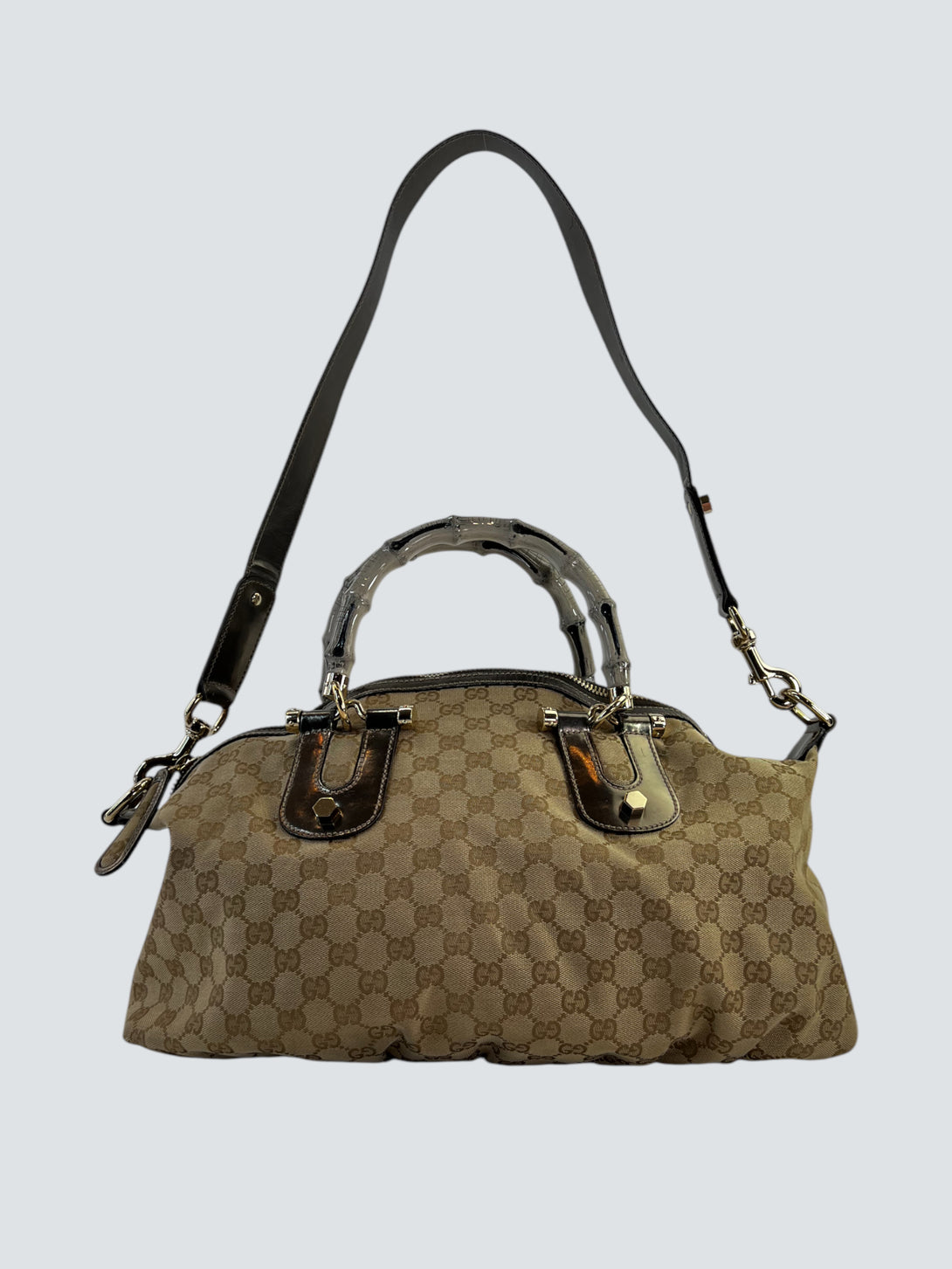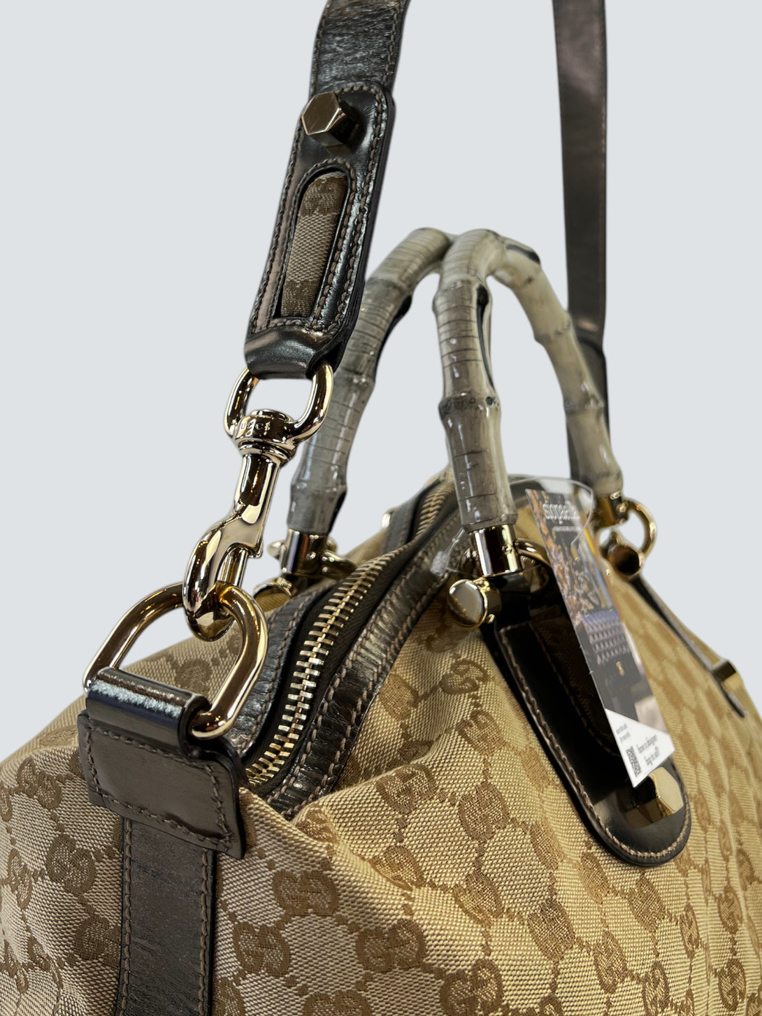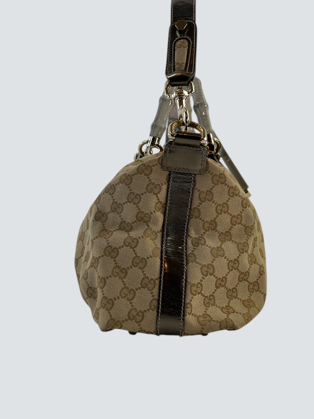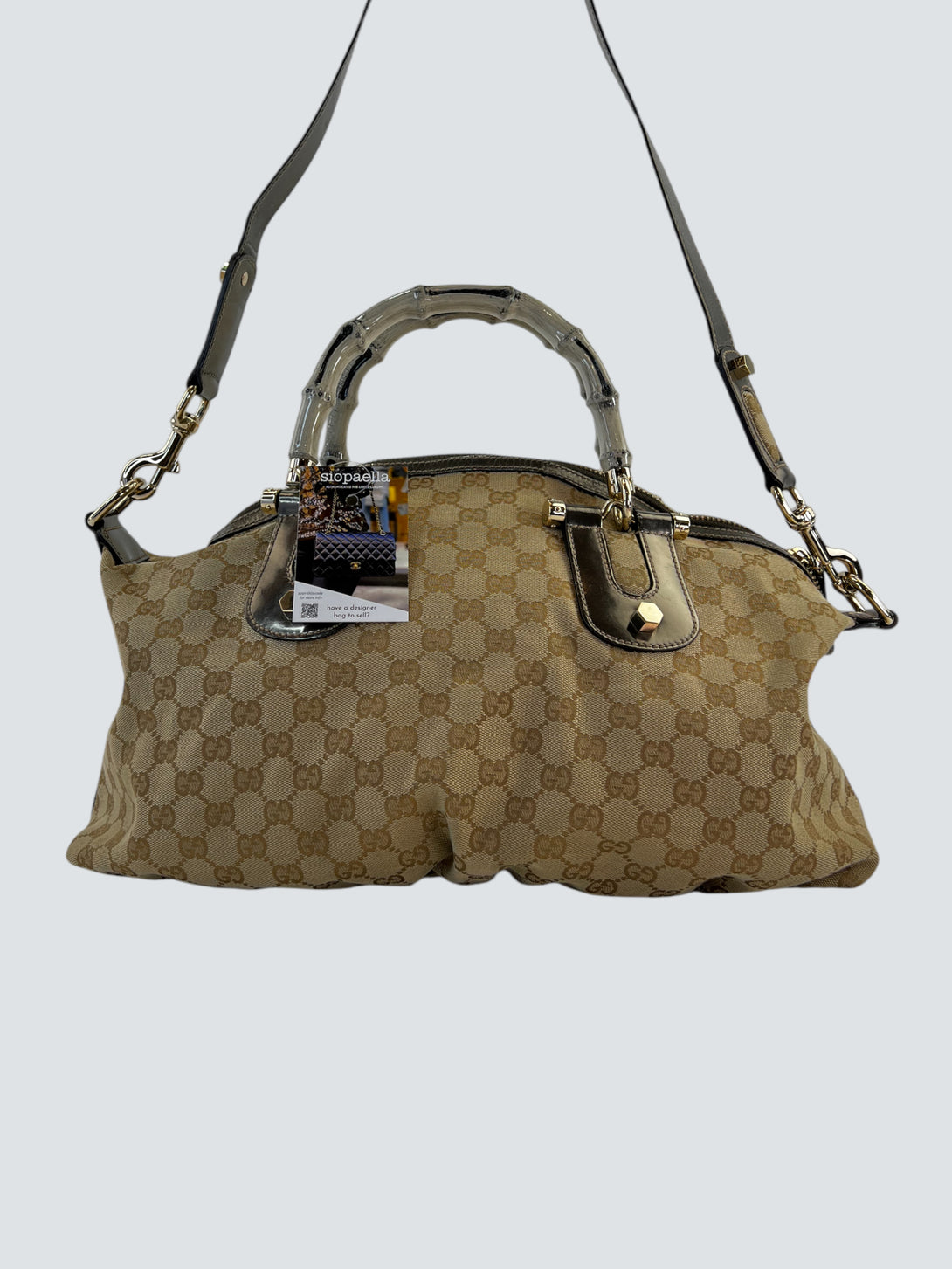 Gucci Monogram Canvas Tote with Silver Bamboo Handles