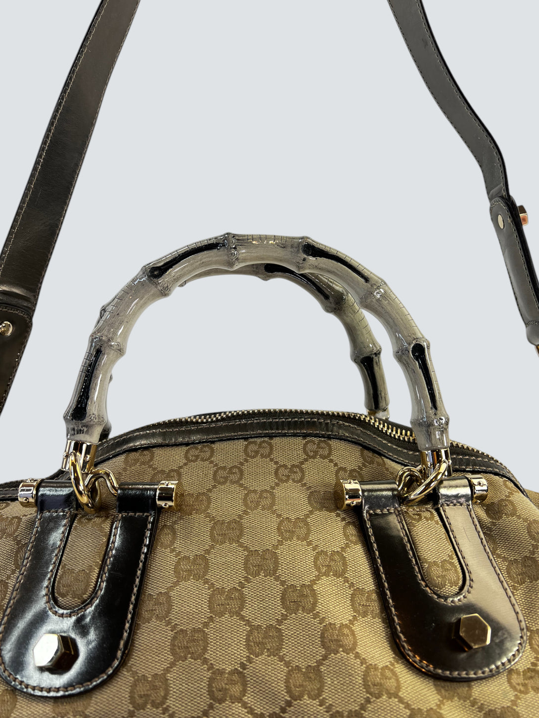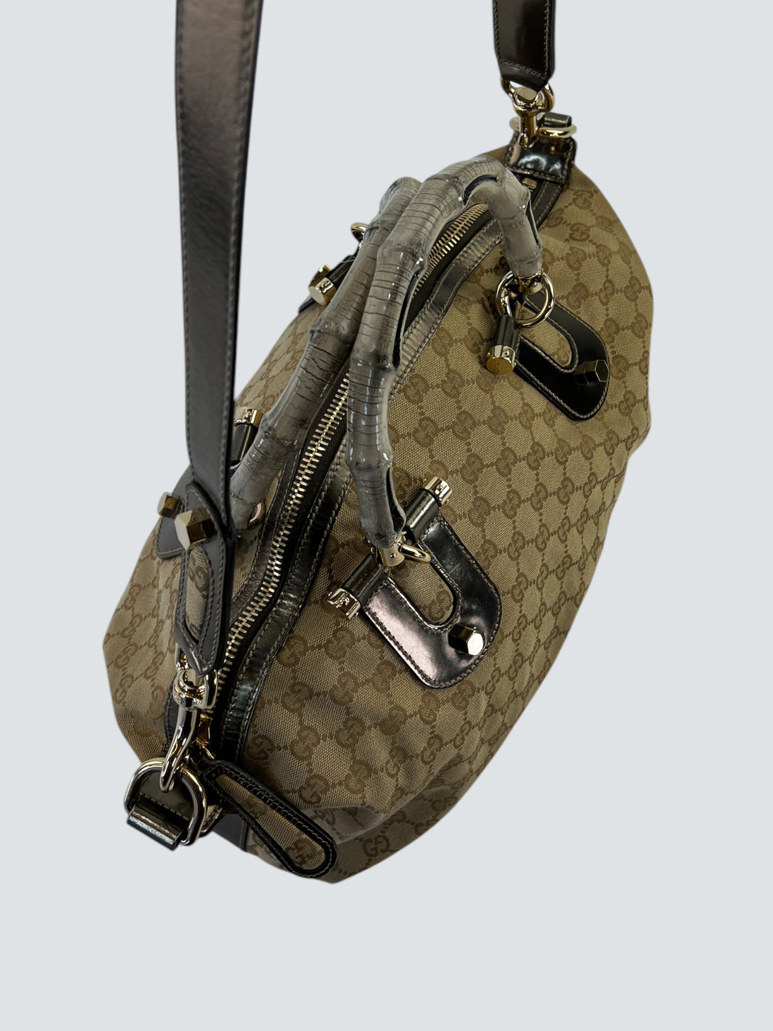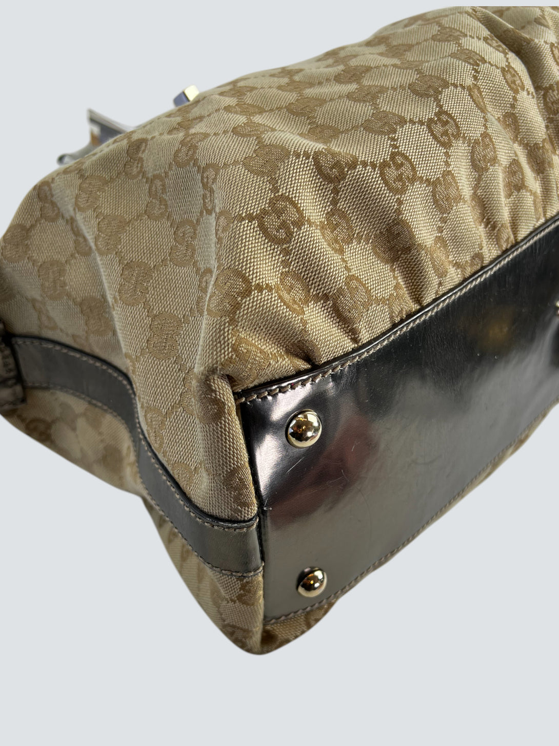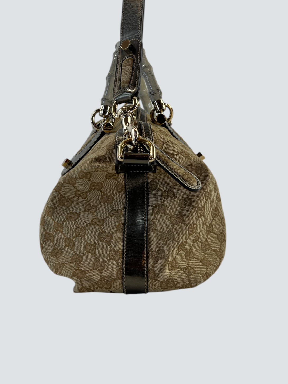 Gucci Monogram Canvas Tote with Silver Bamboo Handles