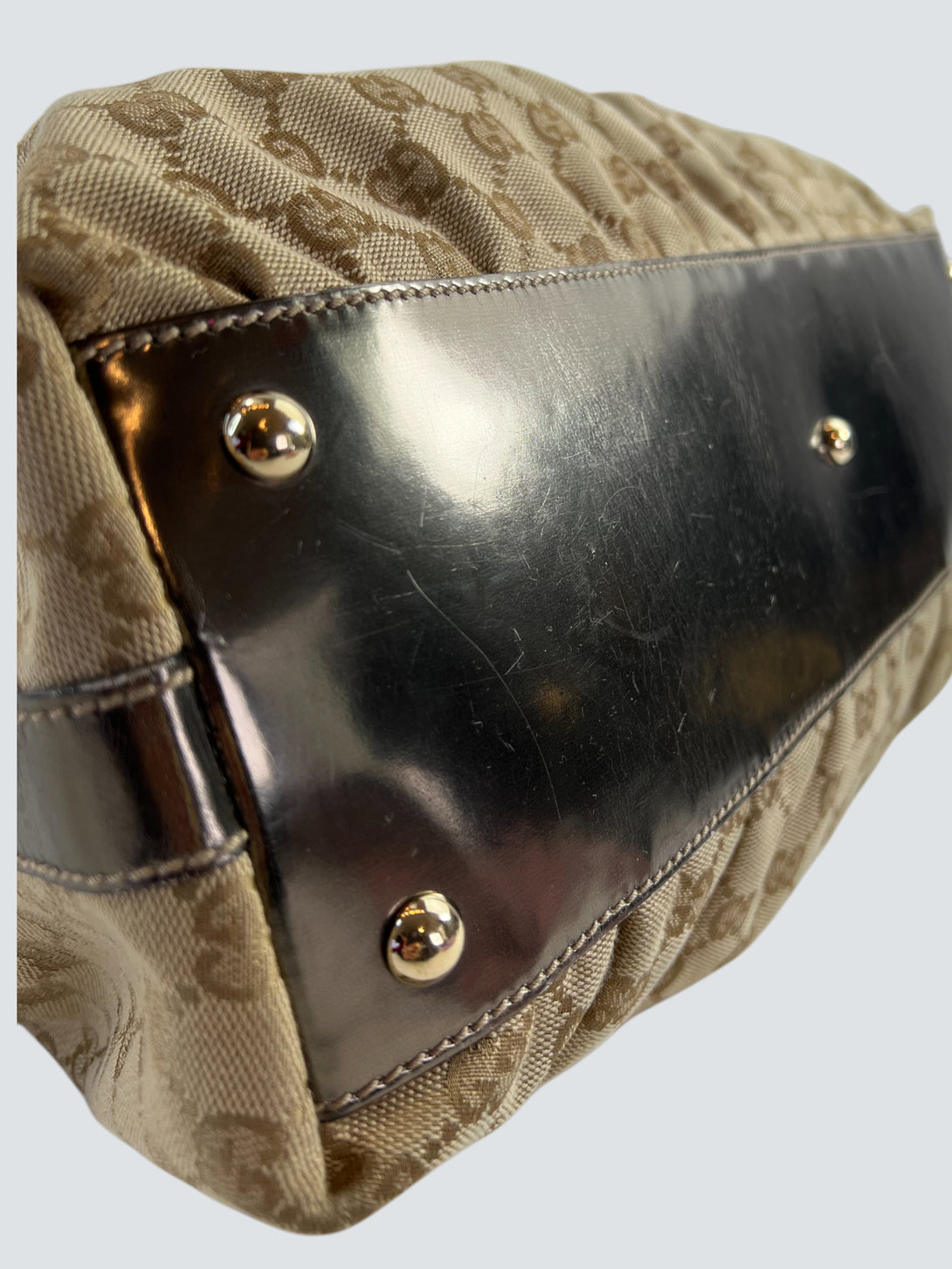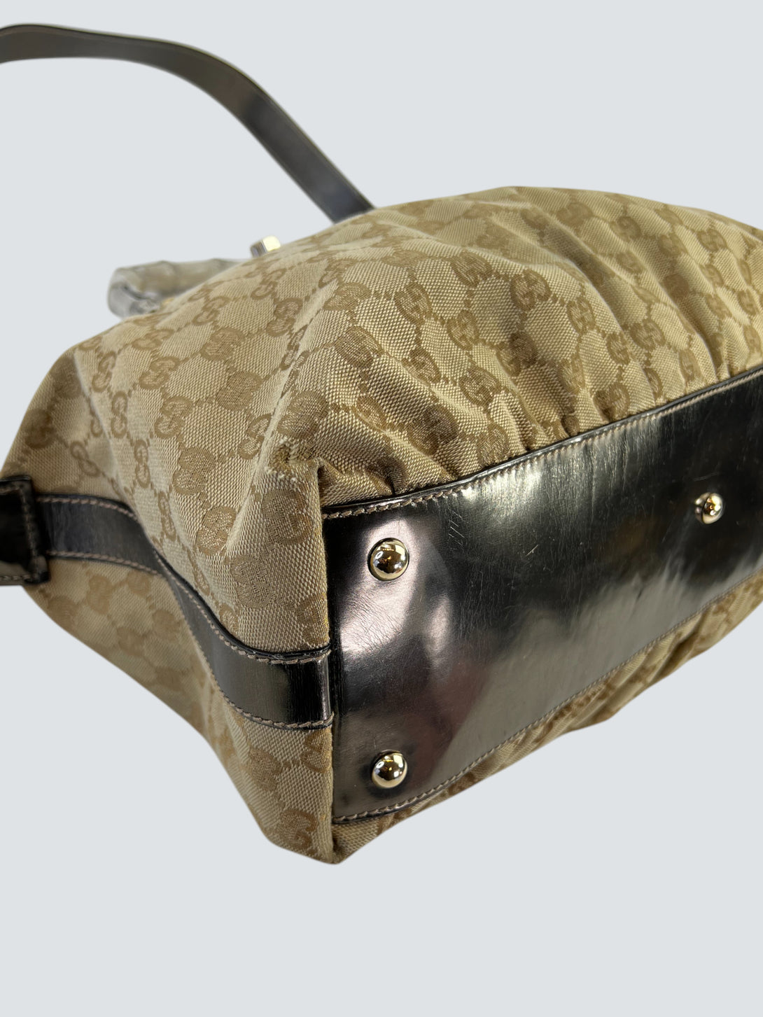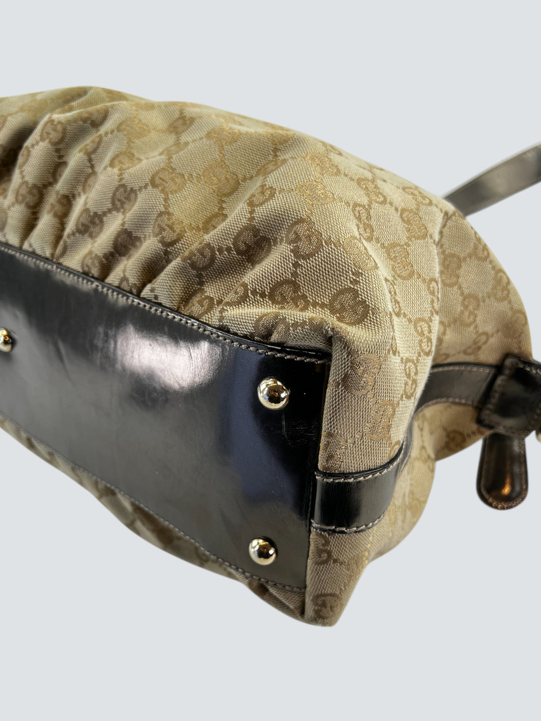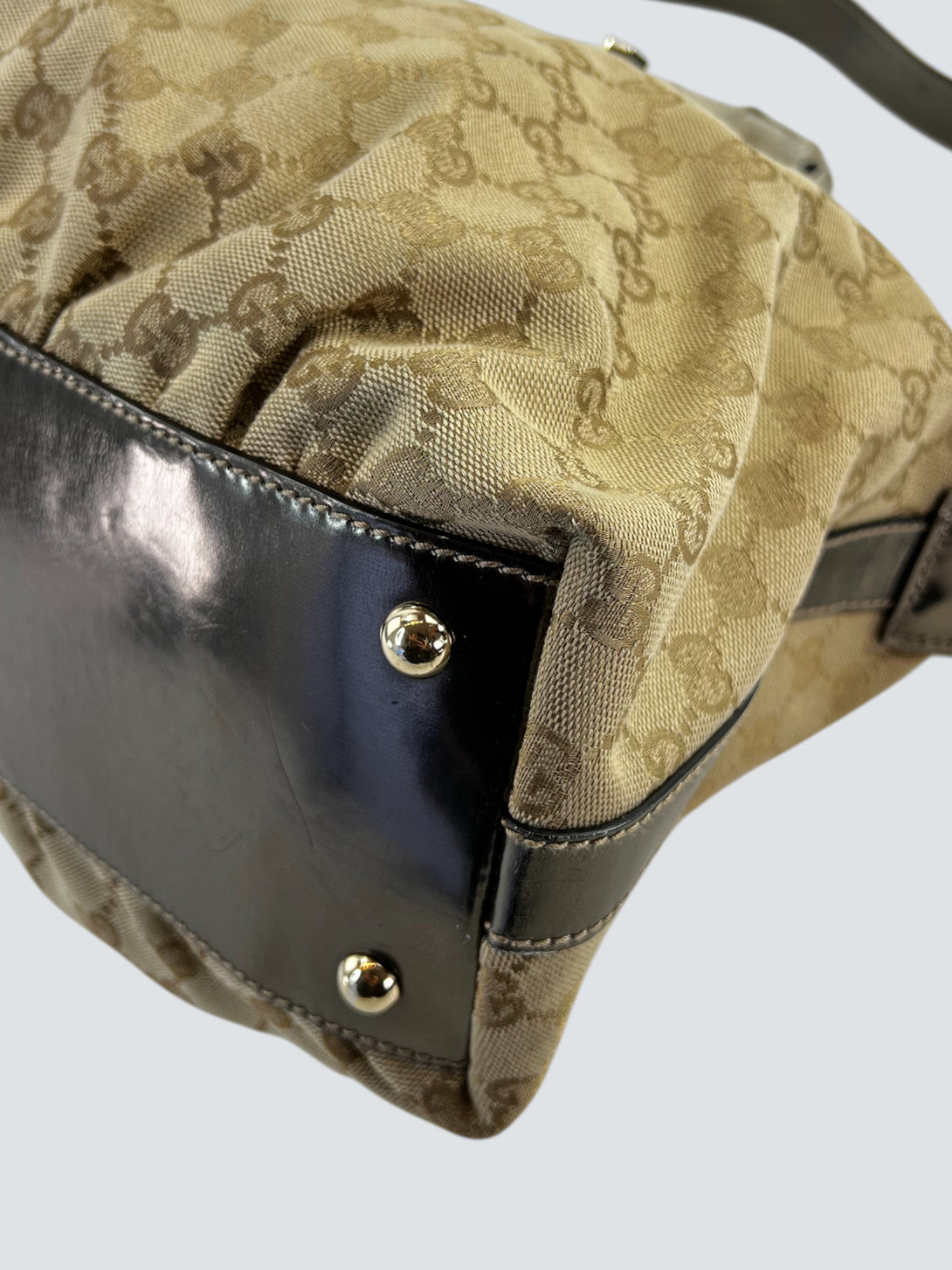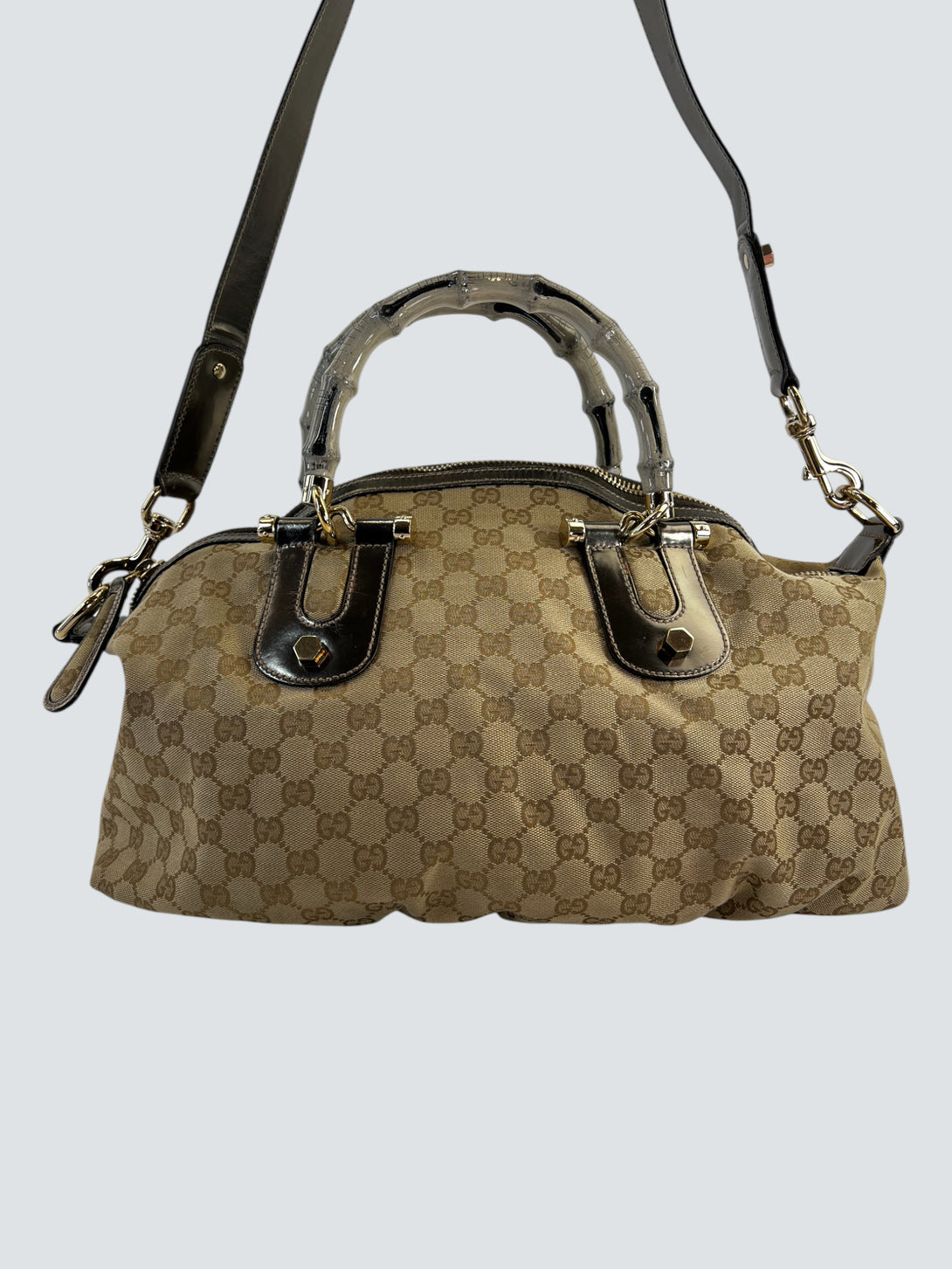 Gucci Monogram Canvas Tote with Silver Bamboo Handles