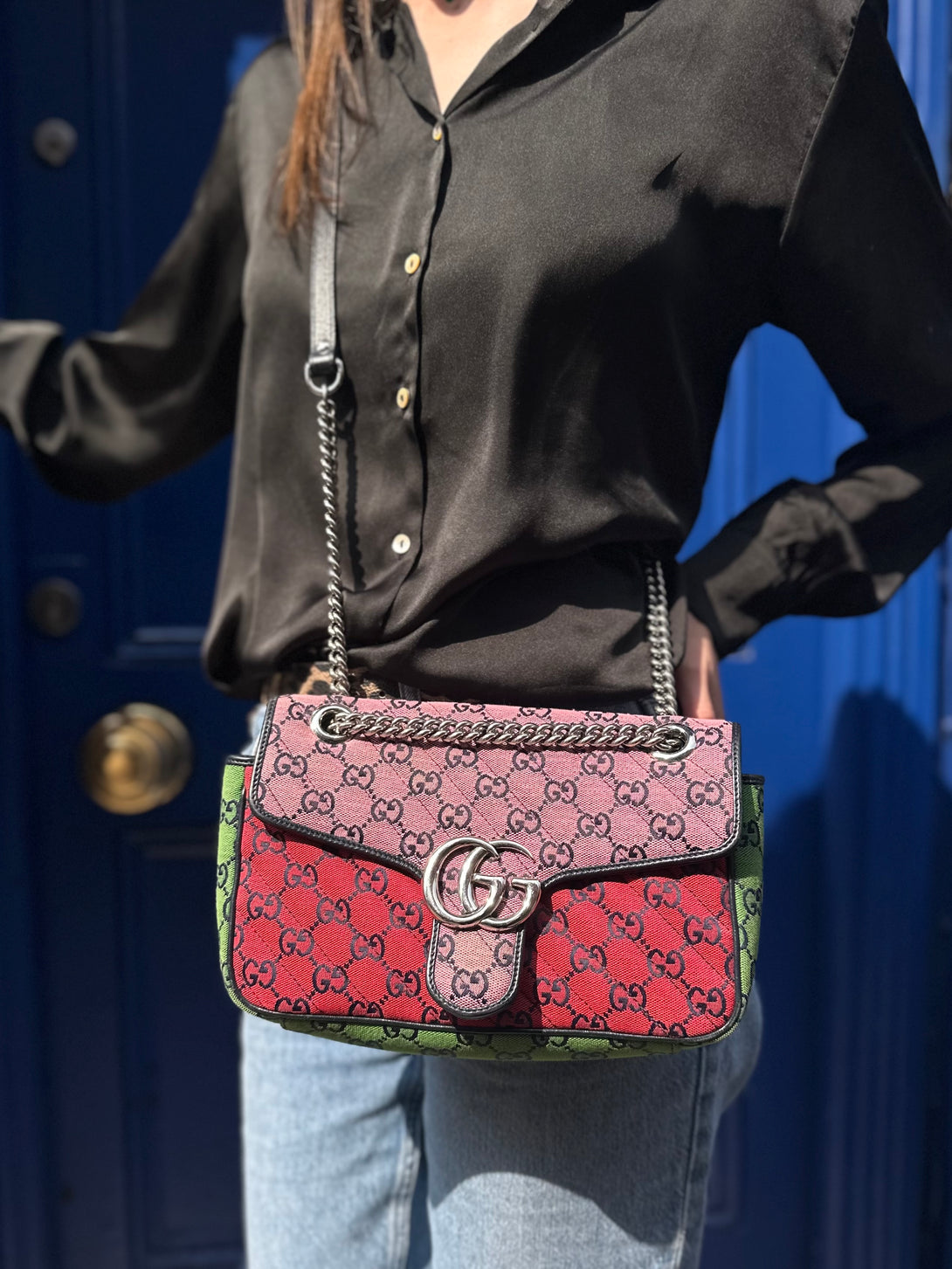 Gucci Multi Colour Monogram Fabric Marmont Crossbody