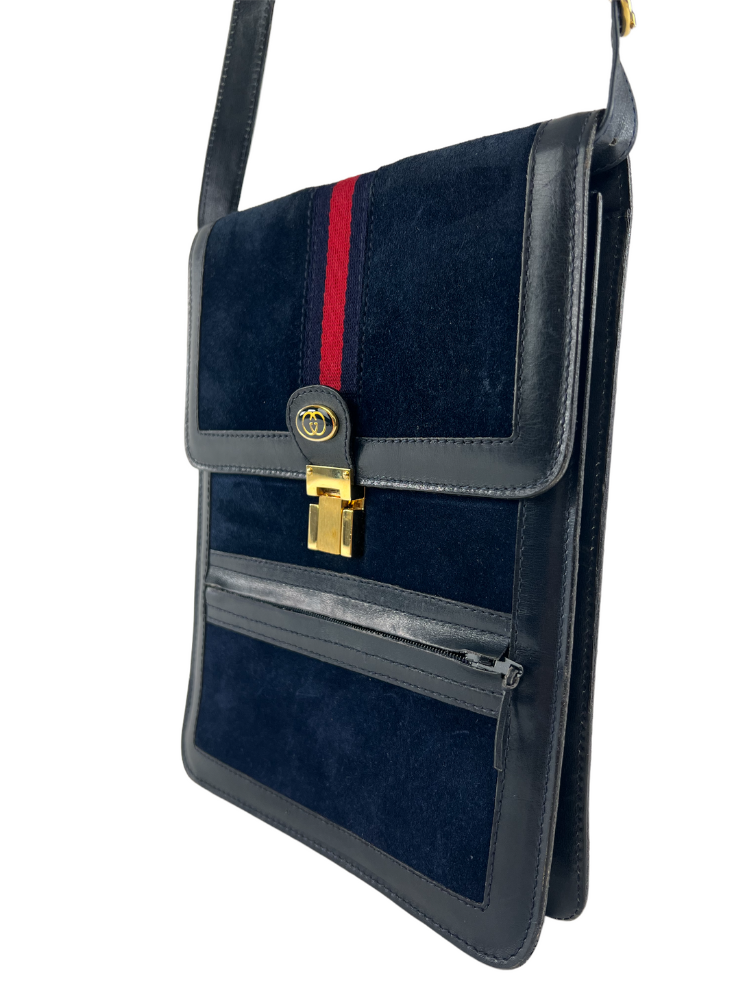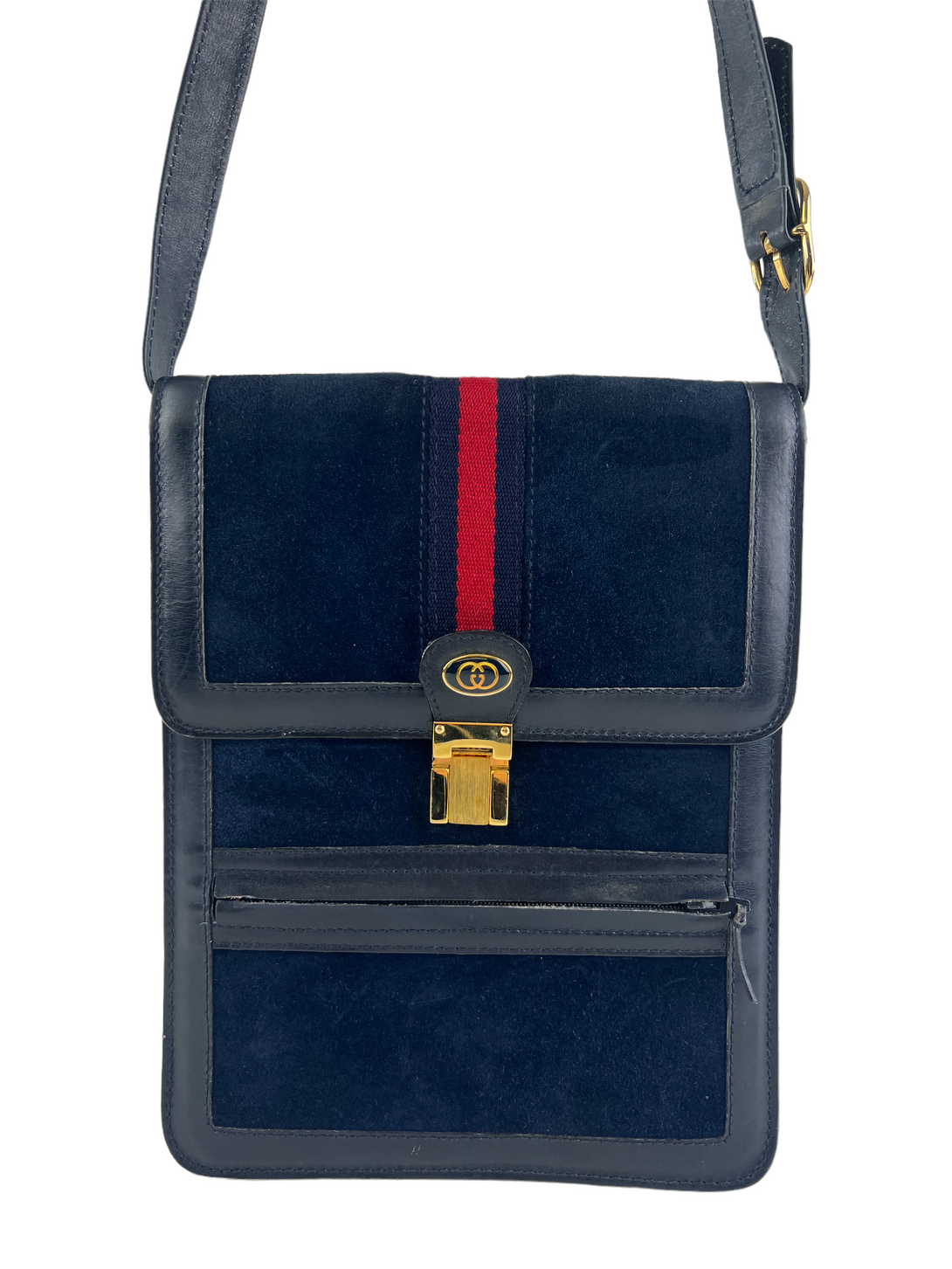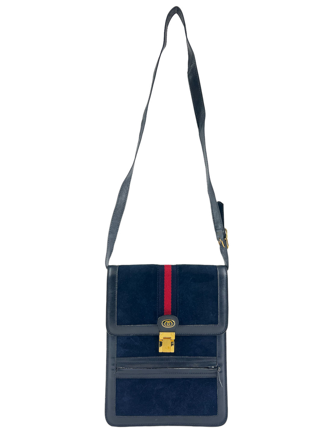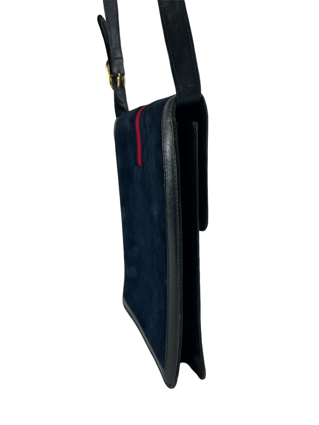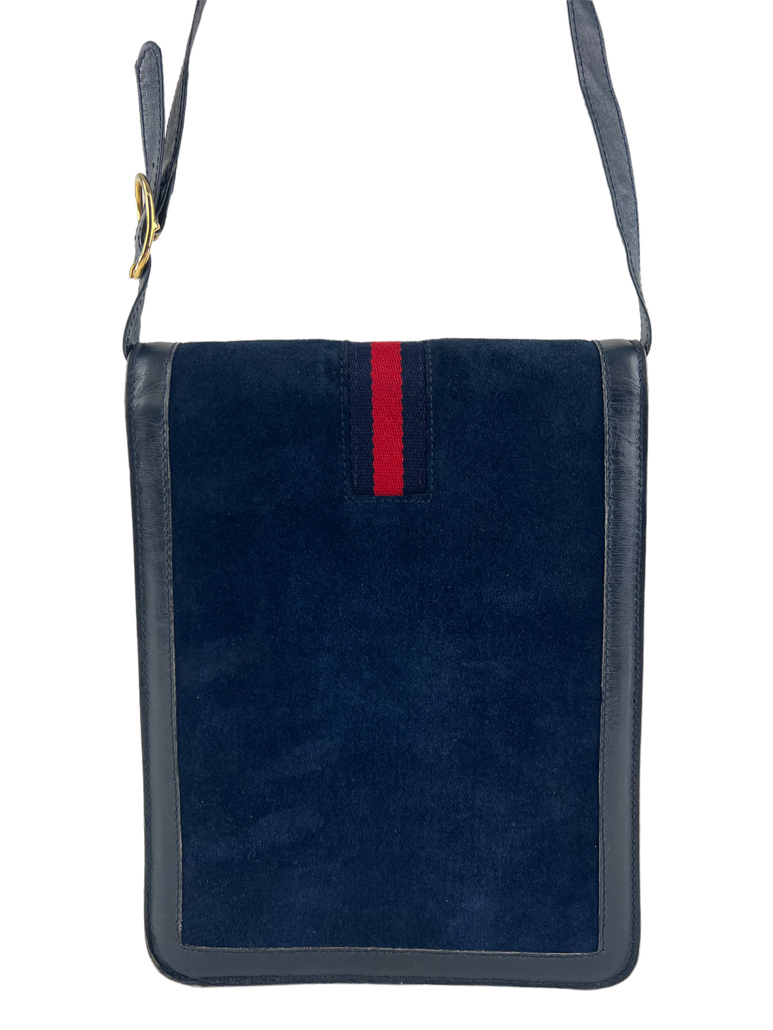 Gucci Navy Suede & Leather Vintage Crossbody Bag