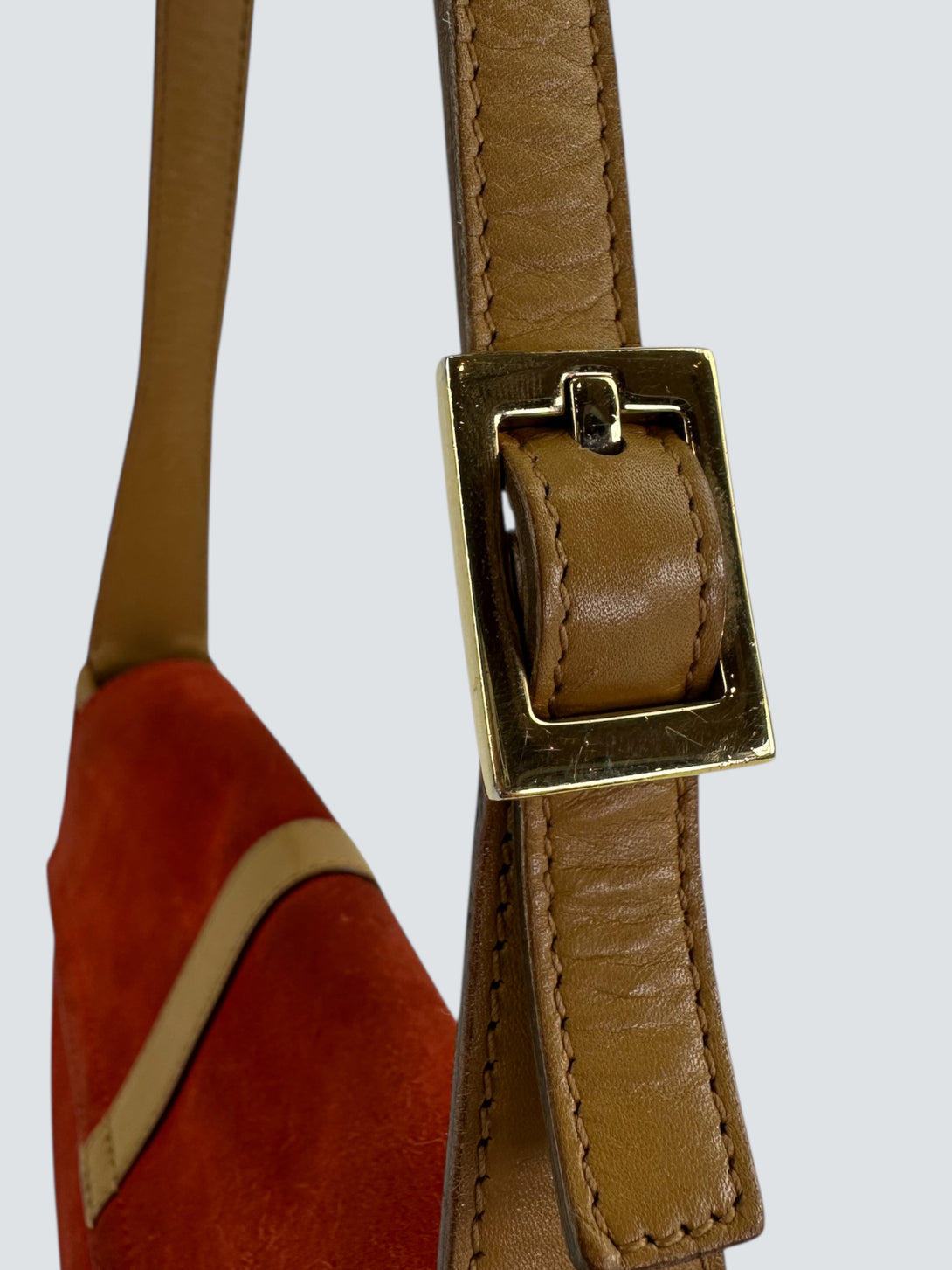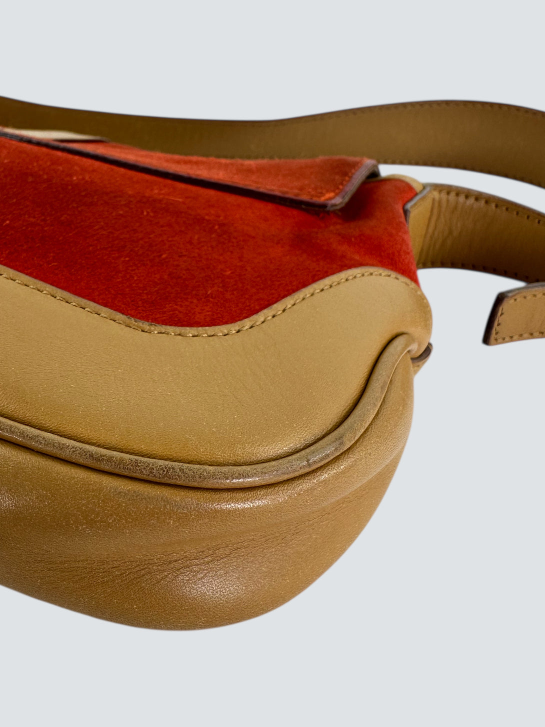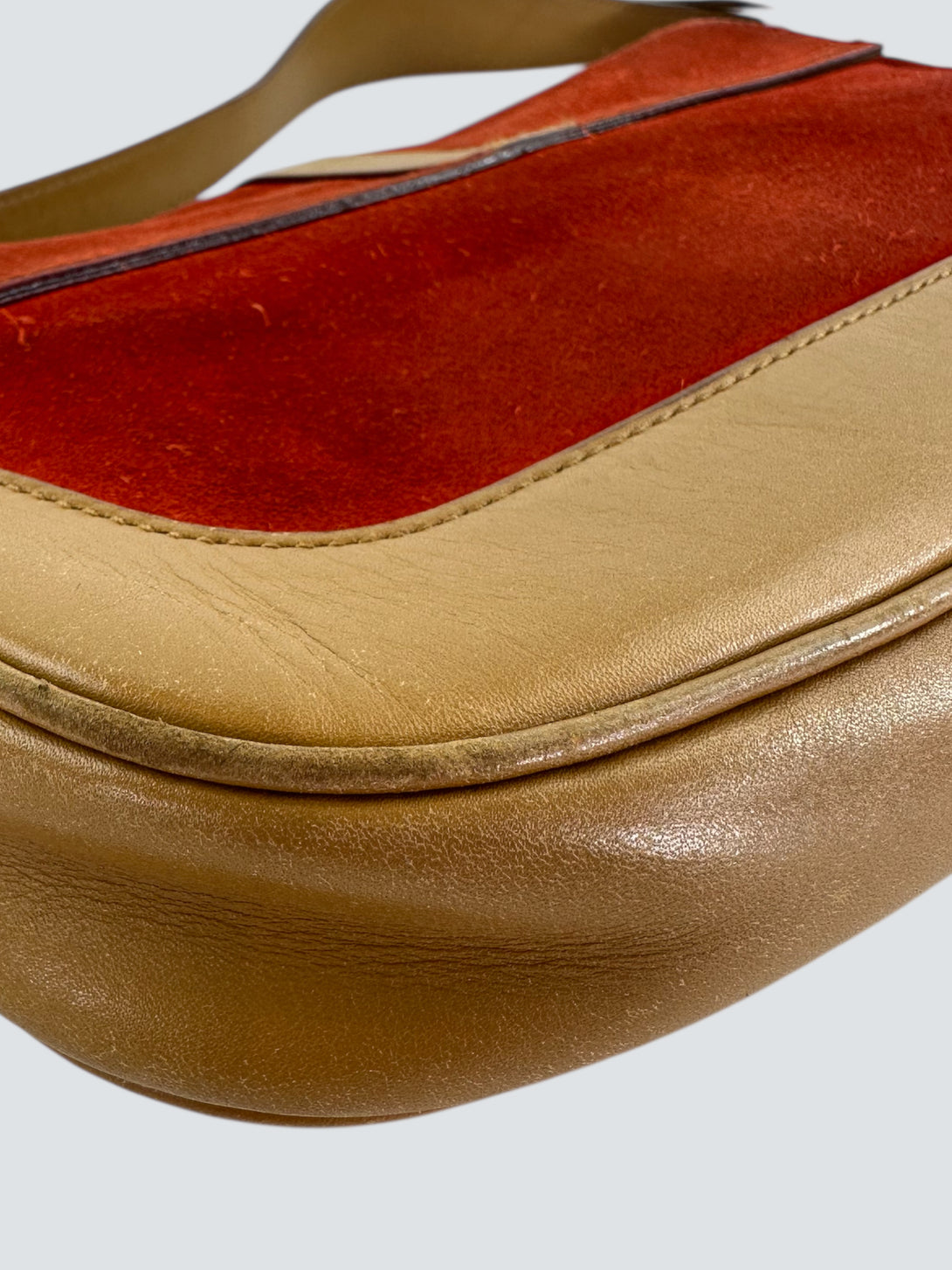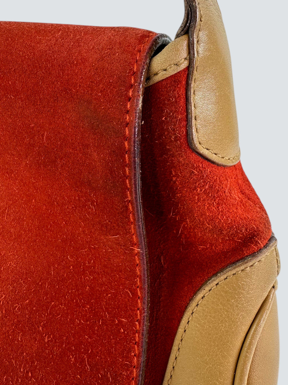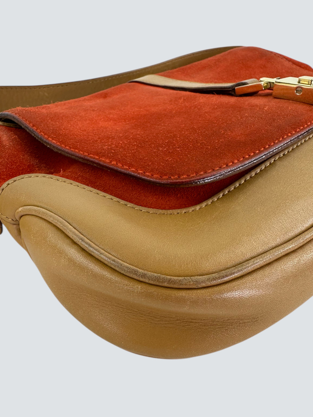 Gucci Orange Suede & Tan Leather Shoulder Bag