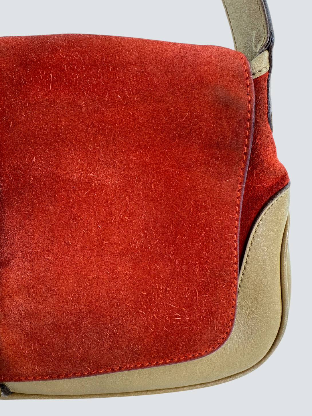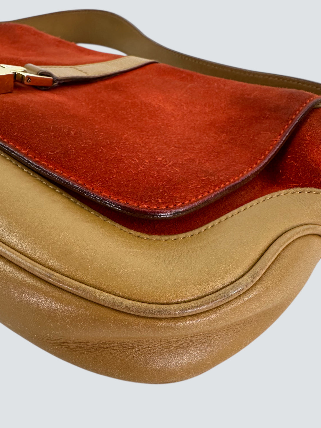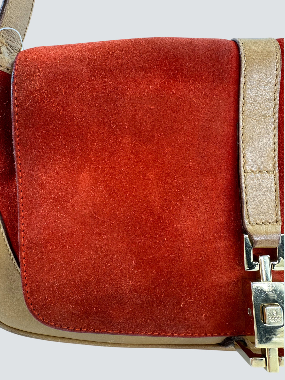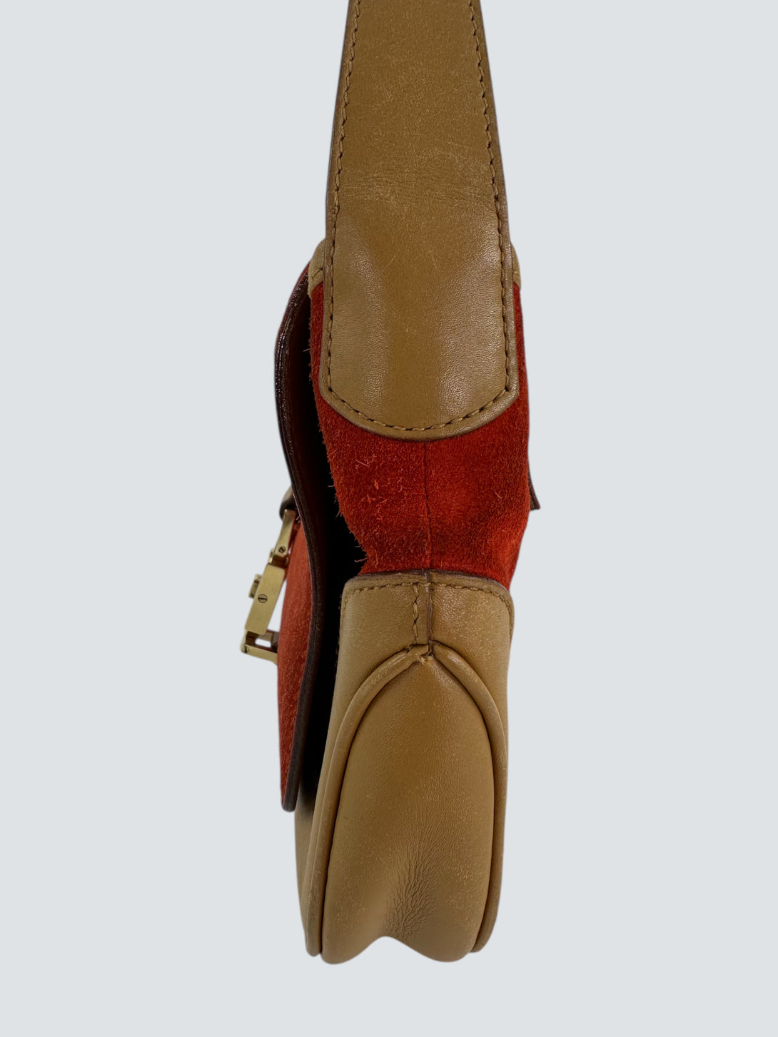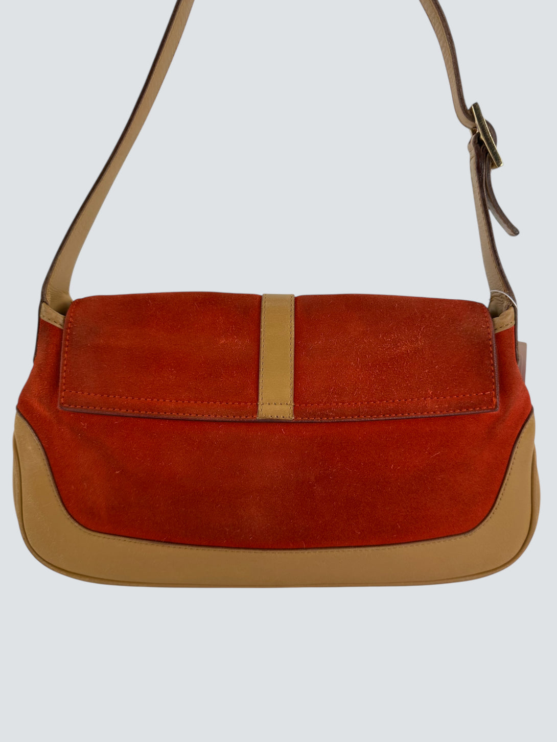 Gucci Orange Suede & Tan Leather Shoulder Bag