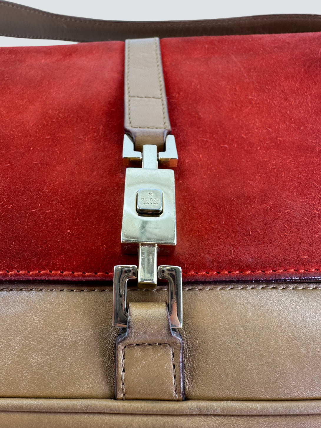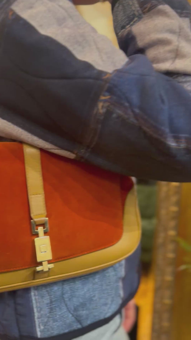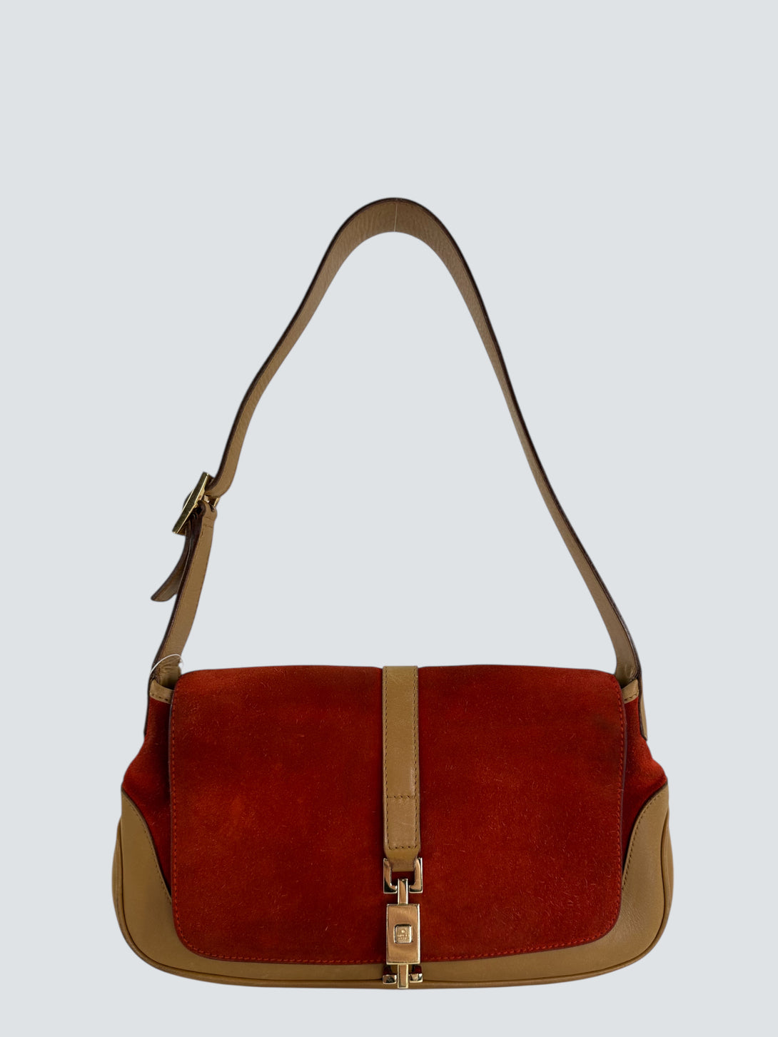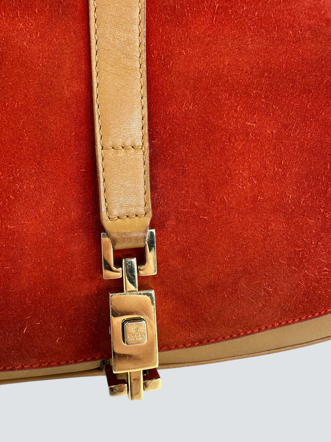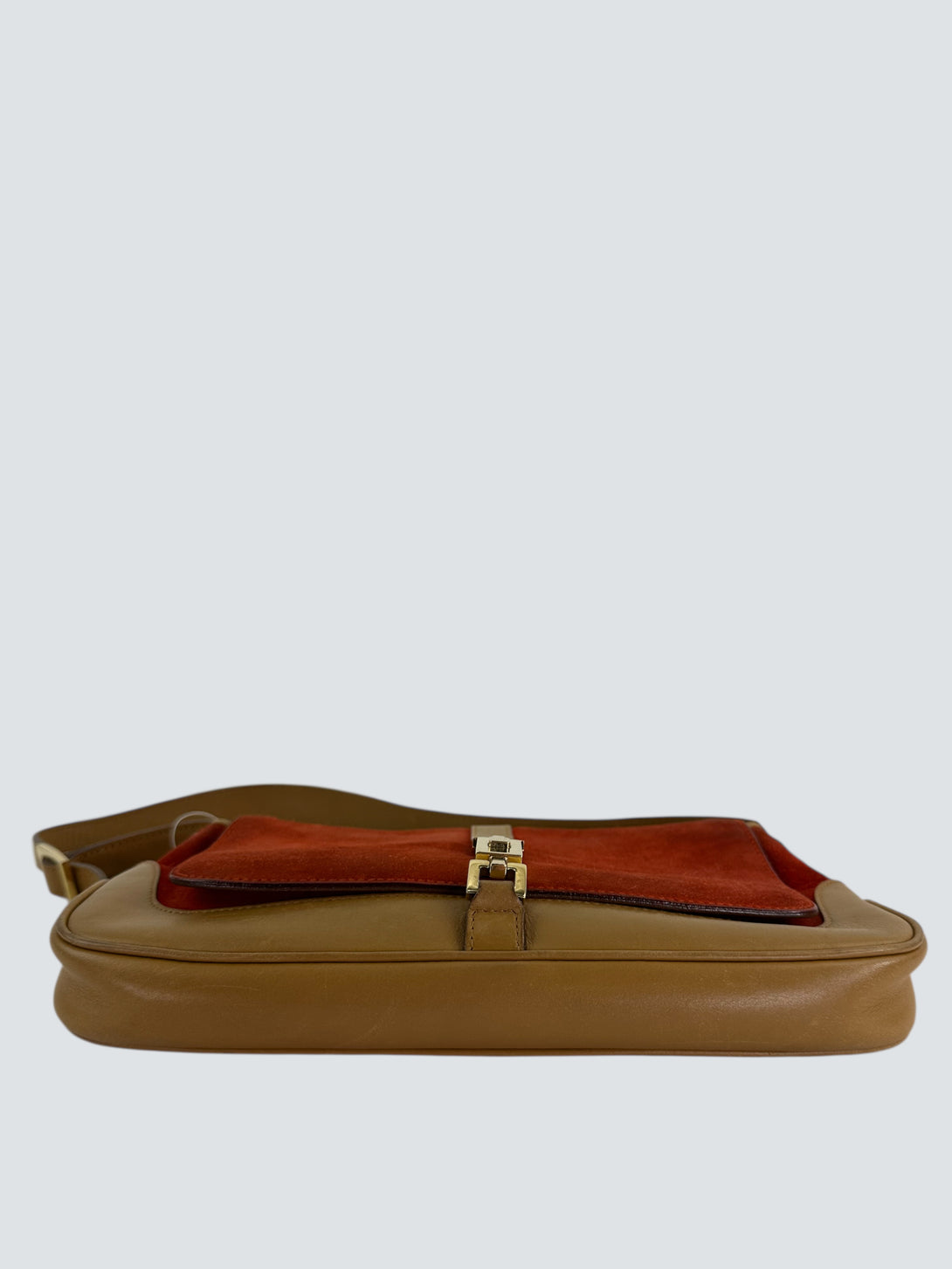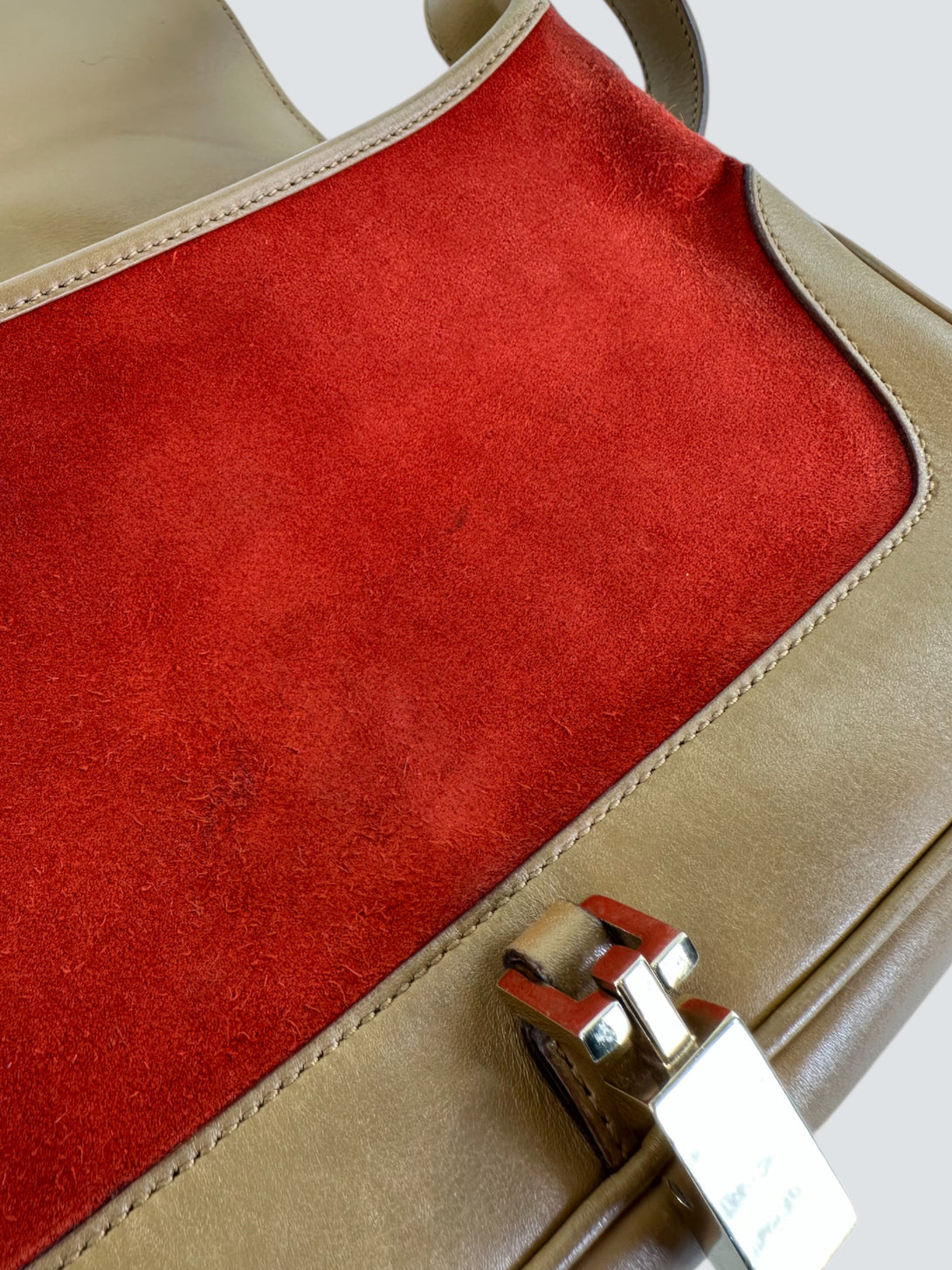 Gucci Orange Suede & Tan Leather Shoulder Bag