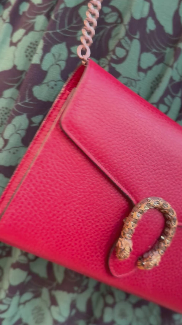 Gucci Red Leather Dionysus Wallet on Chain