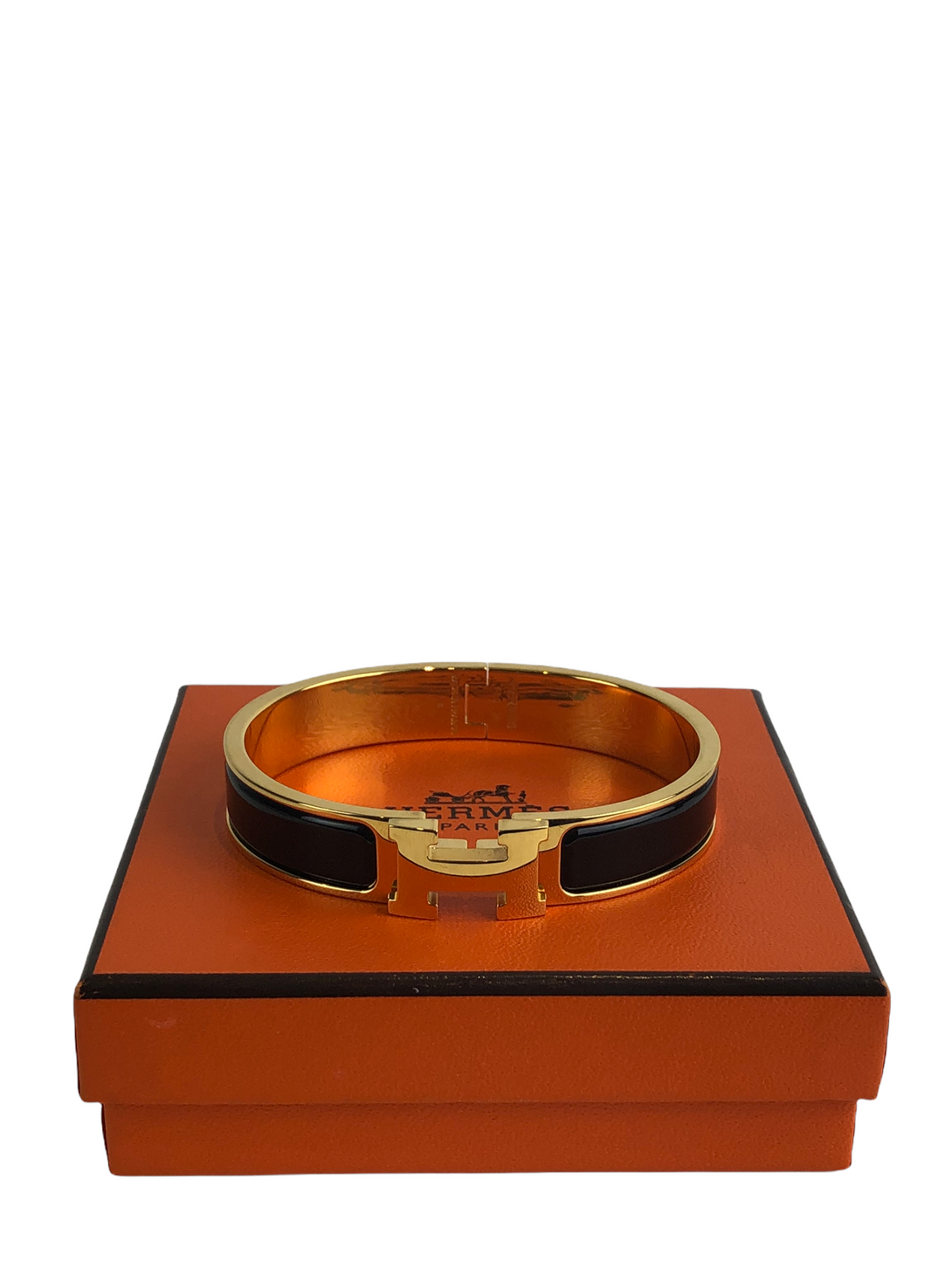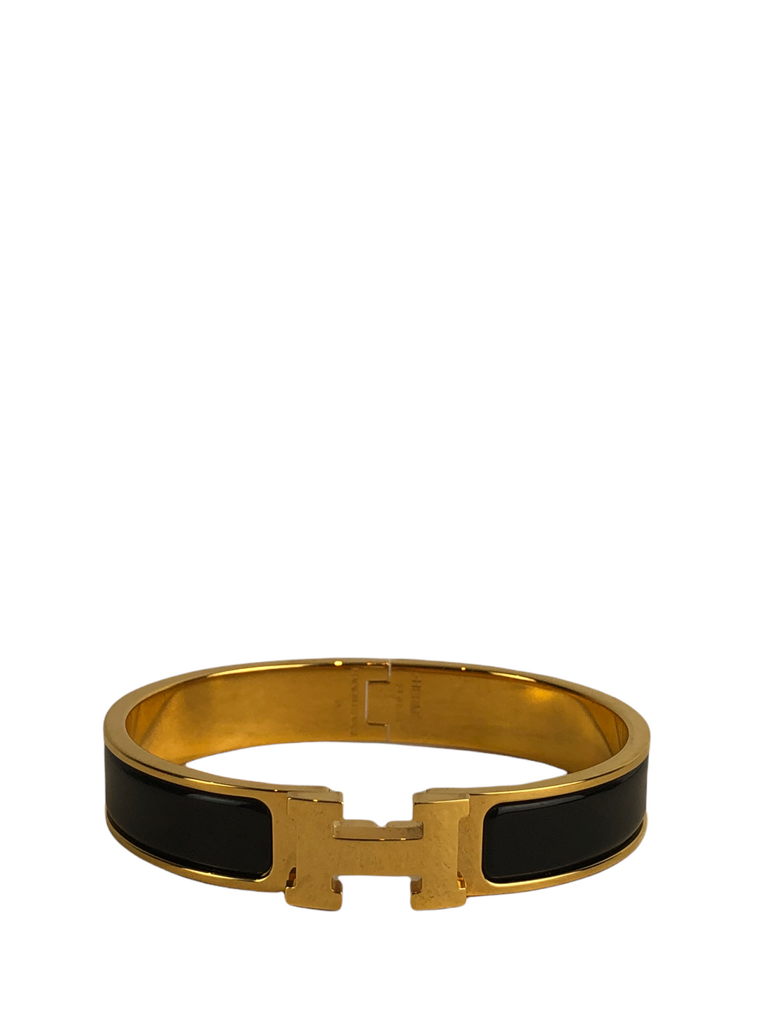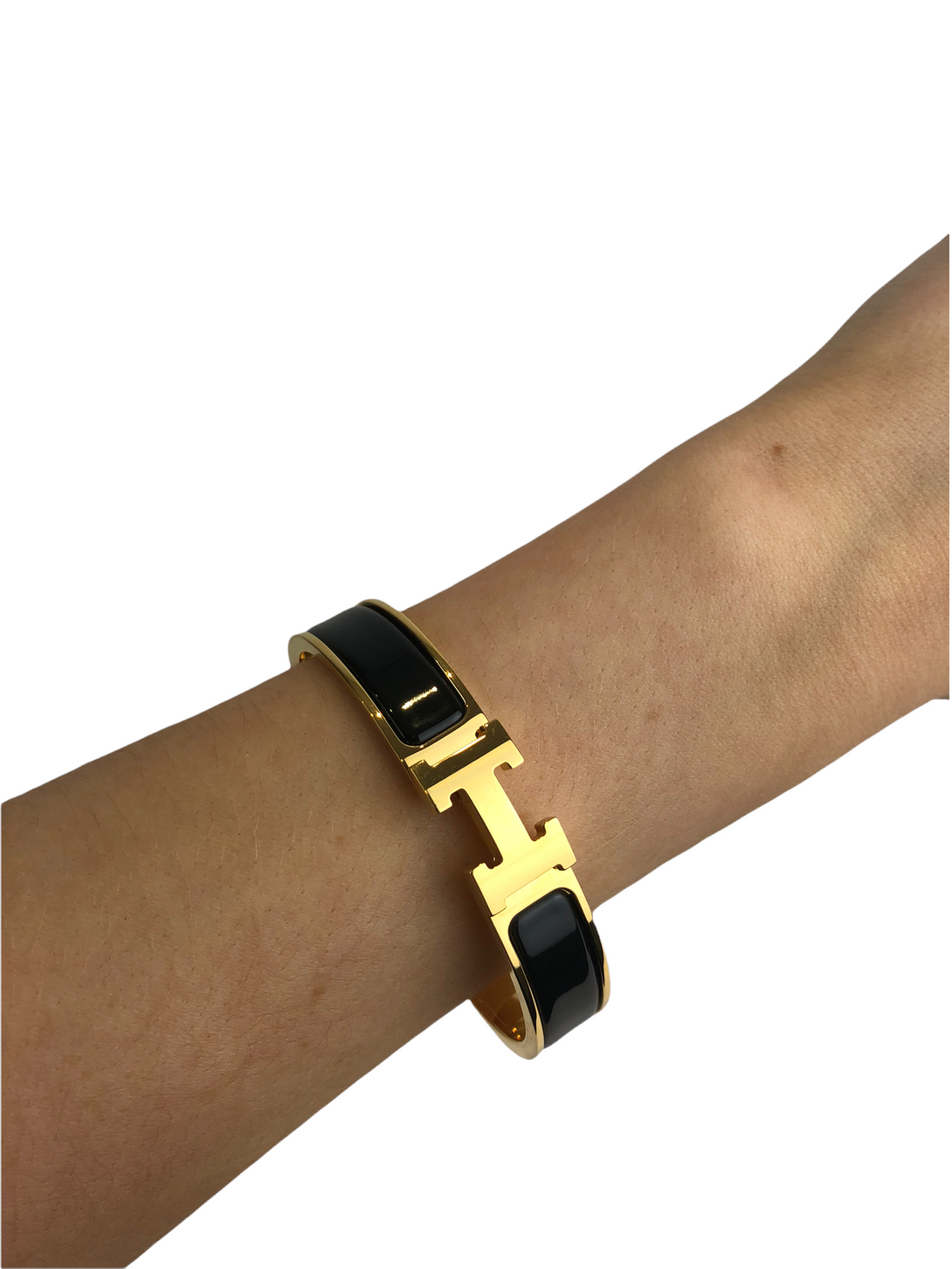 Hermès Black & Gold "H" Click Cuff Bracelet