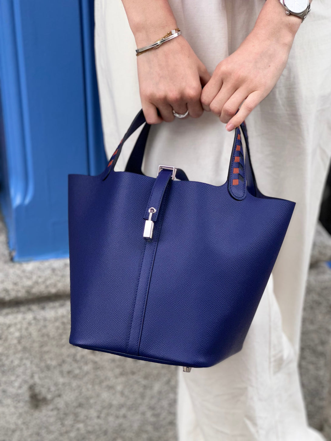 Hermès Bleu Saphire Leather Picotin Lock 22