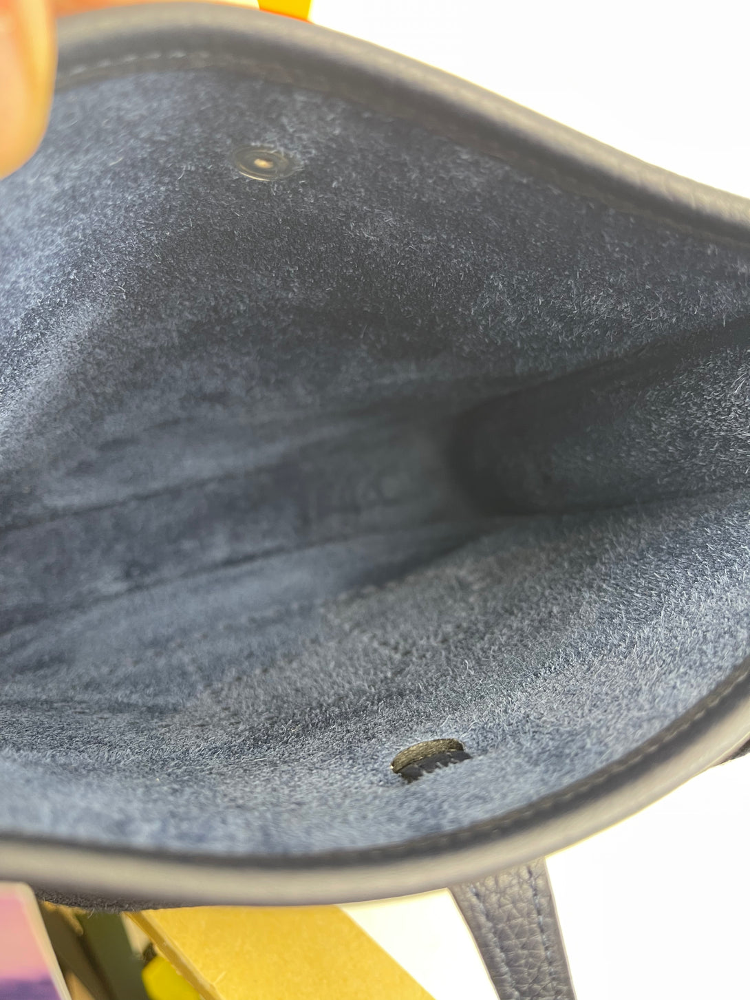 Good: Items show more prominent wear such as noticeable discoloration, stains and snags to fabric. May have worn corners and handles, tarnishing to hardware and creasing to leather. Pen or make up marks may be visible in the interior of the bag.
