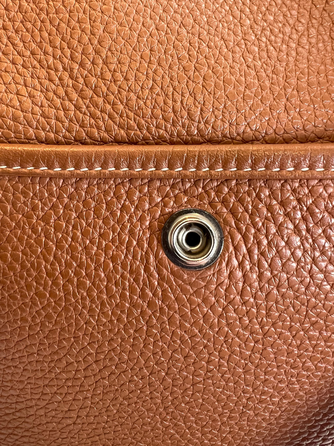 Good: Items show more prominent wear such as noticeable discoloration, stains and snags to fabric. May have worn corners and handles, tarnishing to hardware and creasing to leather. Pen or make up marks may be visible in the interior of the bag.