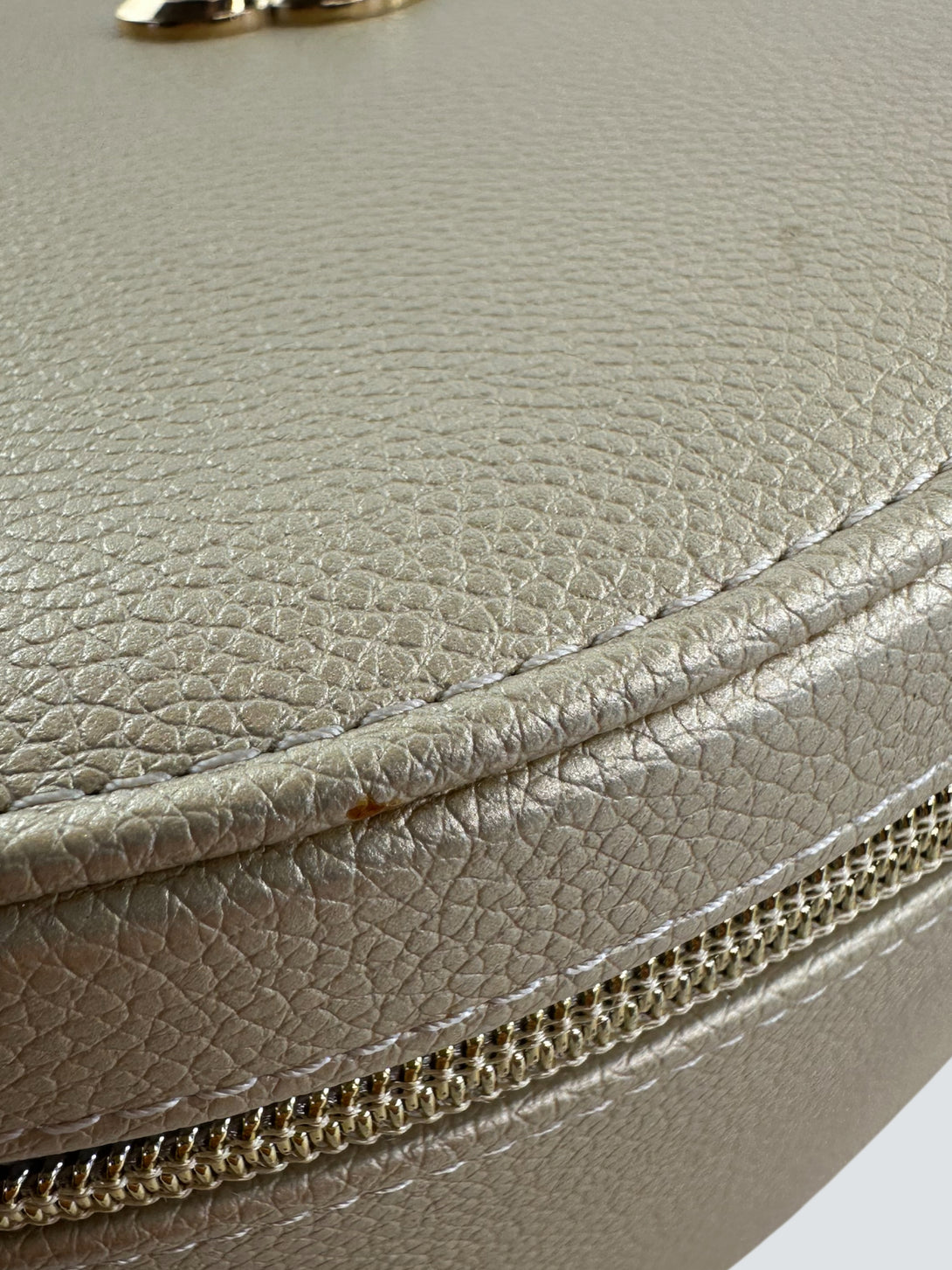 Good: Items show more prominent wear such as noticeable discoloration, stains and snags to fabric. May have worn corners and handles, tarnishing to hardware and creasing to leather. Pen or make up marks may be visible in the interior of the bag.