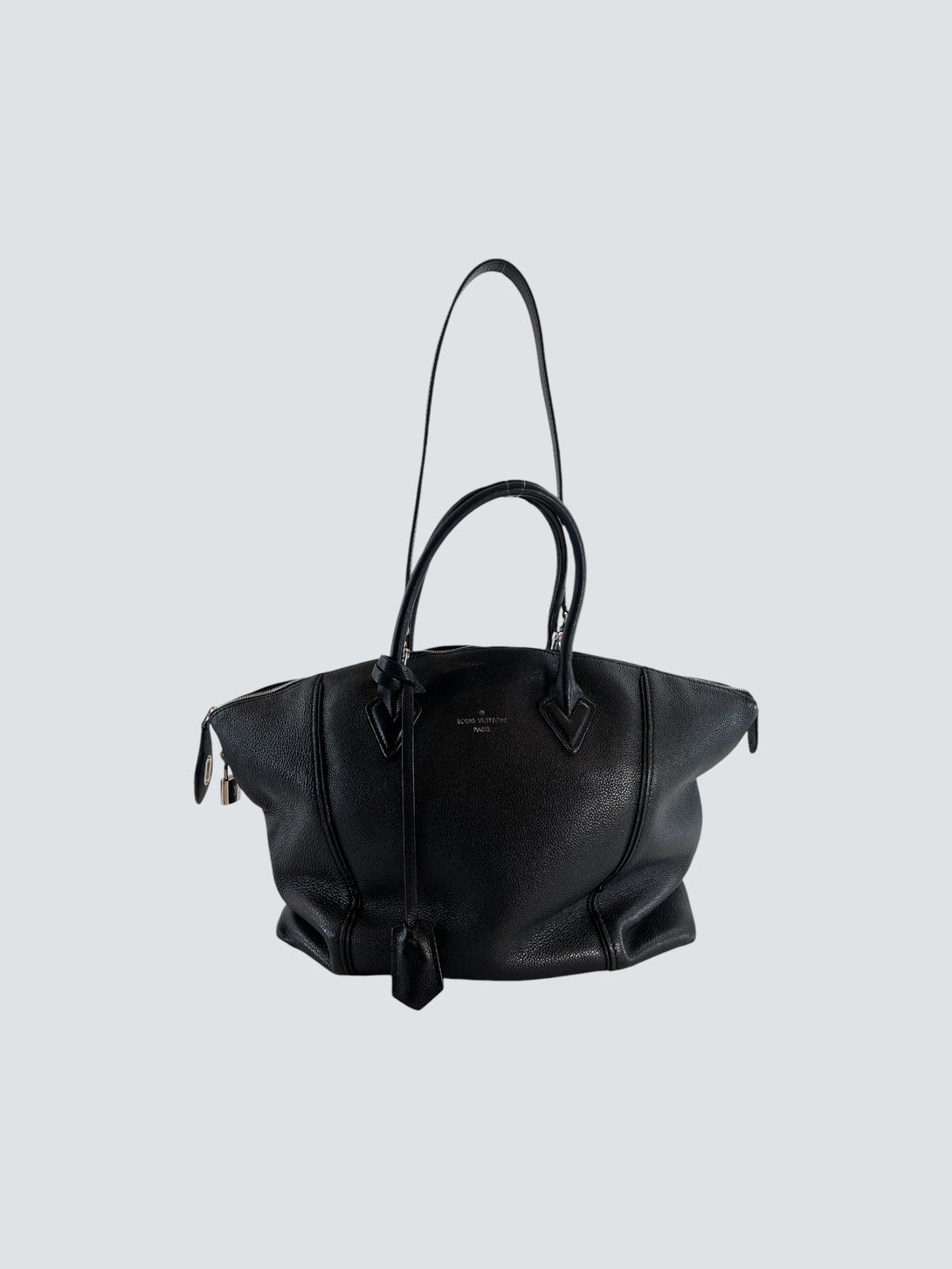Louis Vuitton Black Leather "Lockit" Tote Handbag