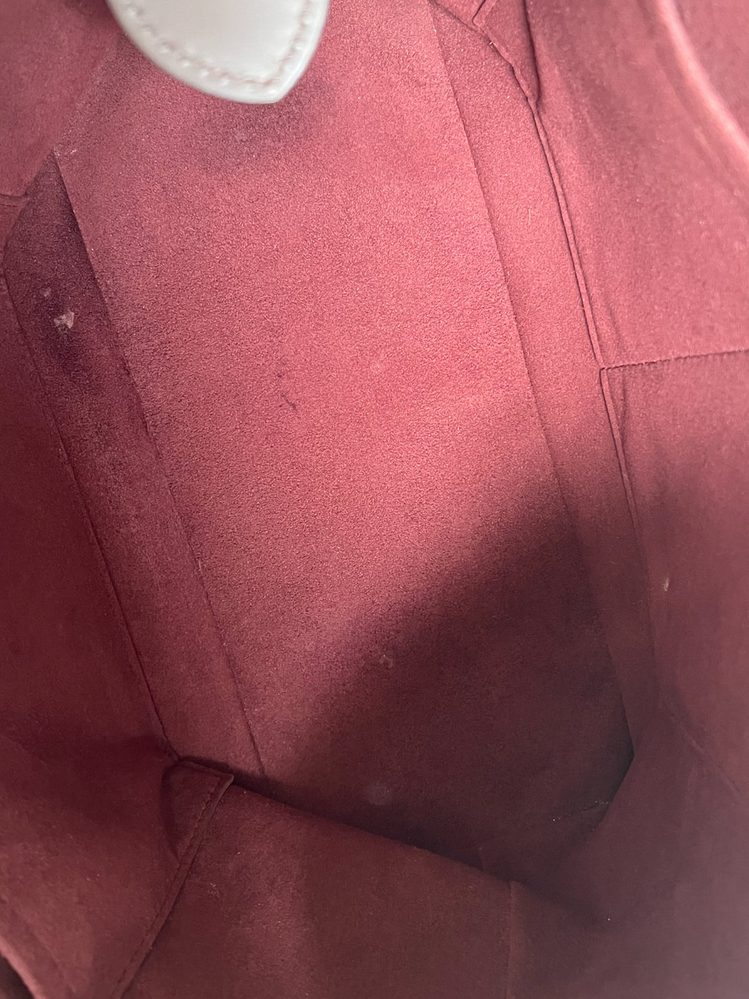 Good: Items show more prominent wear such as noticeable discoloration, stains and snags to fabric. May have worn corners and handles, tarnishing to hardware and creasing to leather. Pen or make up marks may be visible in the interior of the bag.