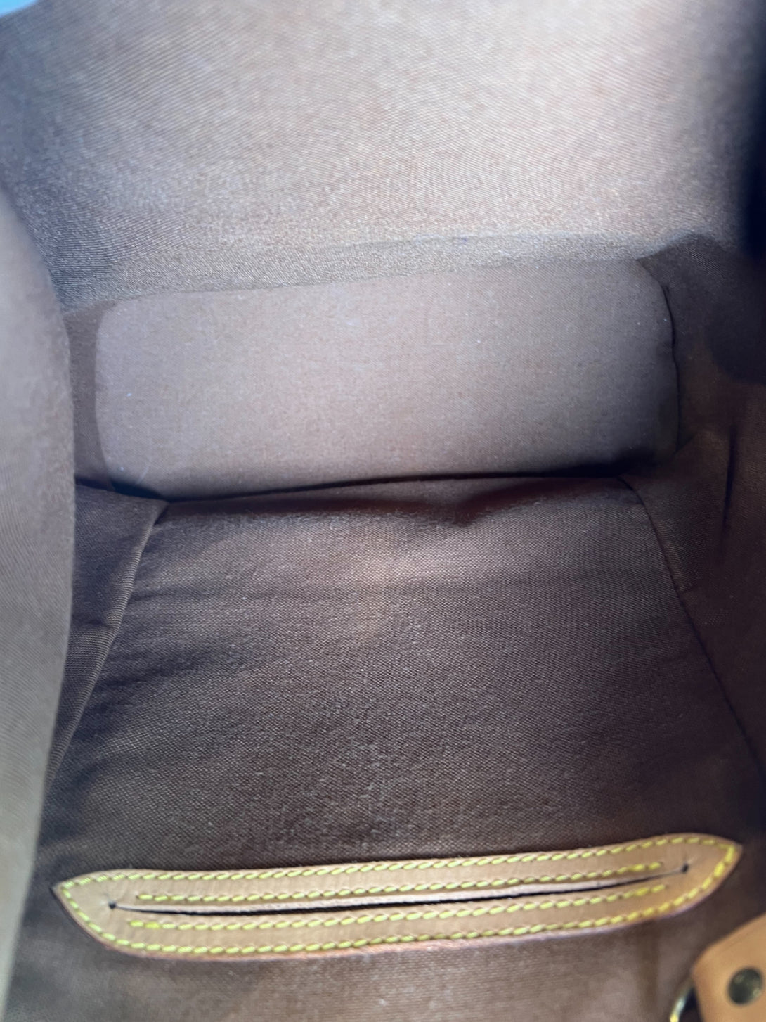 Good: Items show more prominent wear such as noticeable discoloration, stains and snags to fabric. May have worn corners and handles, tarnishing to hardware and creasing to leather. Pen or make up marks may be visible in the interior of the bag.