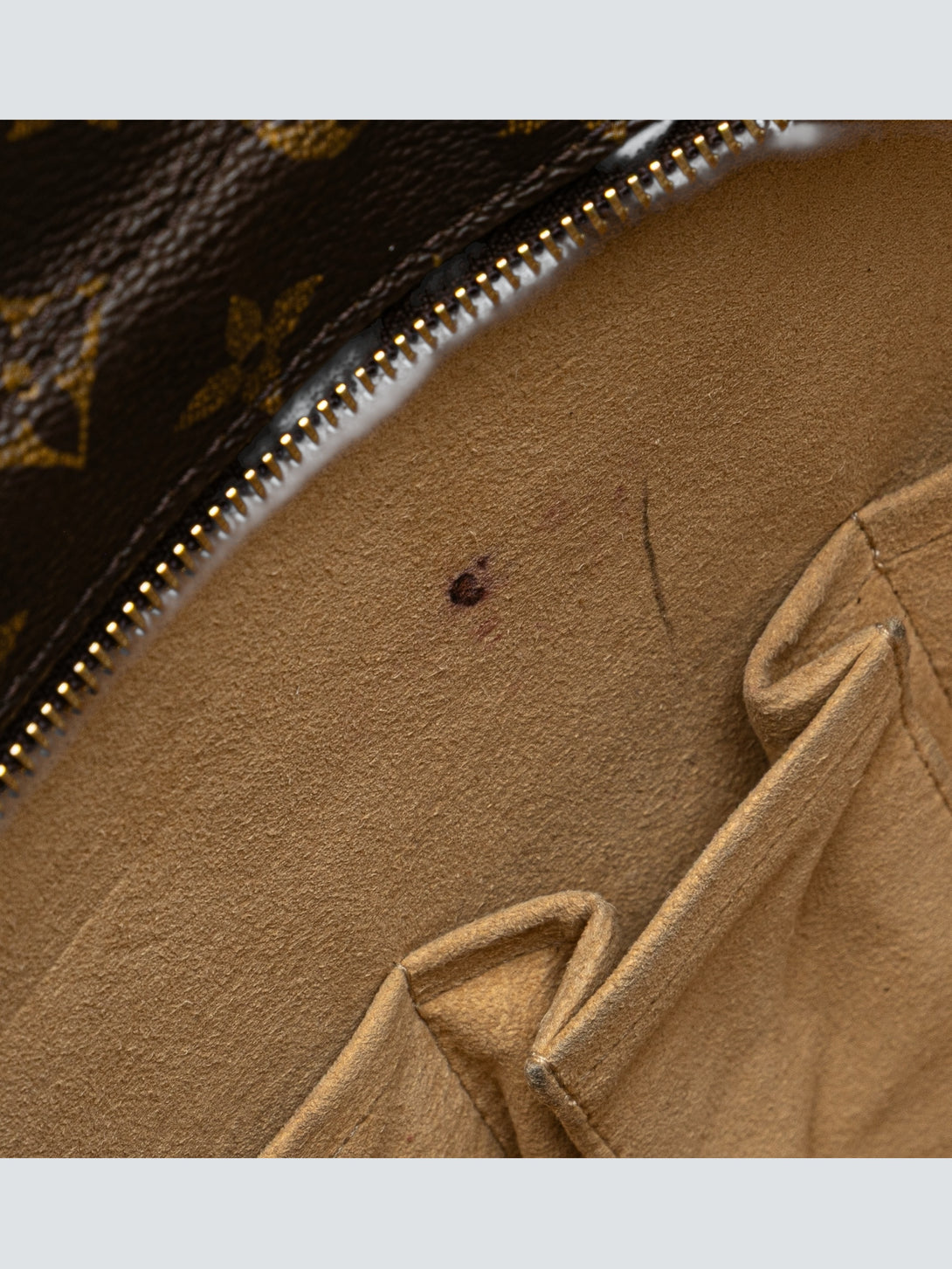 Good: Items show more prominent wear such as noticeable discoloration, stains and snags to fabric. May have worn corners and handles, tarnishing to hardware and creasing to leather. Pen or make up marks may be visible in the interior of the bag.