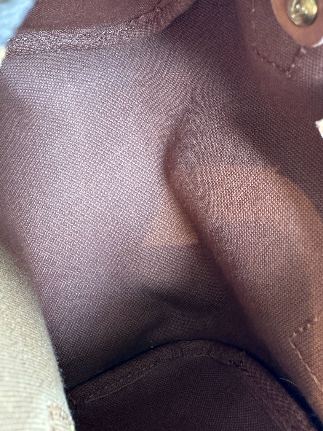 Good: Items show more prominent wear such as noticeable discoloration, stains and snags to fabric. May have worn corners and handles, tarnishing to hardware and creasing to leather. Pen or make up marks may be visible in the interior of the bag.