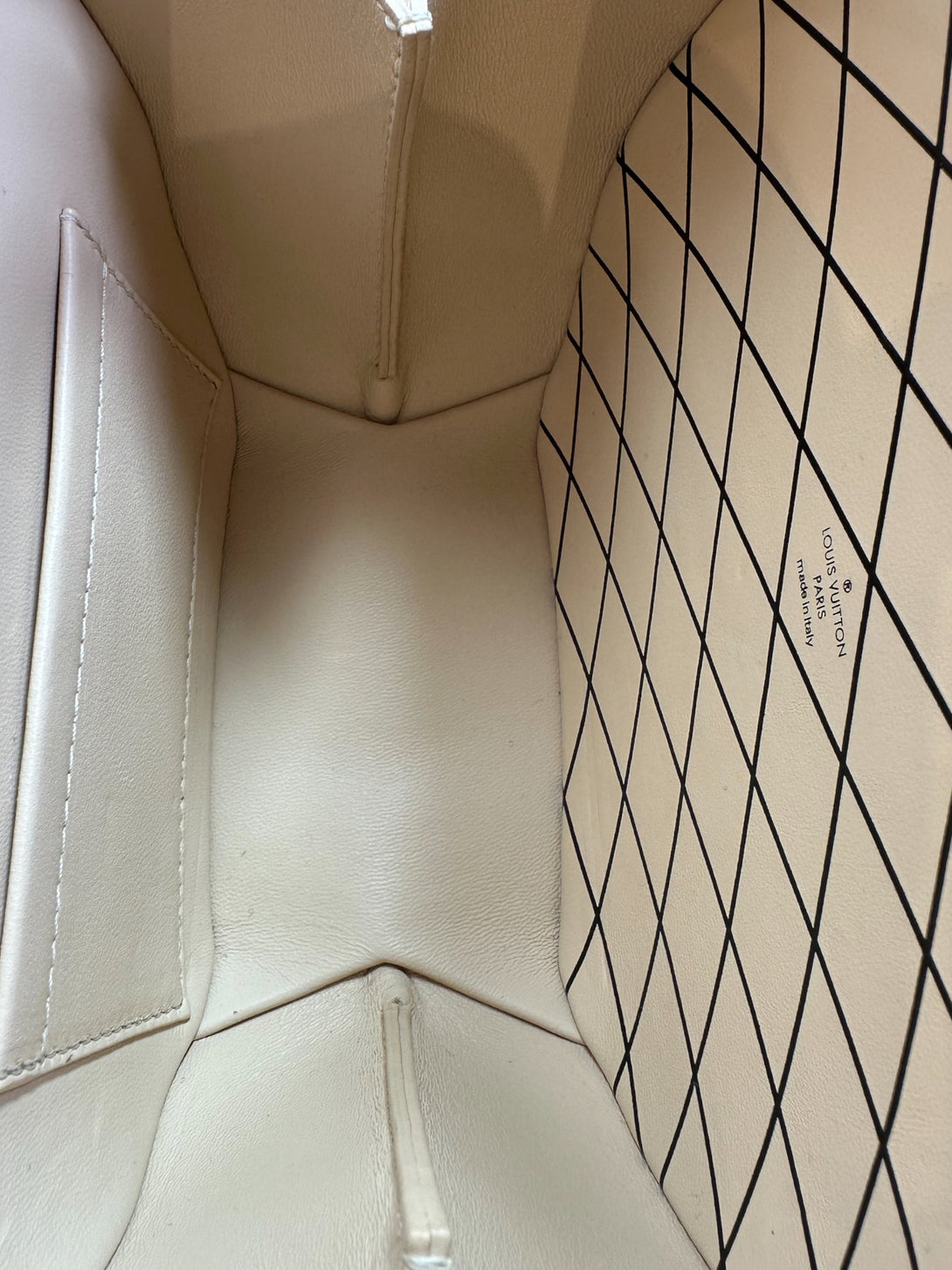 Good: Items show more prominent wear such as noticeable discoloration, stains and snags to fabric. May have worn corners and handles, tarnishing to hardware and creasing to leather. Pen or make up marks may be visible in the interior of the bag.