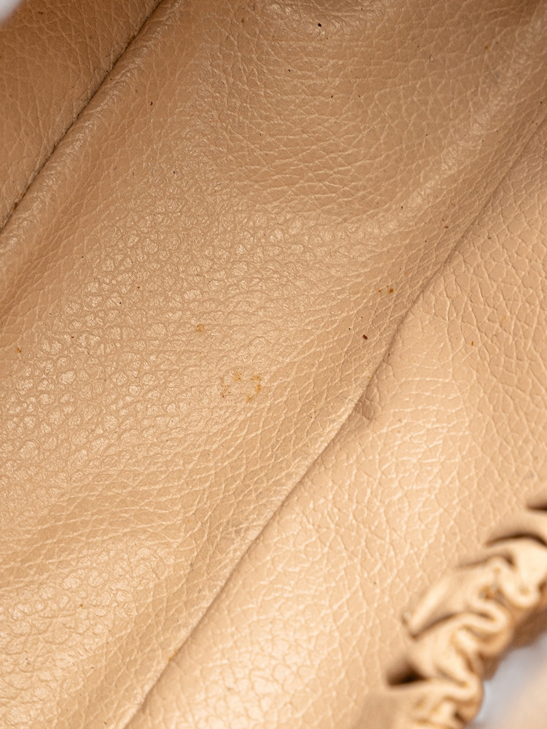 Good: Items show more prominent wear such as noticeable discoloration, stains and snags to fabric. May have worn corners and handles, tarnishing to hardware and creasing to leather. Pen or make up marks may be visible in the interior of the bag.