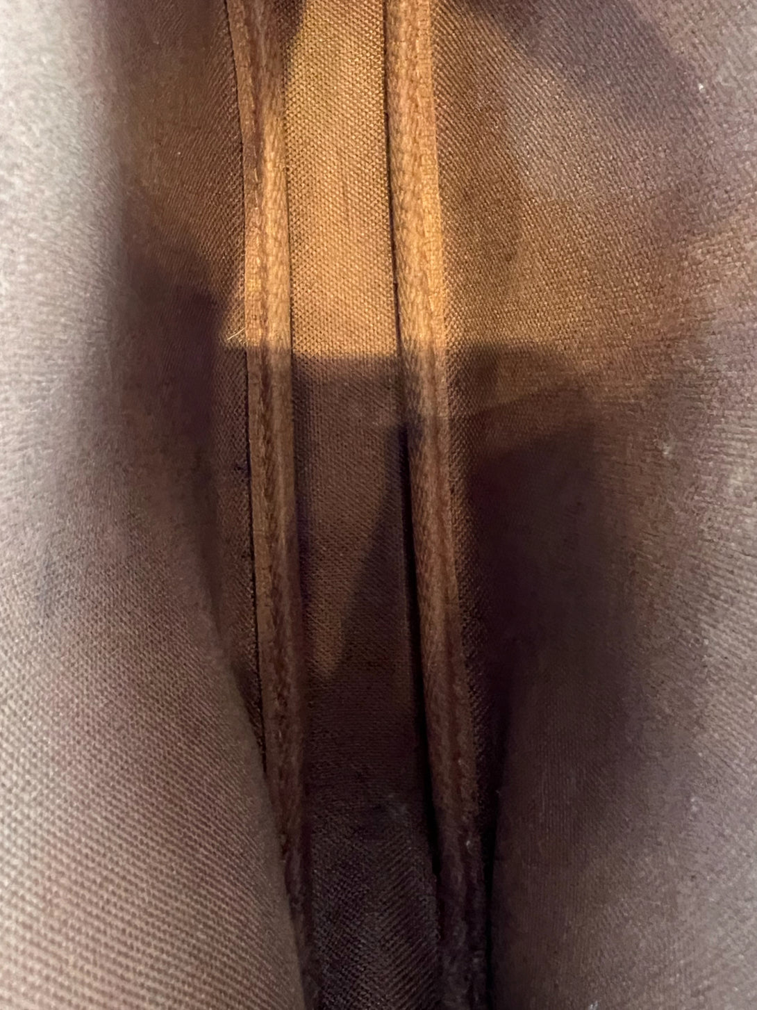 Very Good: Light to moderate visible signs of use. Items may have slightly worn corners, minor scuffs or tarnishing to hardware, lightening to fabric, or small stains and snags. Shoes may have scuffing to soles.