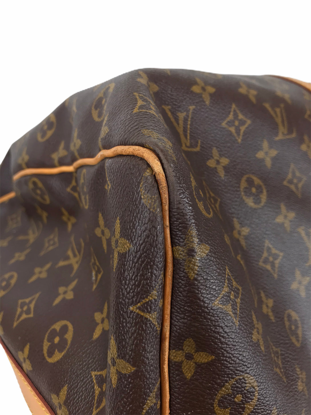 - Signature Monogram canvas tote with natural leather trim detailing and goldtone hardware